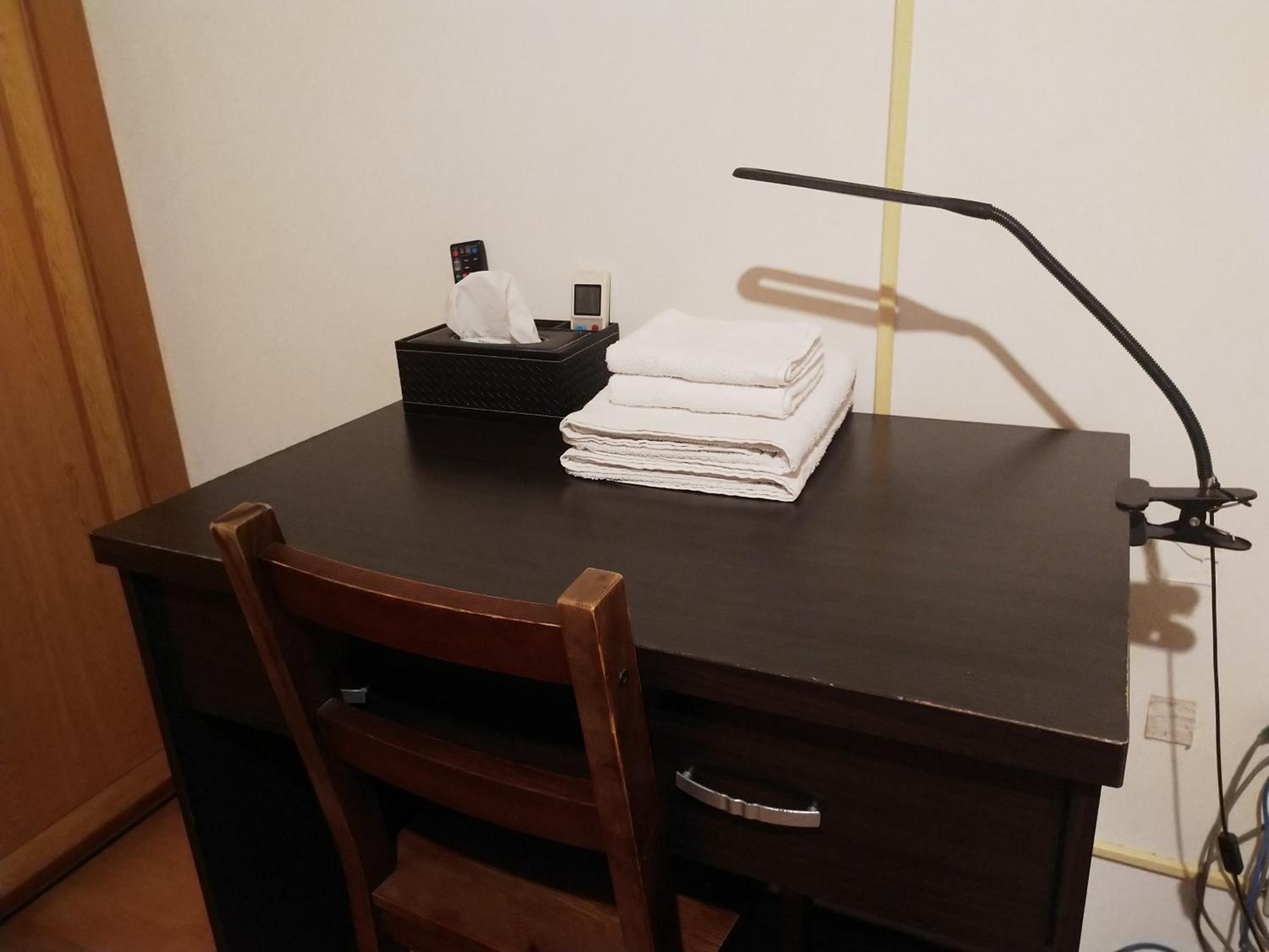 房間內有個人電腦,換洗被單用品