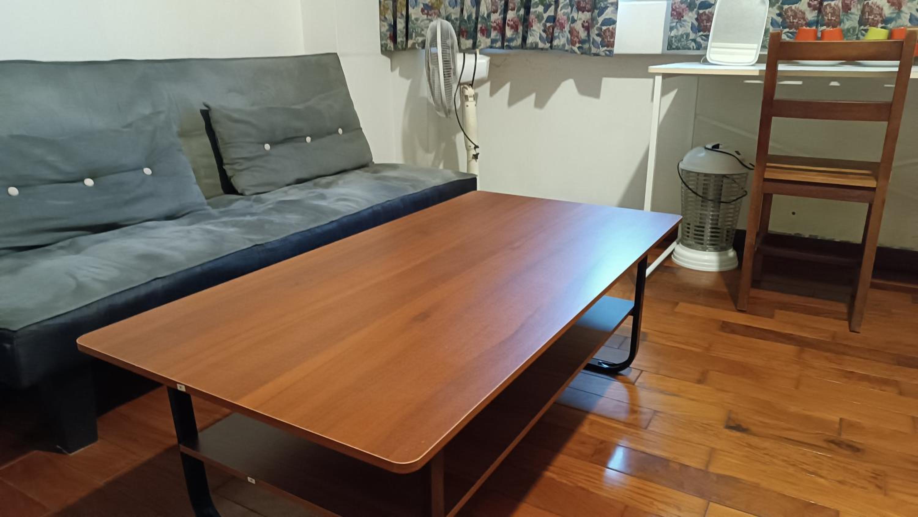 入口堆放雜物,房間內有屋主平常使用的電腦,看起來像是起居空間,但不知為何有霉味。