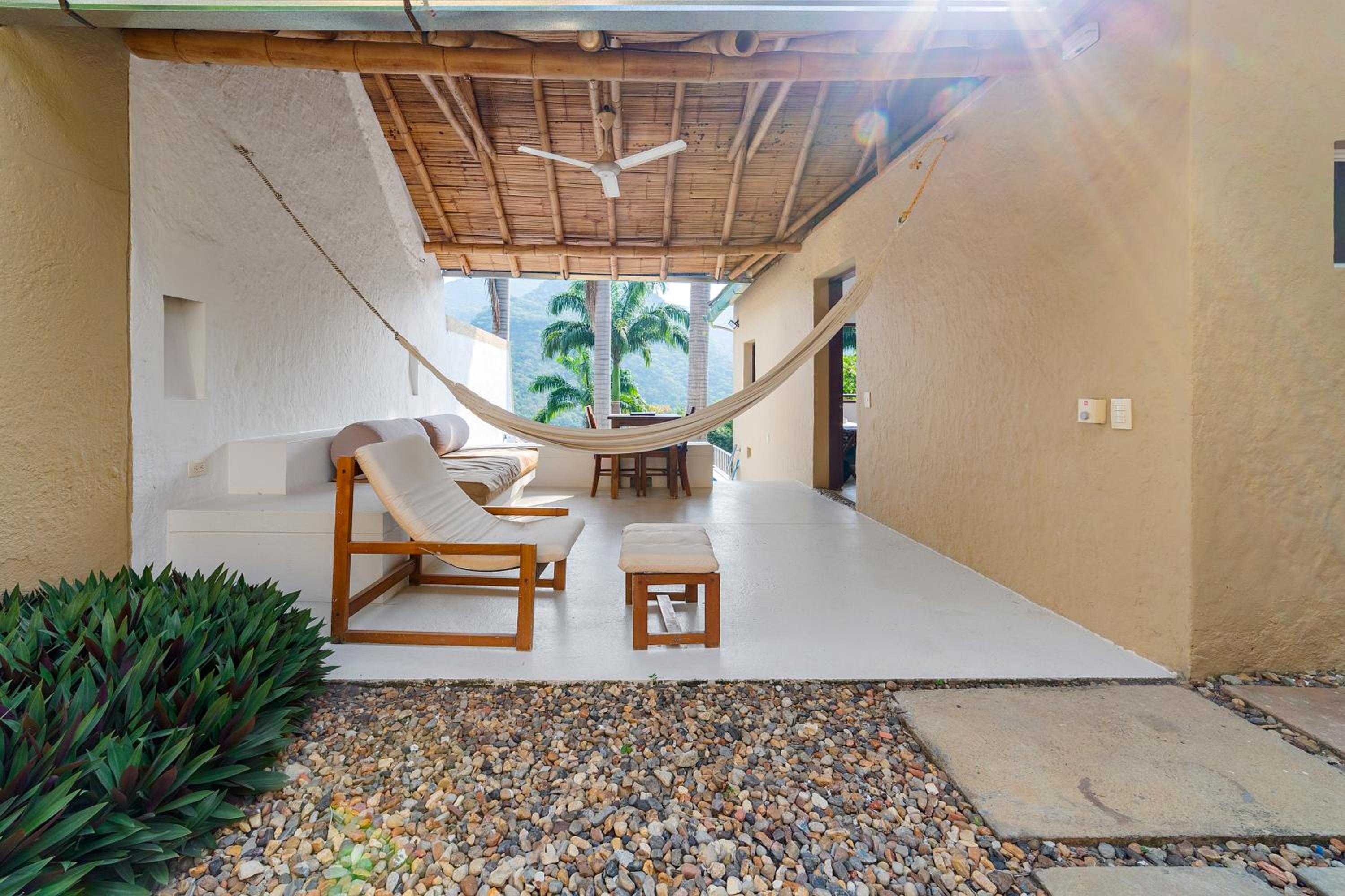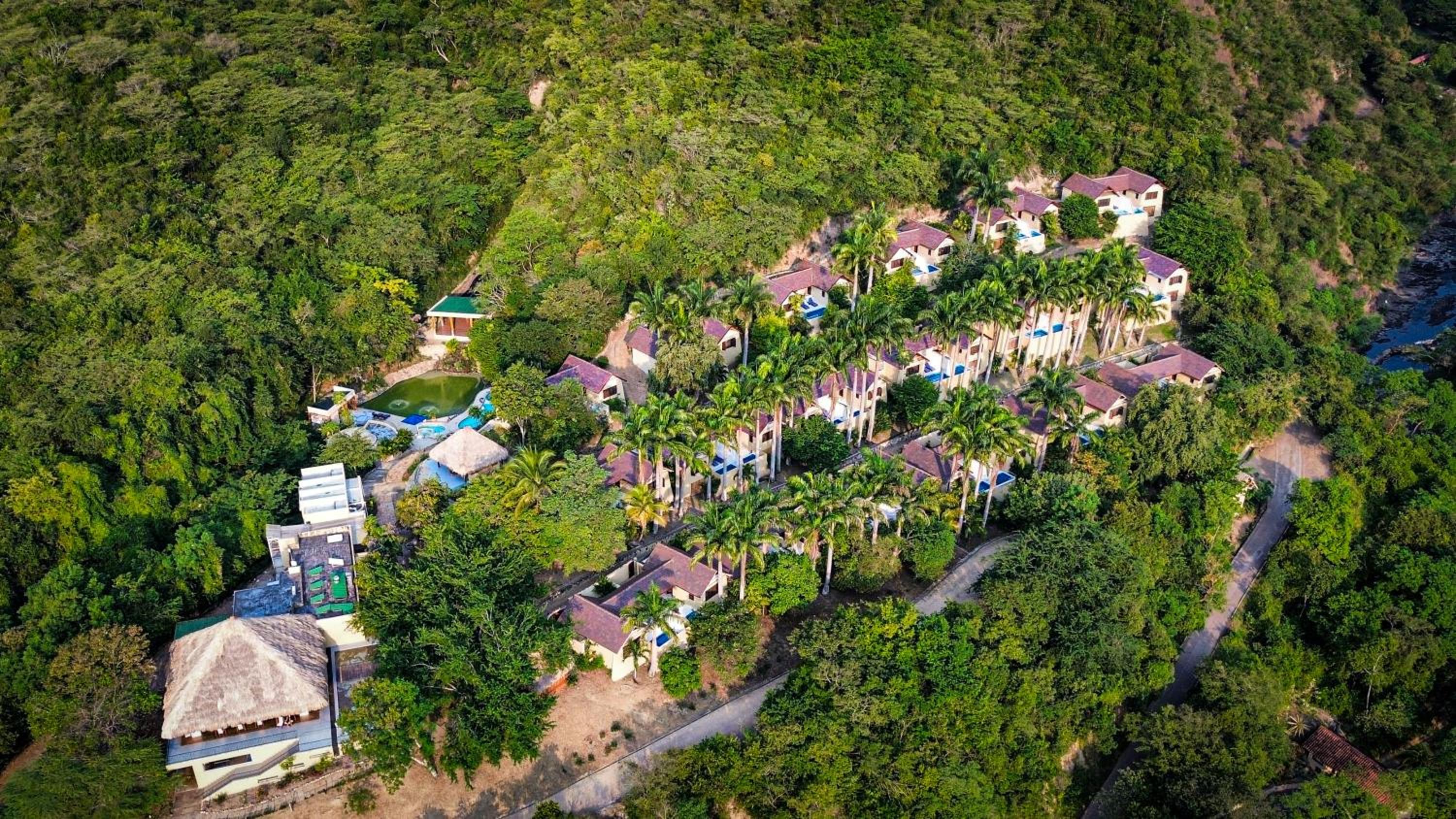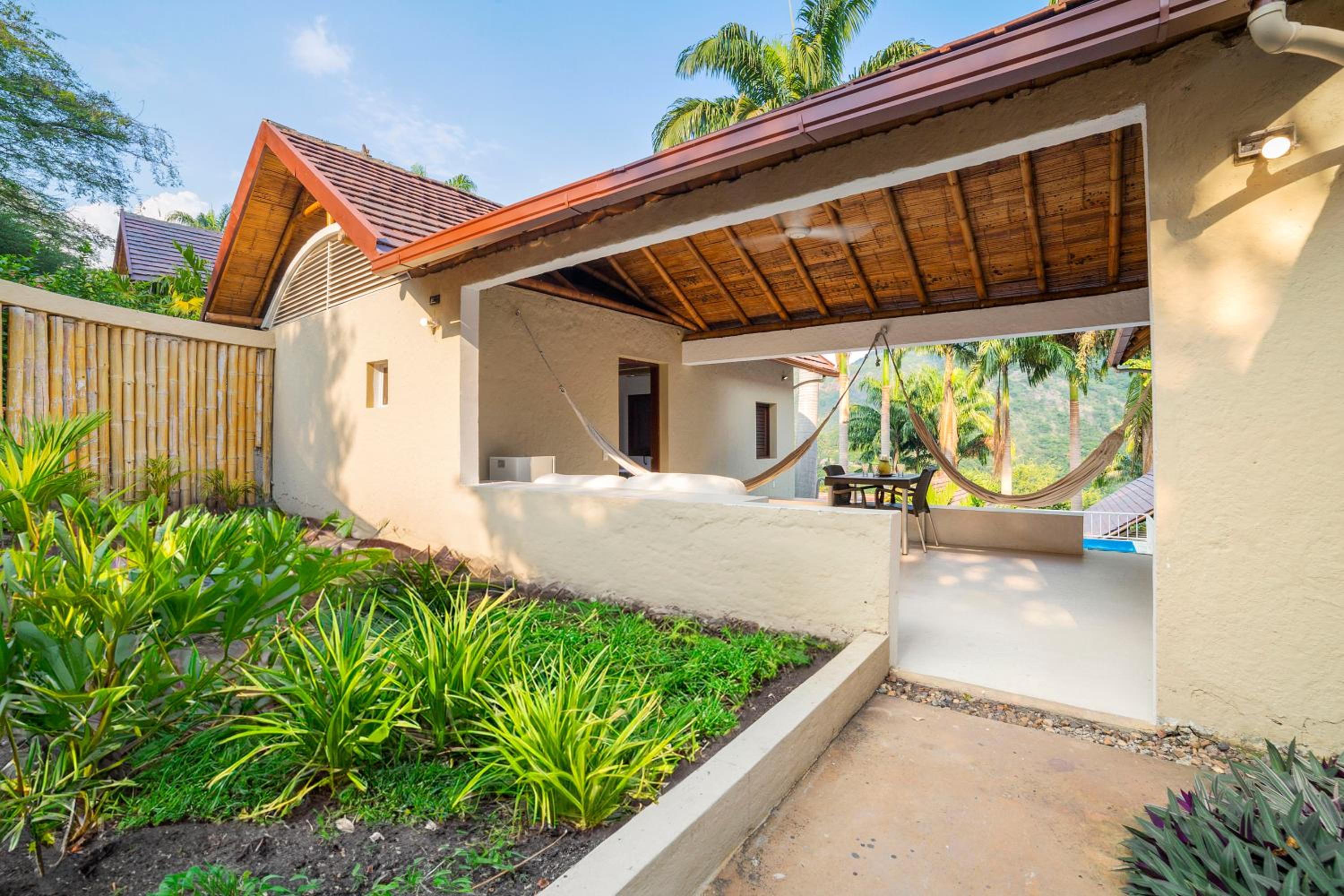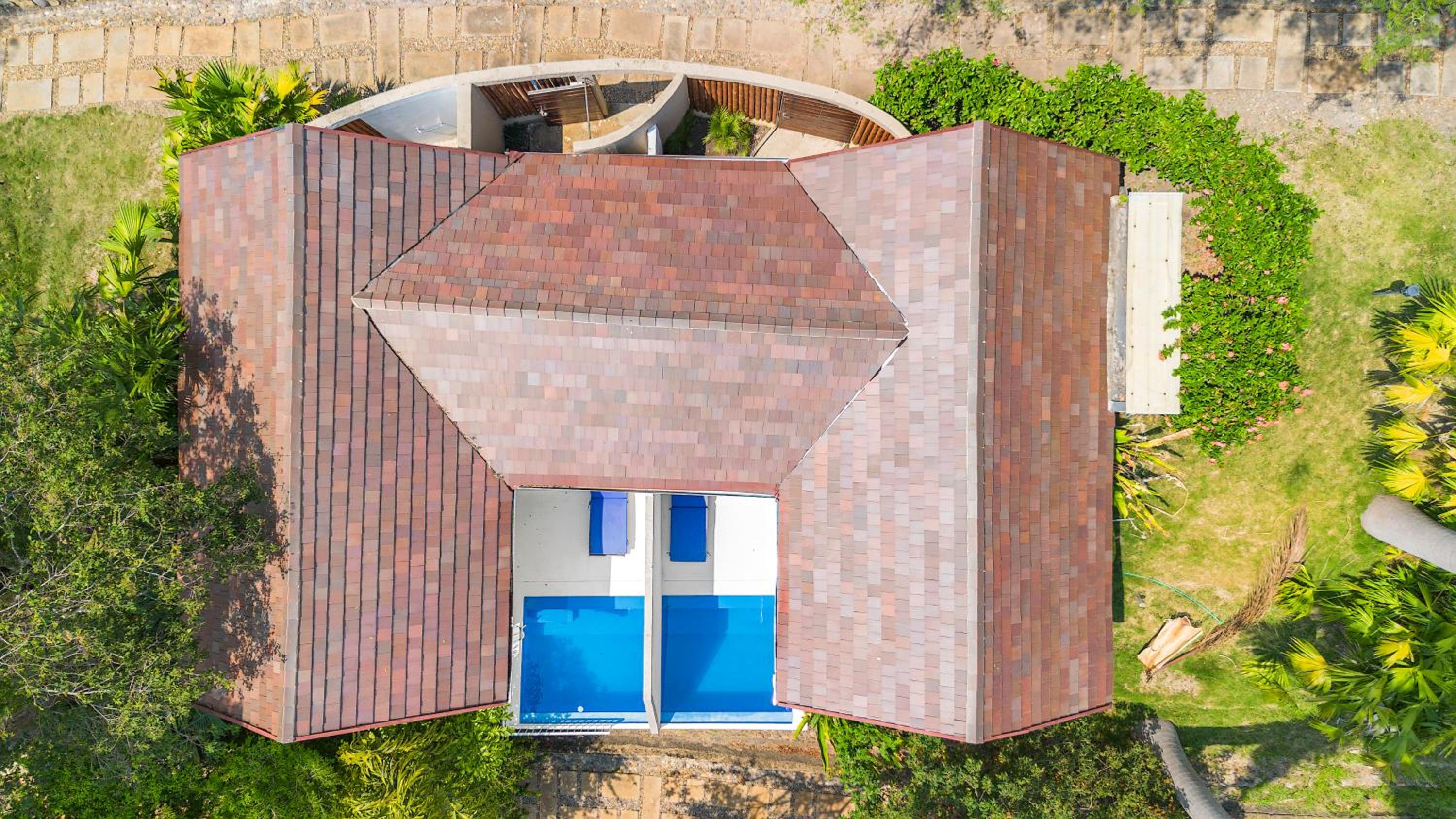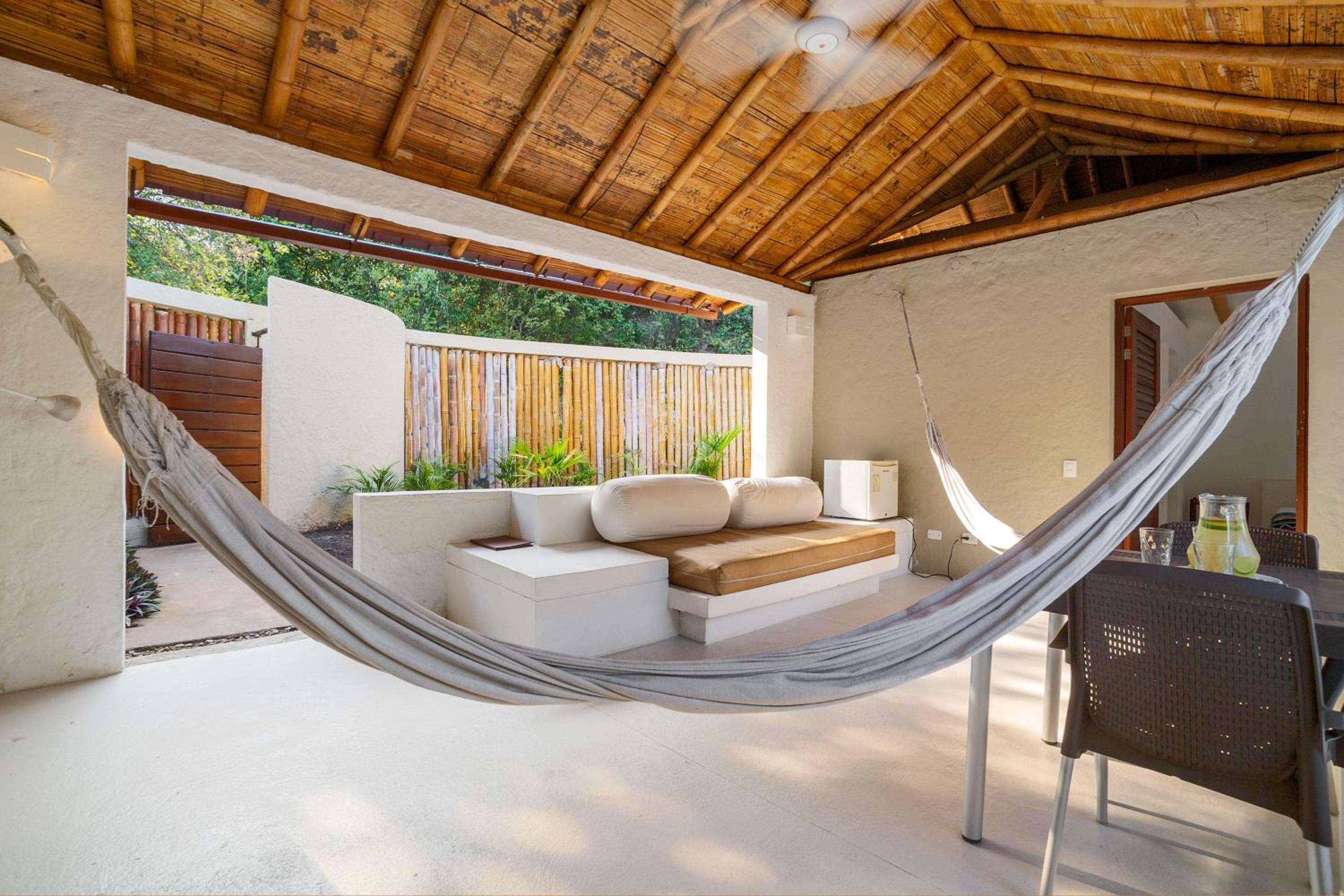 Each of the 33 suites features a living room with a hammock, a private pool, and a seating area. The bioclimate roof designs ensure comfortable room temperatures without the need for air conditioning, while the private bathrooms offer a shower and complimentary toiletries.