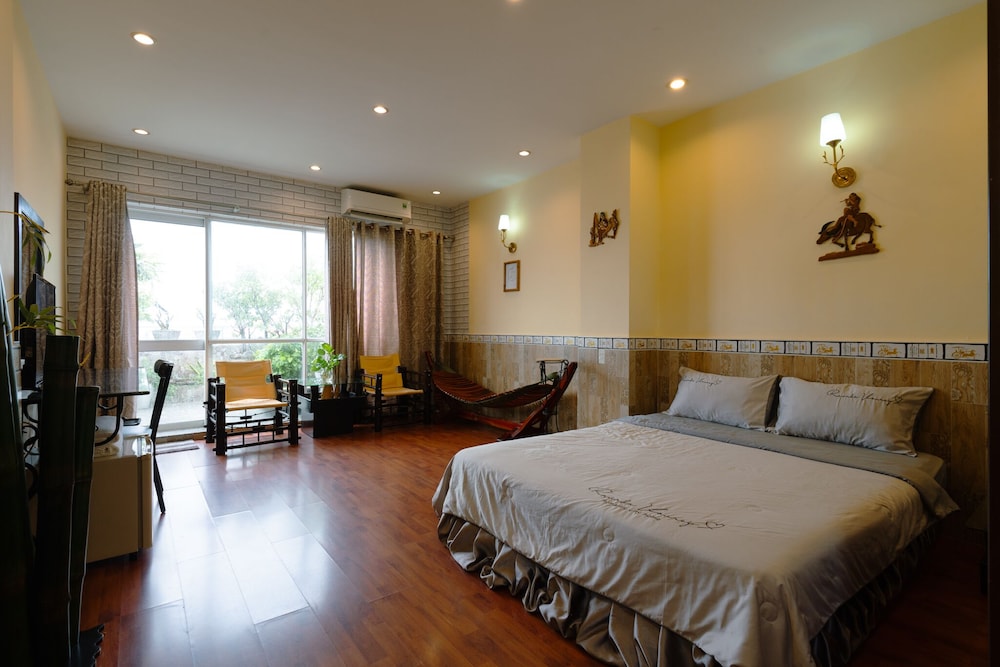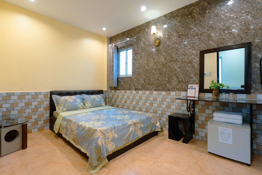Nous avons dormi deux nuits dans cet hôtel à notre arrivée au Vietnam. L'accueil par Kim à la réception a été très chaleureux et en français : un verre de jus de fruit de bienvenue, une carte de la ville et des conseils pour les visites. Elle nous a aussi aidé pour notre départ vers Cai Bè où l'hébergement qu'on avait choisi était éloigné de tout en organisant notre trajet en bus et en téléphonant pour qu'on vienne nous chercher. Notre chambre était au 6ème étage et nous avons apprécié qu'il y ait un ascenseur. Il ne faut pas se fier à la façade très étroite de l'hôtel qui ne paye pas de mine.