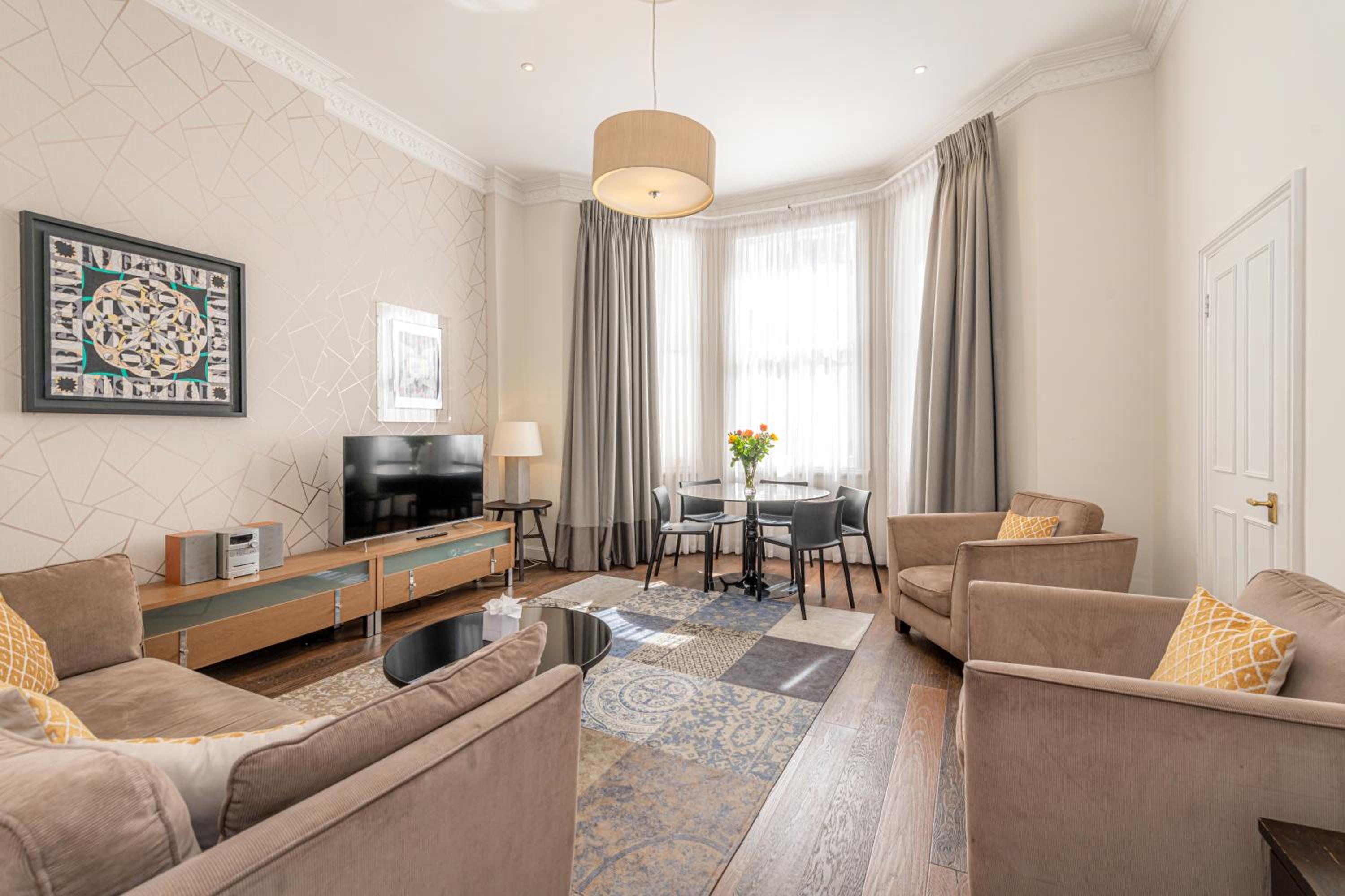 Prime Location: Explore London's iconic attractions like the Royal Albert Hall, Hyde Park, and renowned museums, all within a 10-minute walk. Quick access to Central London and the West End theatres via a short Tube ride from South Kensington station.