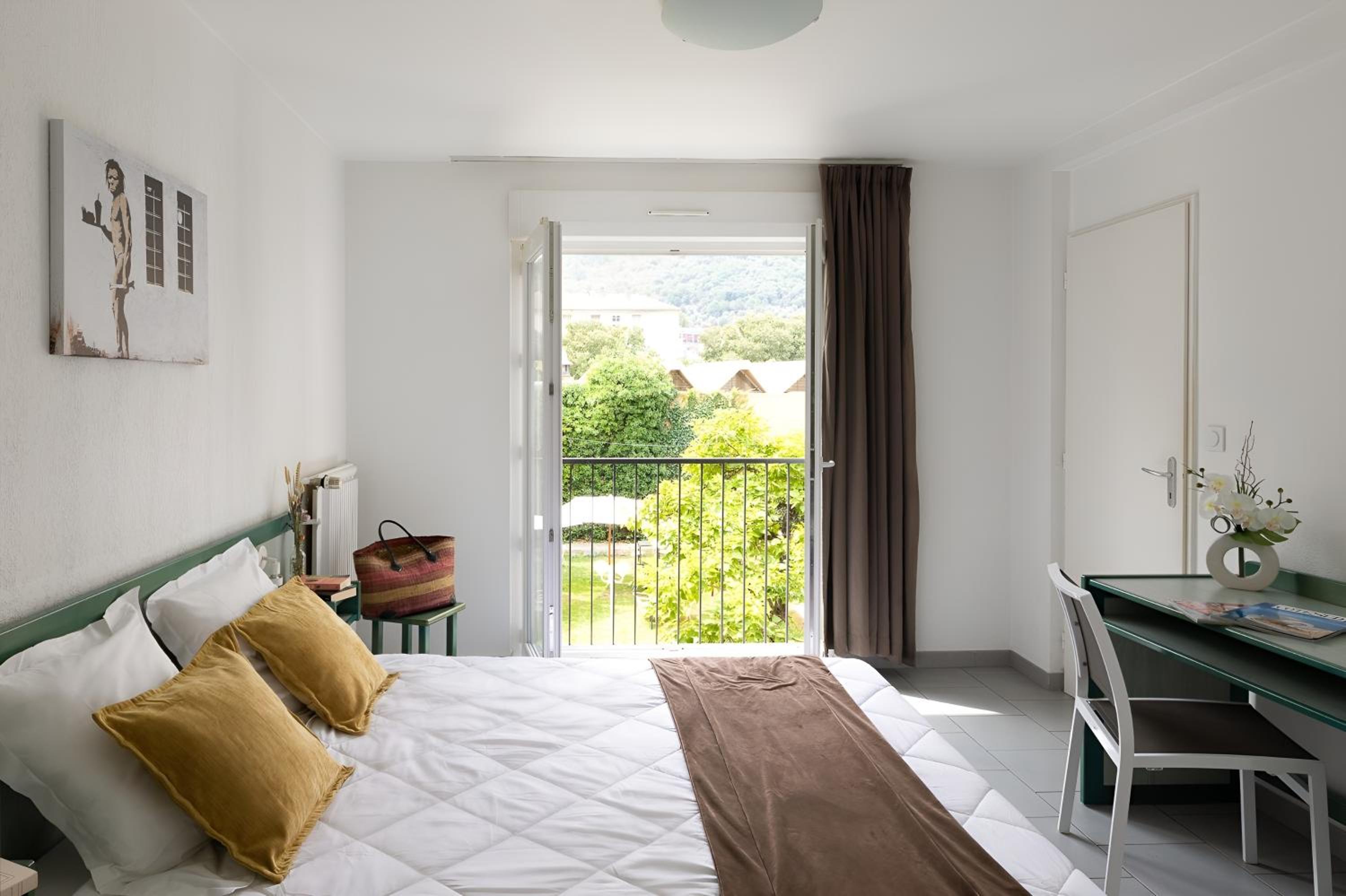 L’emplacement est idéal depuis la gare. Il y avait une piscine et un grand jardin. Le petit déjeuner est simple mais suffisant. Bon rapport prix/ qualité.