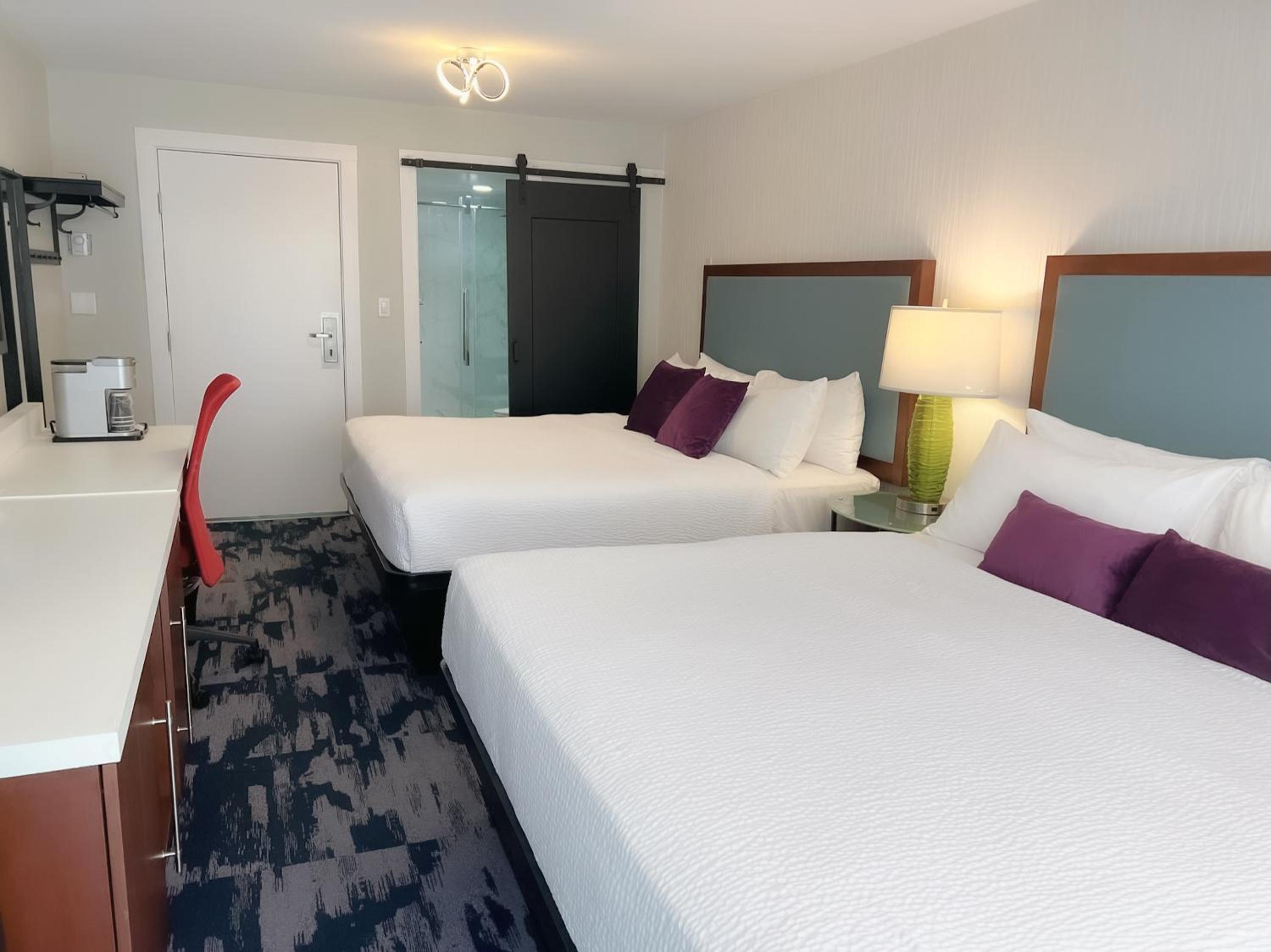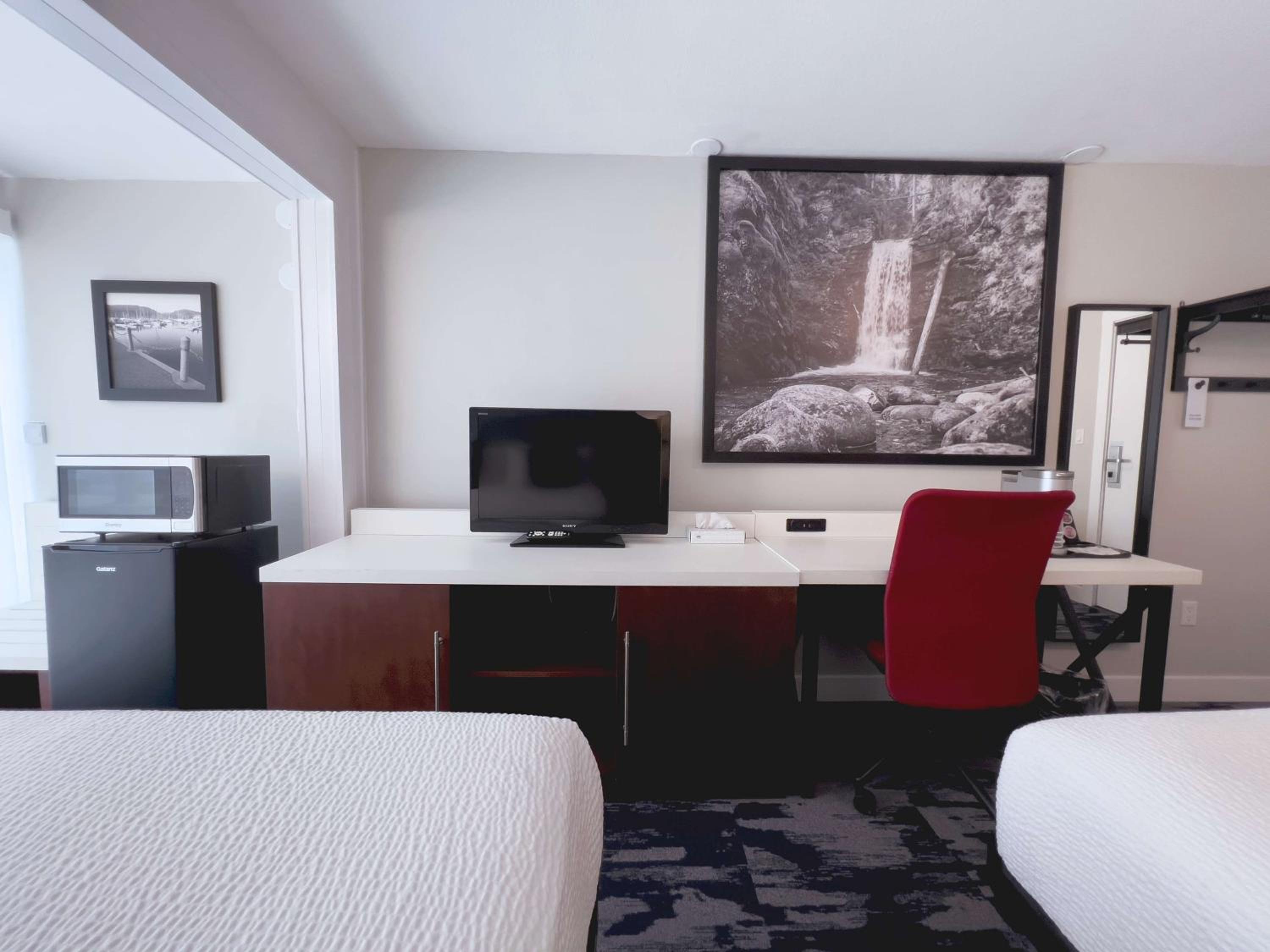 Staff are always nice and helpful. Building was reno’d a few years ago, but already feeling run down. Bathroom had black mold on ceiling of shower. Asked to be moved and staff was helpful. Unfortunately new room didn’t smell or feel clean. I used towels to sit on couch as it smelled like people had been living on it, and shower floor felt spongy underneather shower liner all around the drain. Property appears to need some time and money spent on fixing and needs upholstery cleaning. Great place just getting run down quickly.