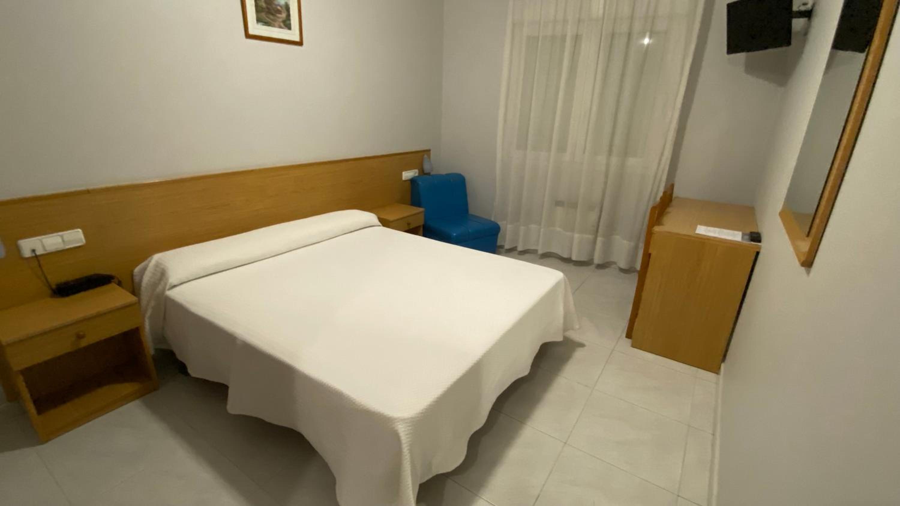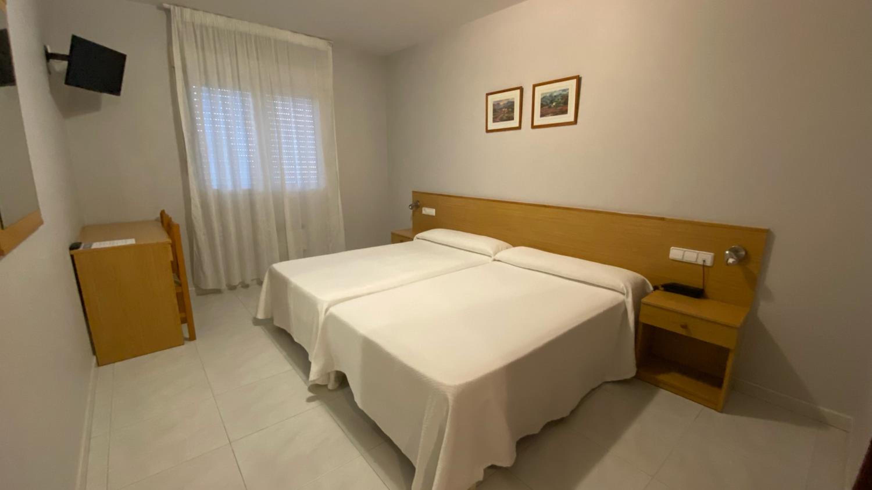 The rooms at Bradomín are designed with tiled floors and simple décor, each equipped with a TV, private bathroom, and some with a private balcony for a relaxing stay.