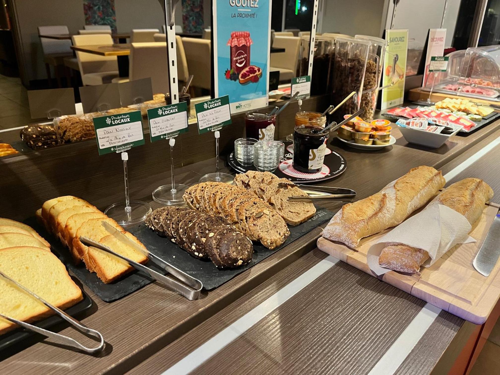 Start your day right with a continental buffet breakfast featuring local products, served at Brit Hotel Confort Montauban to satisfy your taste buds.