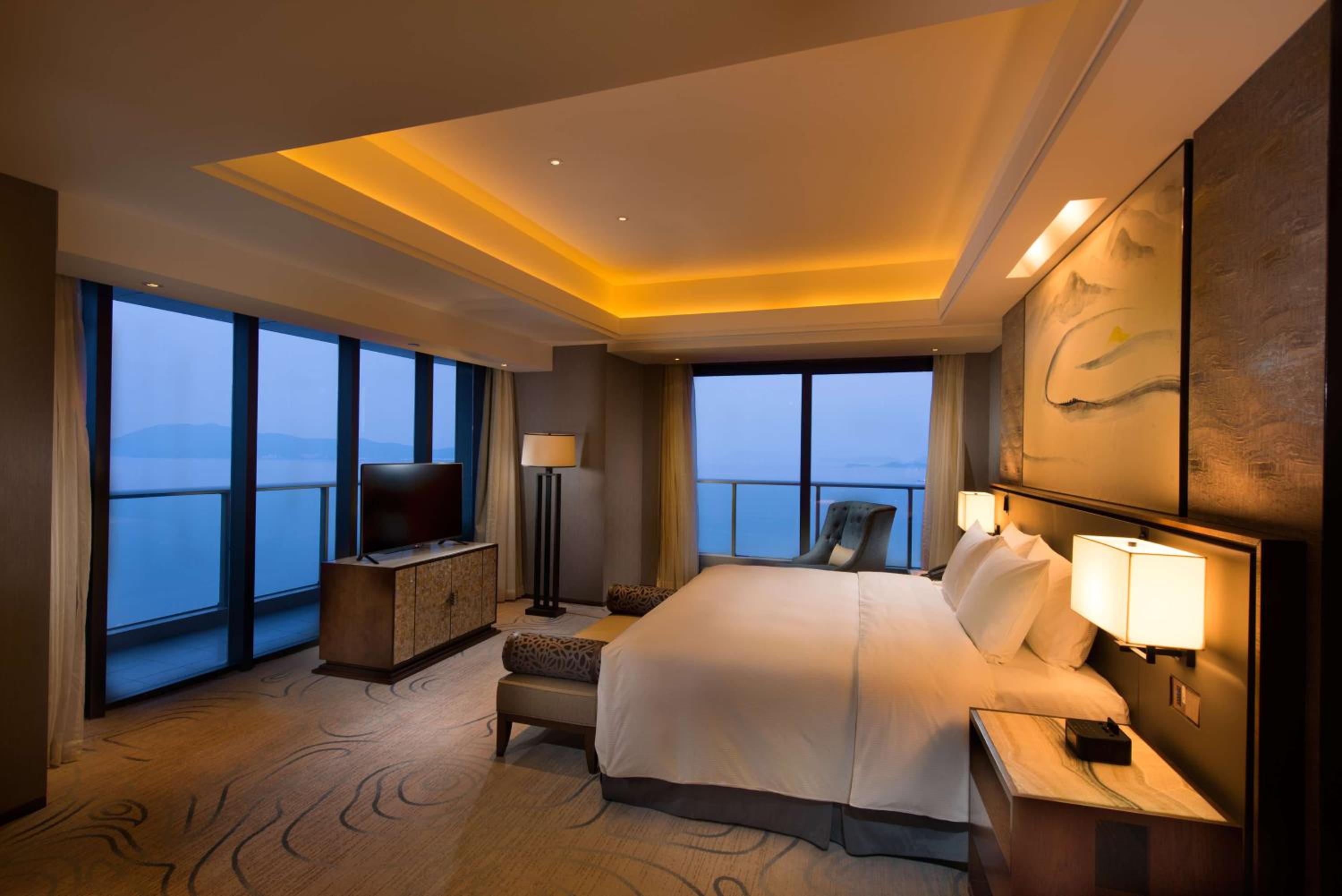 整体来说是很不错的一次入住体验。酒店高端上档次,环境设施各个方面都很不错。酒店房间宽敞舒适。我预定的湖景房间,正对湖景,景色怡人。酒店的自助餐厅环境优雅,菜品也比较多。地理位置也很不错,交通方便。离朱家尖很近。很值得推荐的一家酒店。