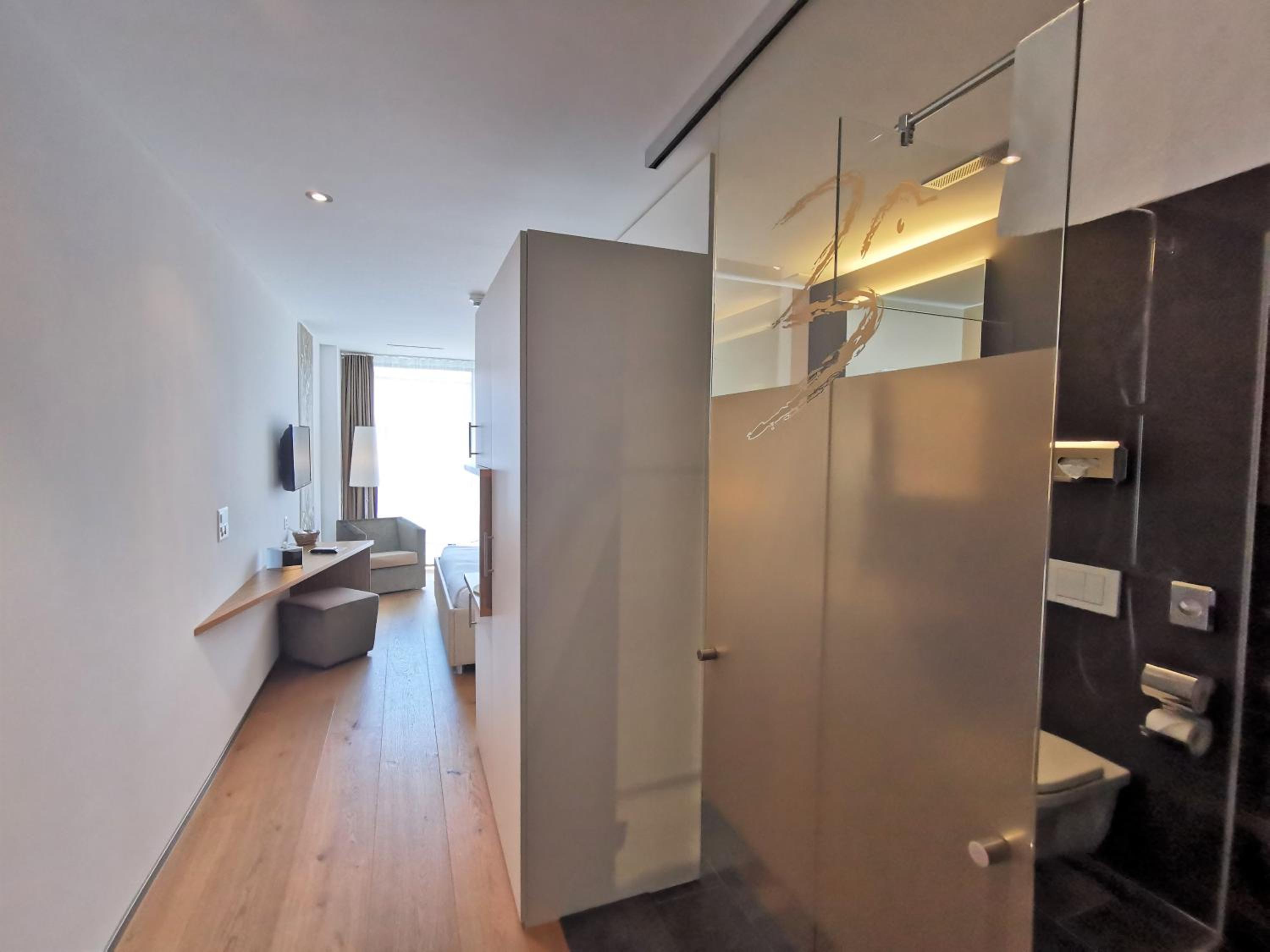 Badezimmer mit Glastüren sind gewöhnungsbedürftig.