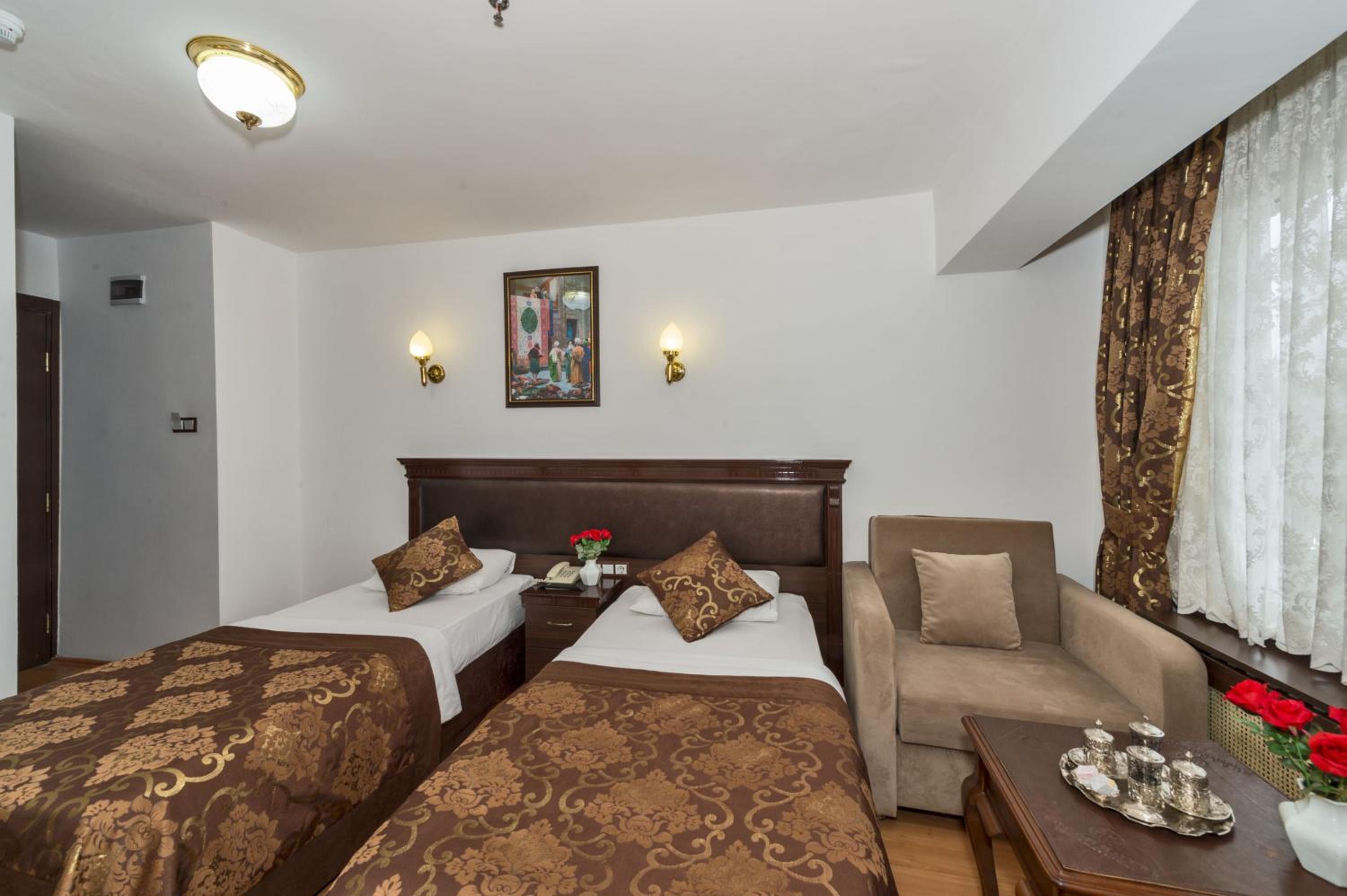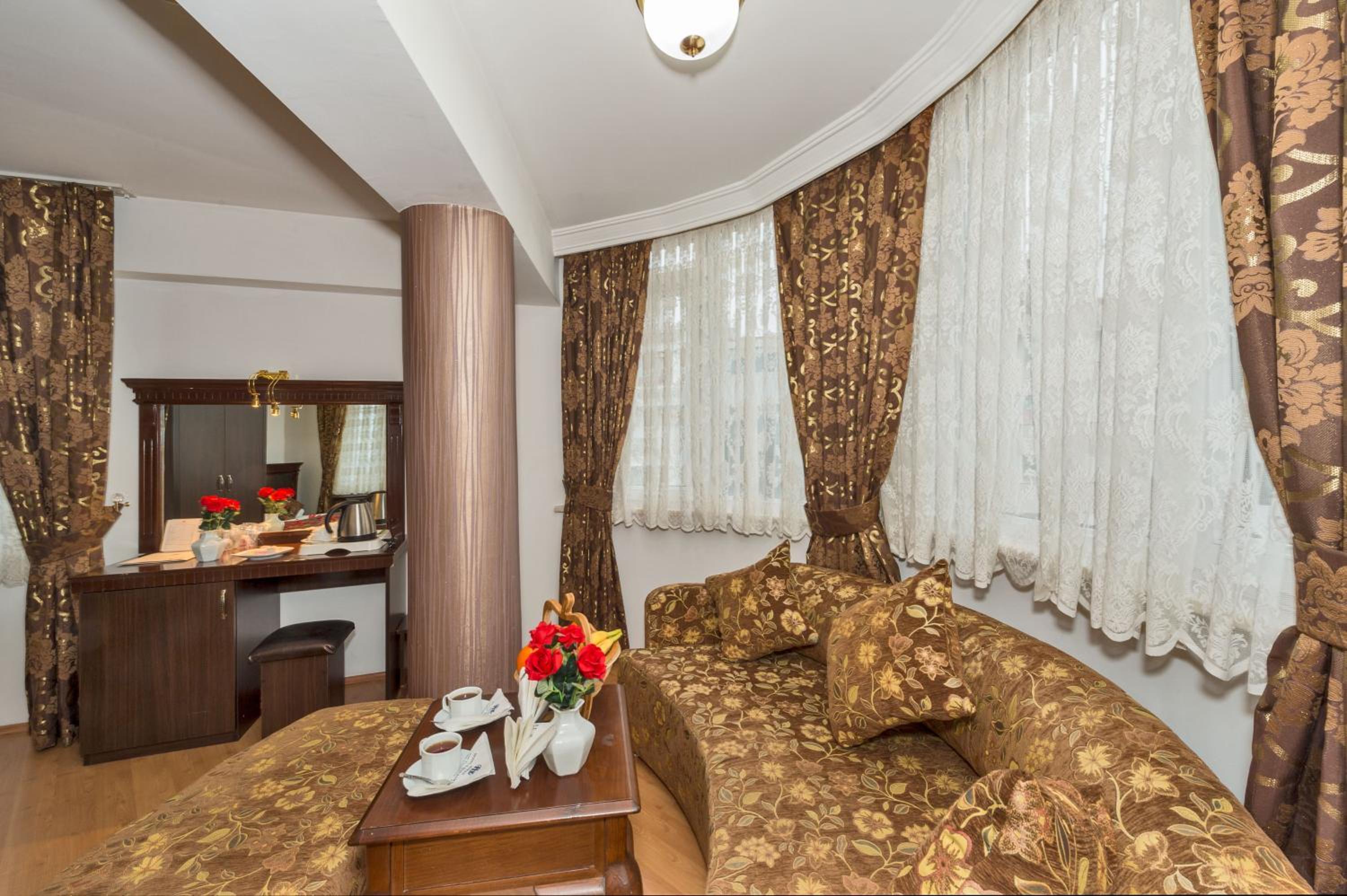 The Kuran Hotel, just a short stroll from the Grand Bazaar, offers elegantly furnished rooms with modern amenities. Some suites even boast a relaxing spa bath and spacious seating area, ensuring a comfortable stay for all guests.