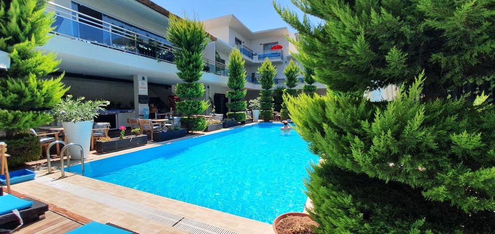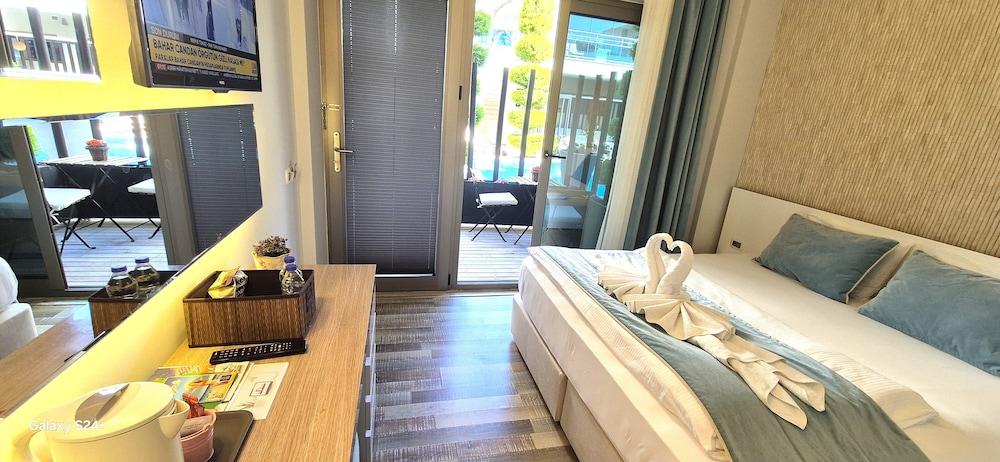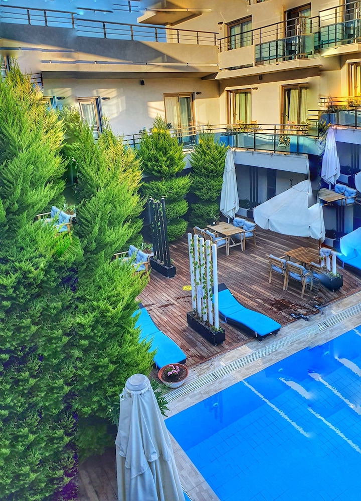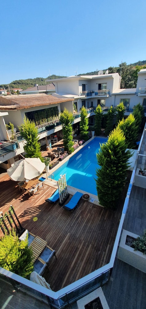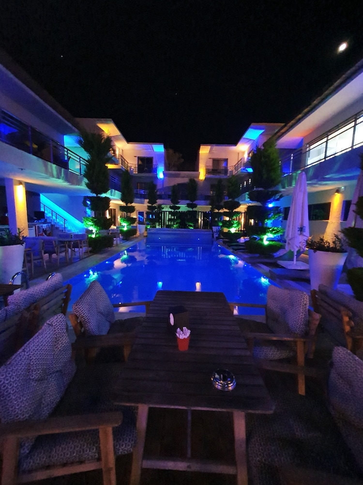 Resepsiyonda Mert Bey'e çok teşekkürler, bizlere çok yardımcı oldu. Tüm çalışanlar zaten çok ilgili ve sıcak kanlıydı. Ancak ufak bir otel olmasından dolayı tüm odalar havuz ve restoran bölümü çevresinde toplanıyor ve buda gürültü sıkıntısı yaratıyor. Özellikle çocuk gürültüsü çok fazlaydı.
