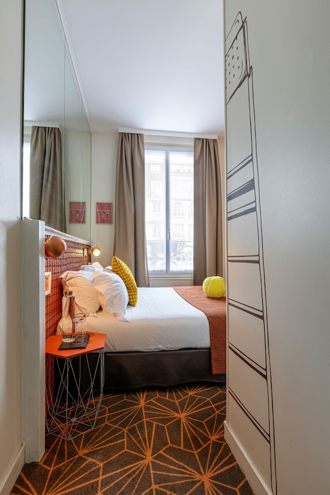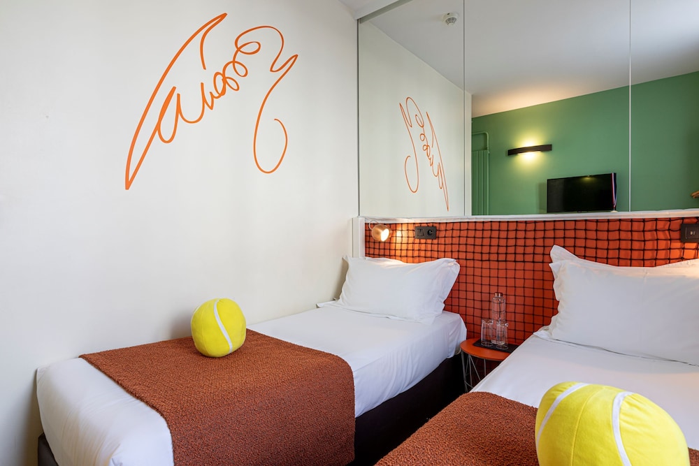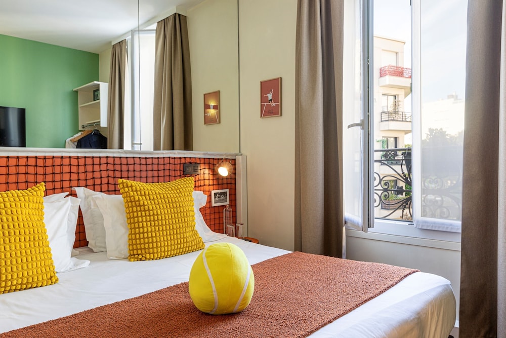 One for Tennis fans for sure! Otherwise you could see the age of the rooms and not that clean, but defo comfy beds. The staff were excellent and really approachable. the overall hotel is small (including the lift) but fine if you are only there to sleep. About a 15 min to metro and bus stops so we felt the transport links were good but you are not that close to the main sites. We had breakfast at a patisery opposite which was nice. If you love tennis - then you will love this hotel! if you don't, then its ok. We prob would stay again if the price was right.