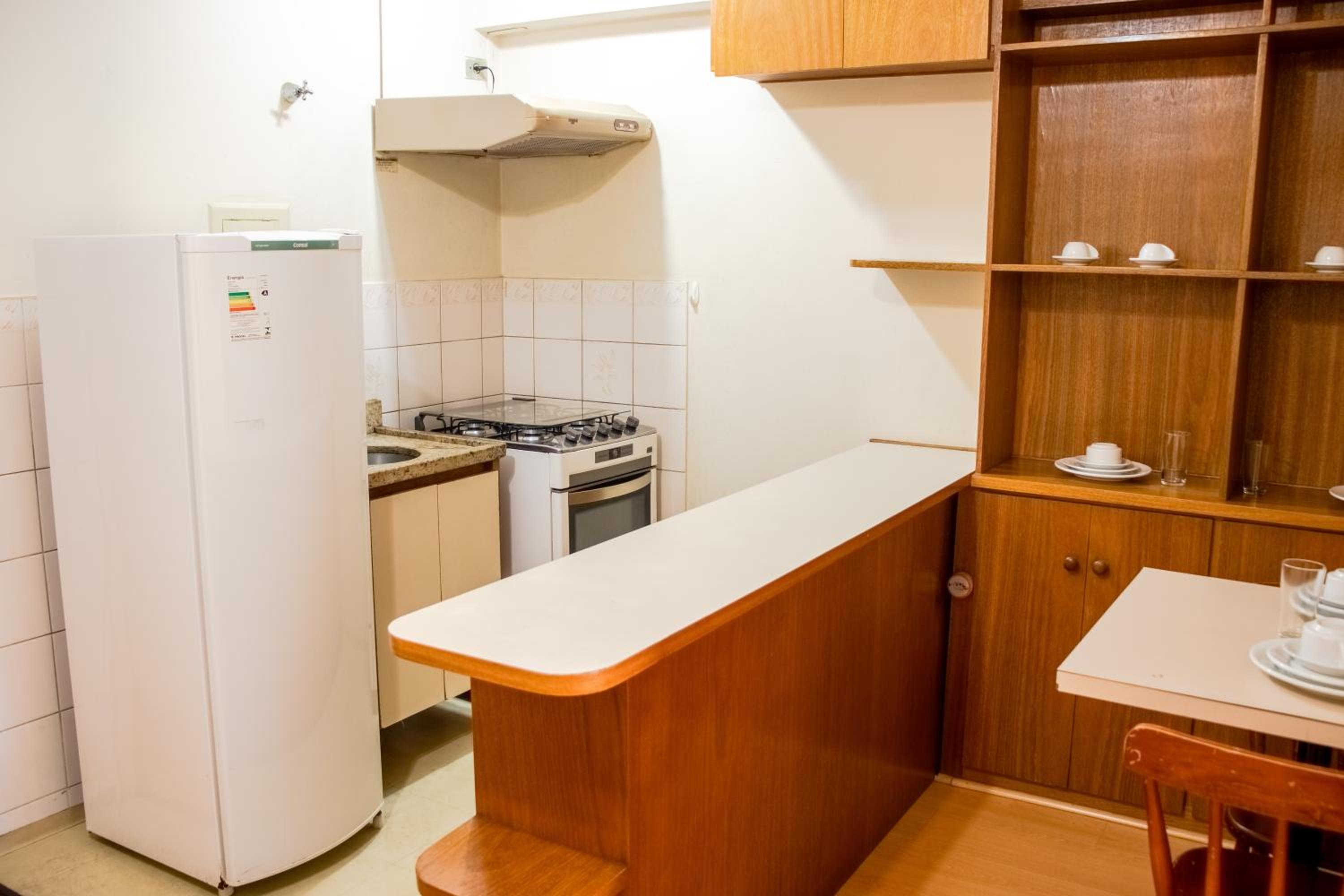 Ele precisa de uma boa reforma, muitas coisas se deterioraram, pia do banheiro quebrada, azulejos do banheiro quebrados, a coifa é extremamente antiga e aparência de bem suja, mas creio que seja o tempo de uso.
