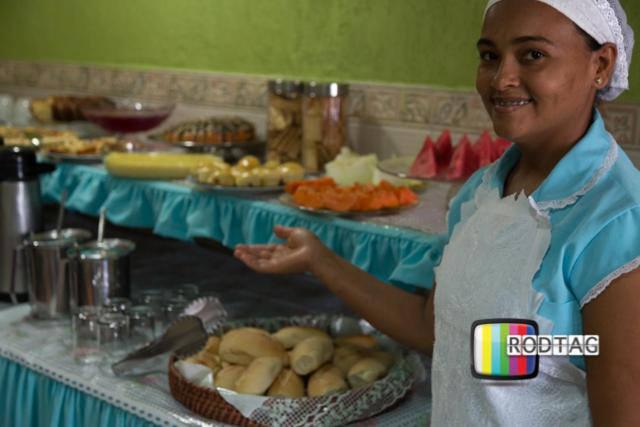 O café da manhã tem poucas opções.
