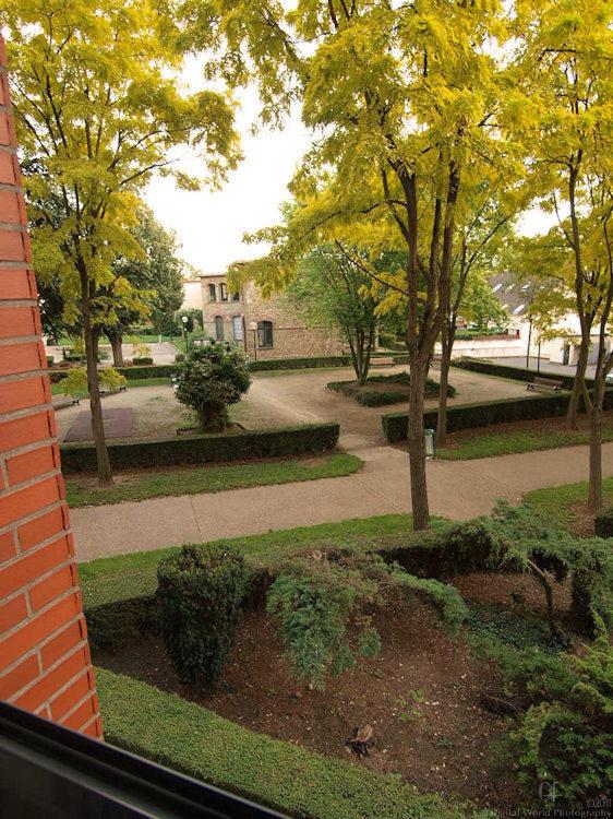 Absence de parking dans l'hôtel. Hotel en ville, difficulté à garer la voiture. L'hotel qui ouvre à 17h. Le lavabo déficient : robinet très dur et brusque. Vasque non étanche. Le bruit des gouttes d'eau sur le store du magasin du dessous sans discontinuer. Éloignement de Paris. Chambre un peu exiguë. Equipement minimal.