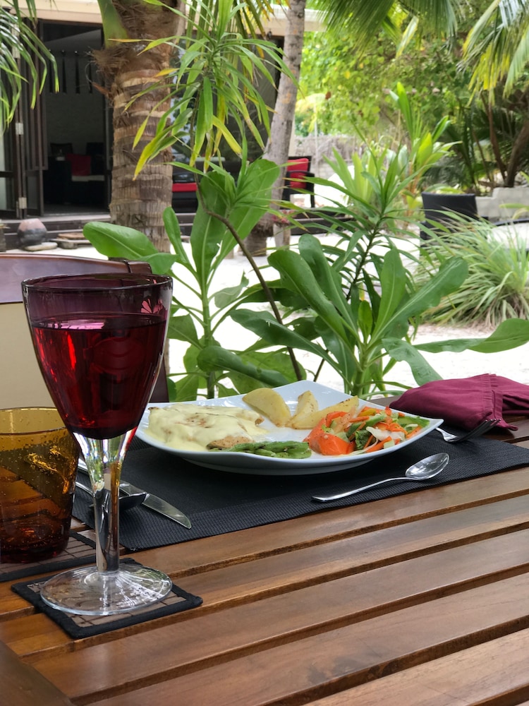 Questa guest house è una struttura meravigliosamente immersa nella natura delle Maldive. Con la camera a pochi passi dal mare (con bikini beach), uscire direttamente sulla sabbia e tra la natura è uno spettacolo unico. Il tutto accompagnato da alcuni educatissimi gatti che frequentano la spiaggia e i dintorni dell'hotel.
