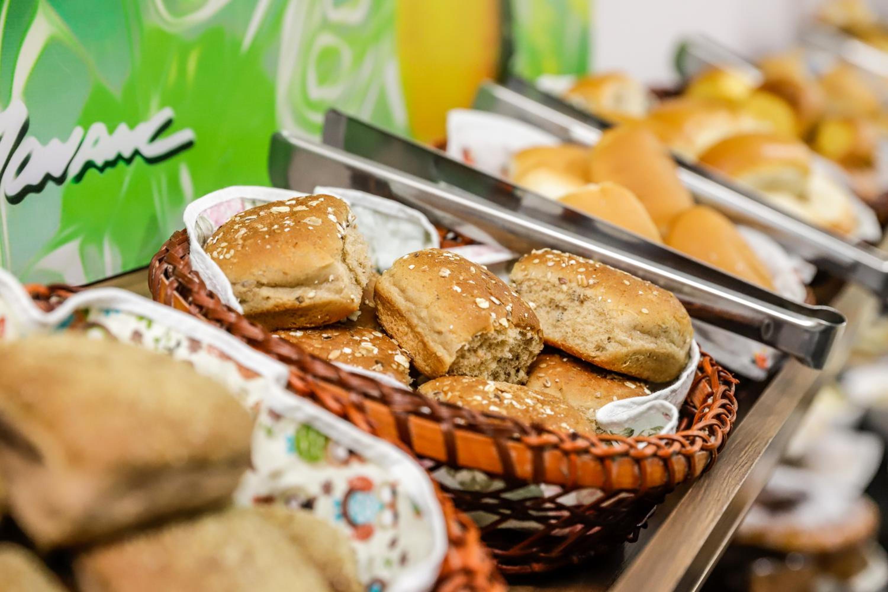 Hotel Trevita Foz in Foz do Iguaçu offers complimentary WiFi access and a delicious breakfast with a variety of fresh fruits, breads, and cold meats, along with hot and cold drinks.