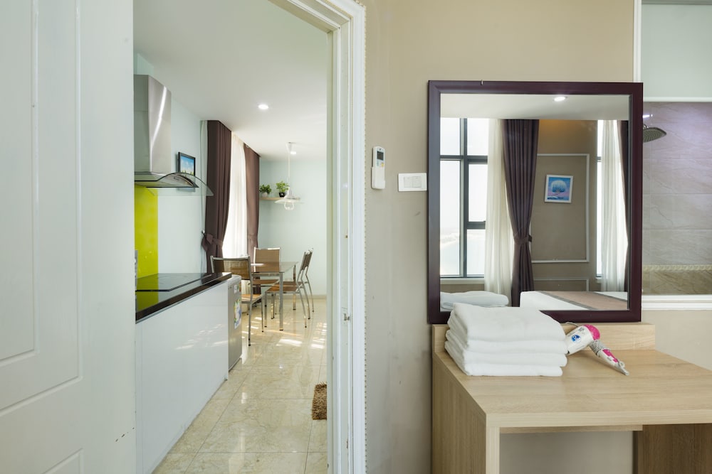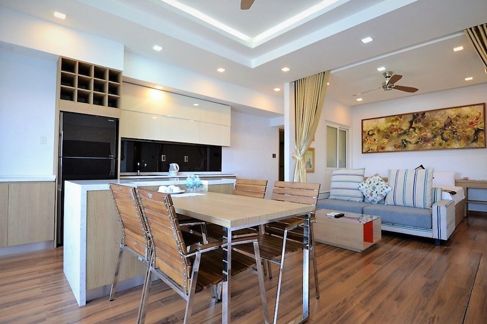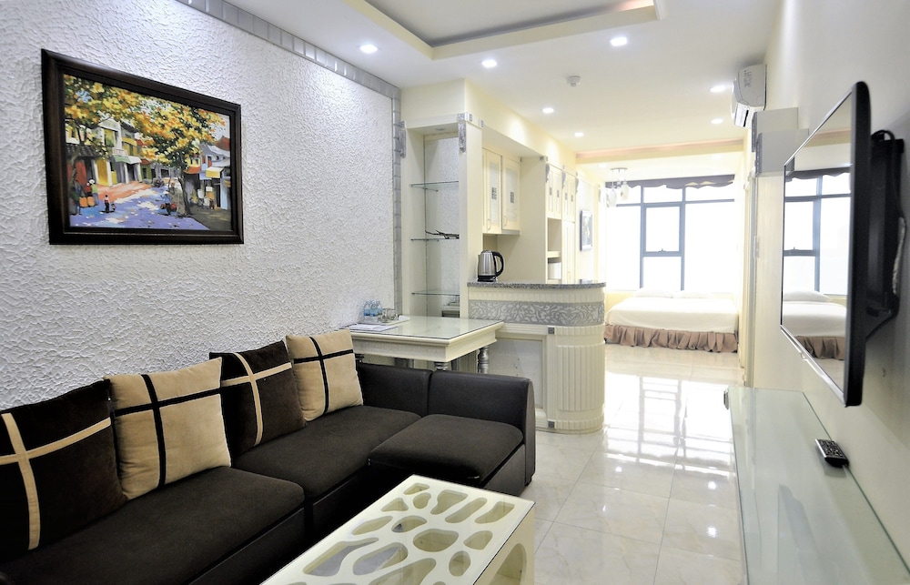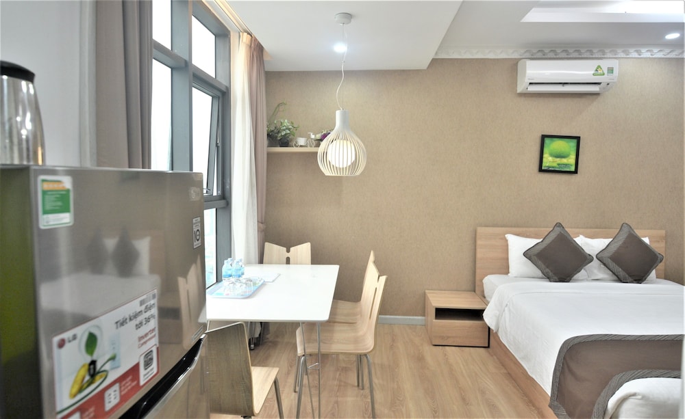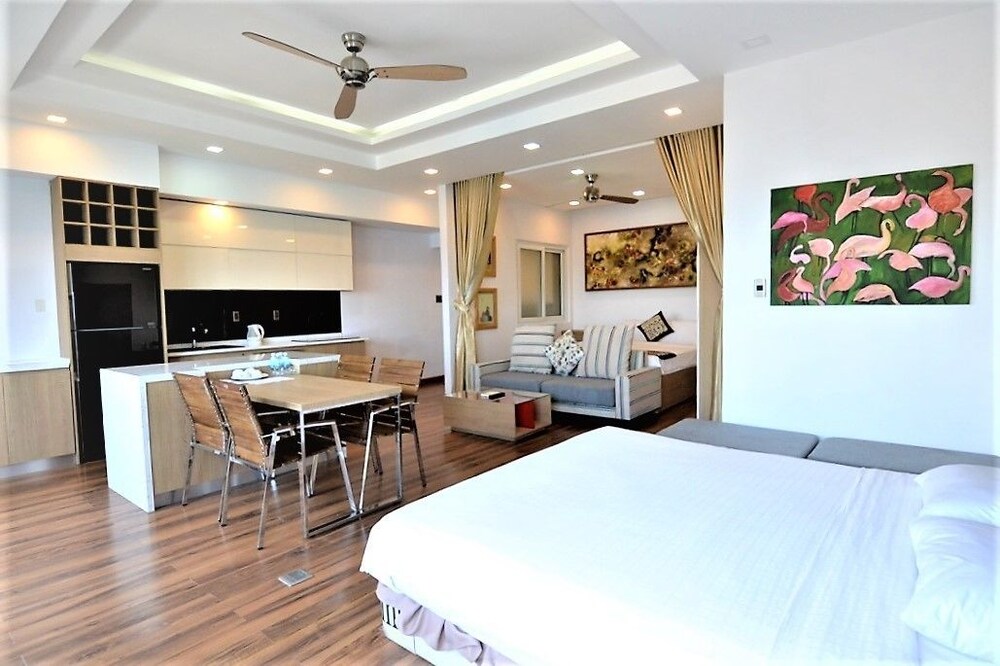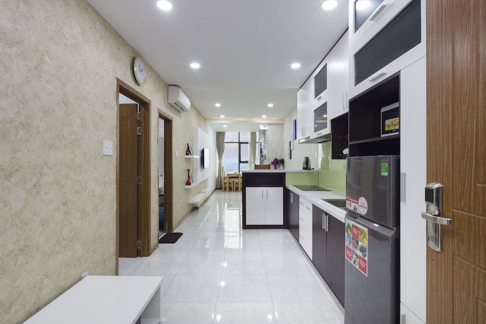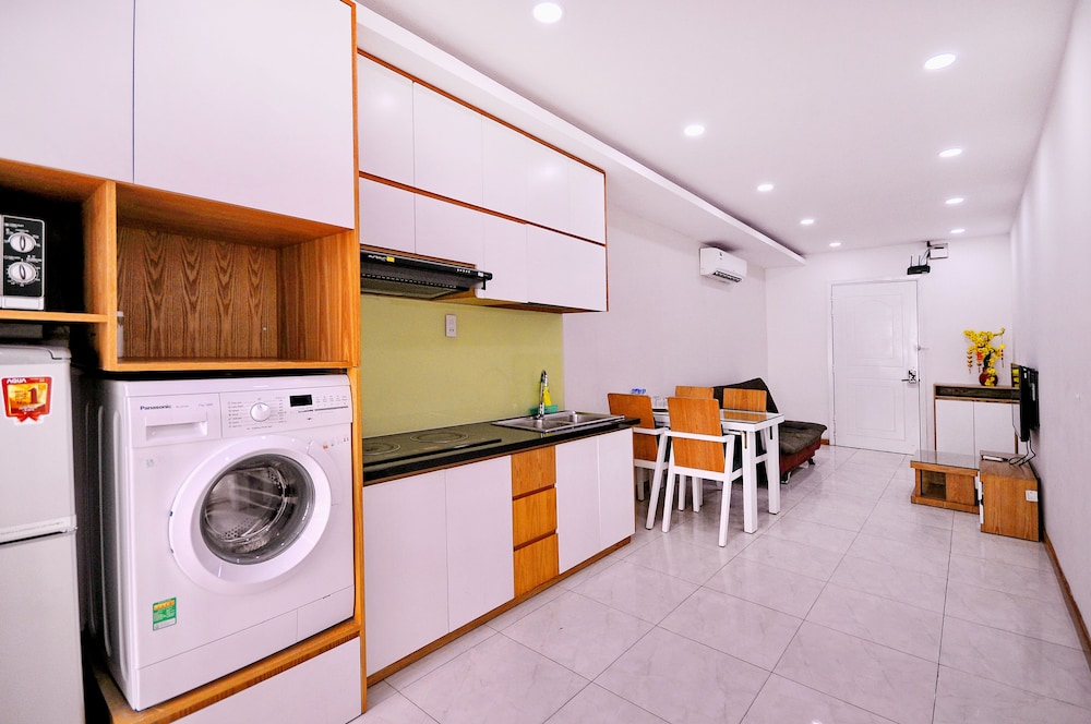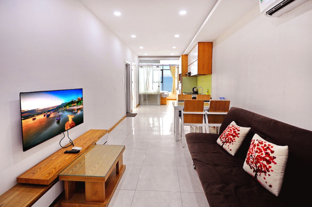 The apartment is at great location; i.e. cross the road to beach, walking distance to Vincom shopping centre and night market. The staffs are quite friendly and helpful with check-in, check-out process. The apartment and its furnitures are clean enough, and they do daily house keeping which is a + mark of this business. Only problem is parking, If you ride a bike/car the parking staffs try not to sell you daily parking ticket, but the one-time hop in and out parking ticket.