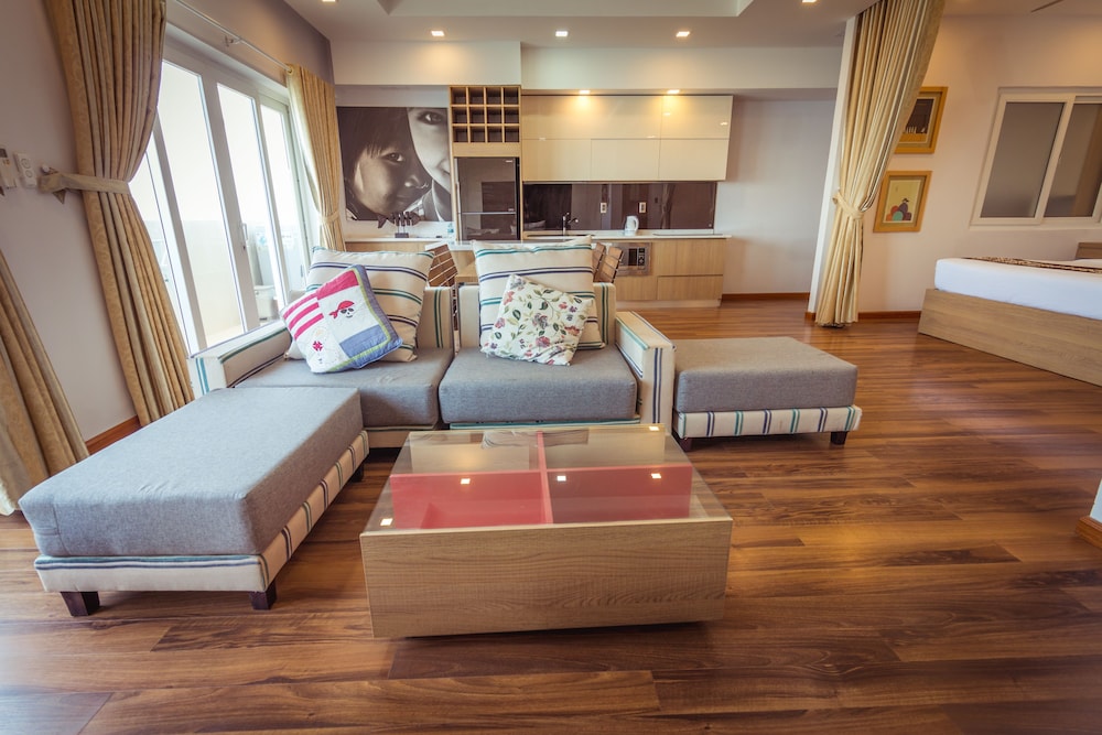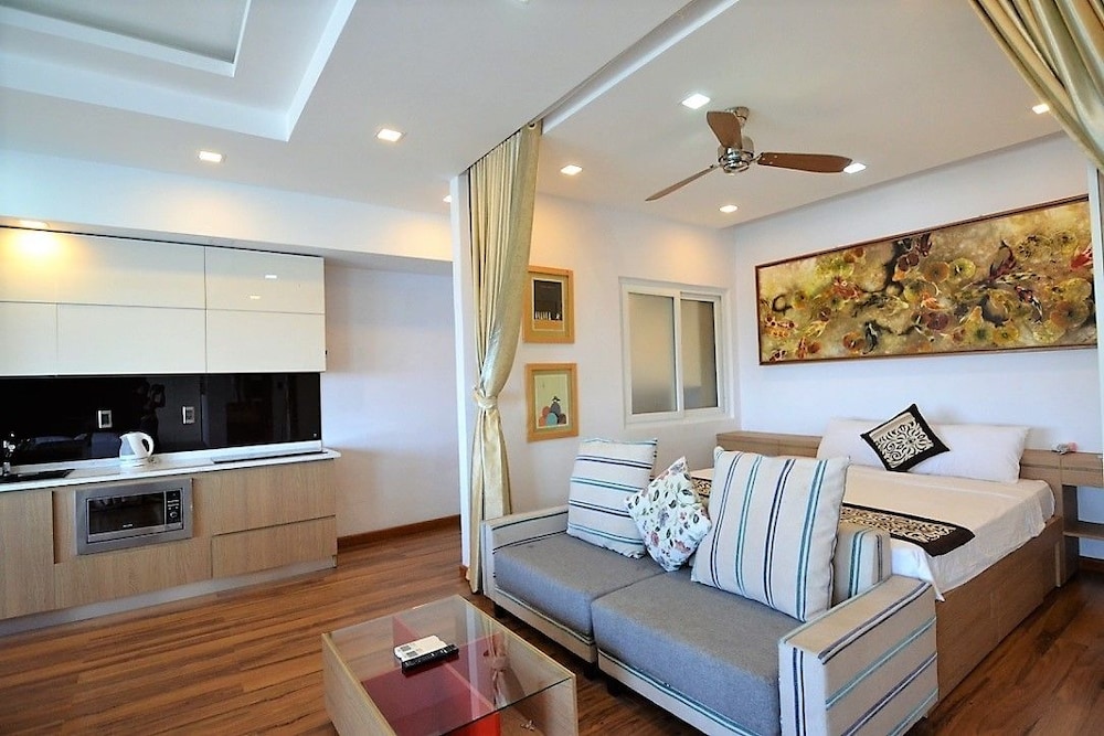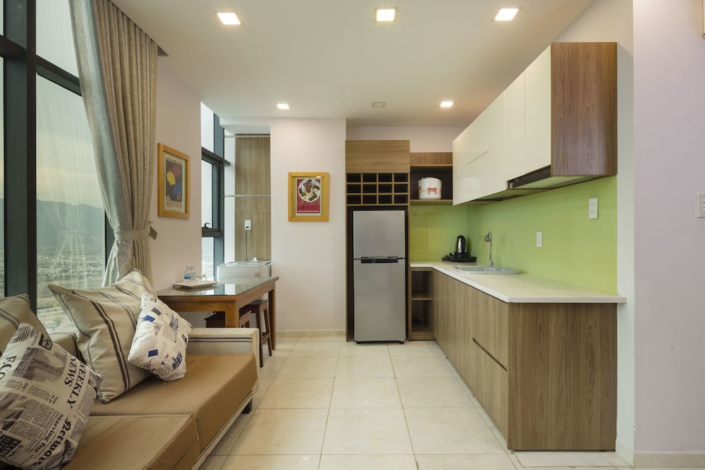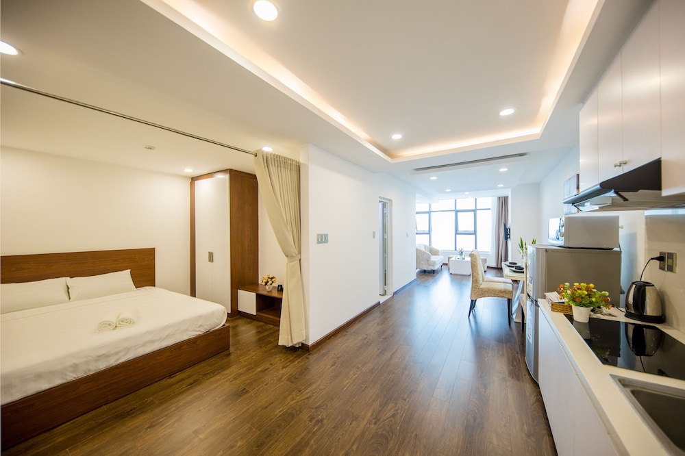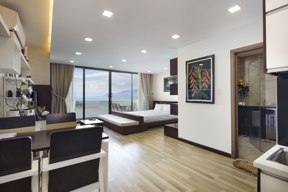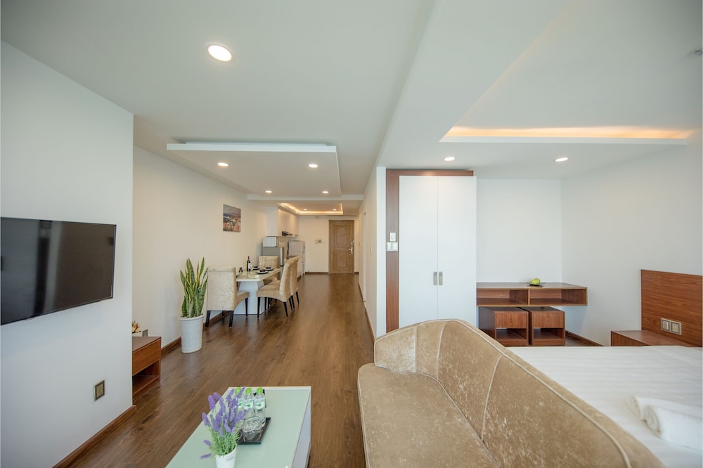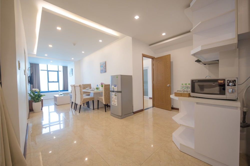 The apartment is at great location; i.e. cross the road to beach, walking distance to Vincom shopping centre and night market. The staffs are quite friendly and helpful with check-in, check-out process. The apartment and its furnitures are clean enough, and they do daily house keeping which is a + mark of this business. Only problem is parking, If you ride a bike/car the parking staffs try not to sell you daily parking ticket, but the one-time hop in and out parking ticket.