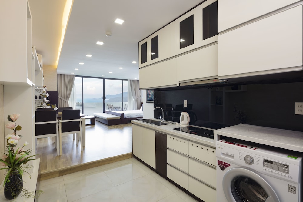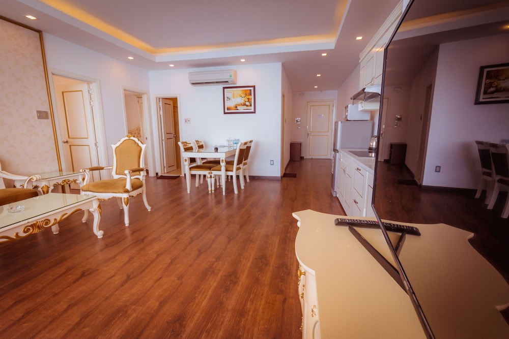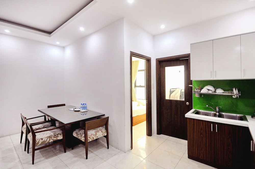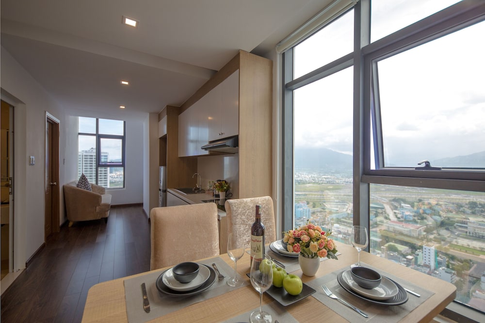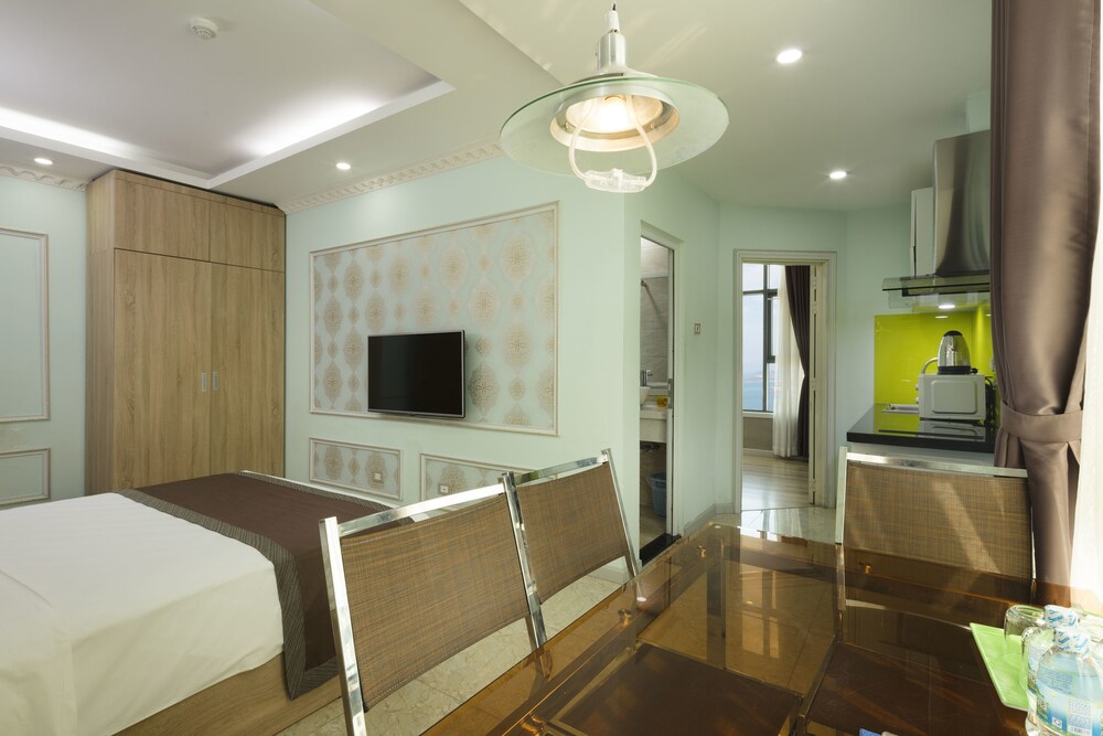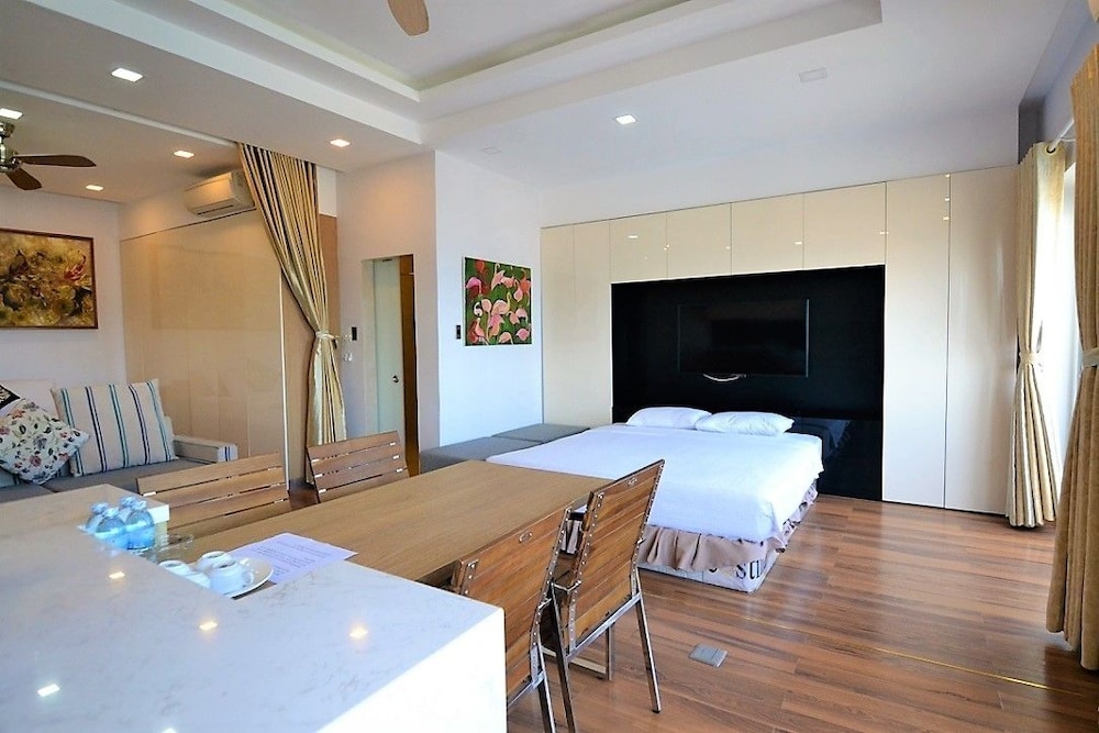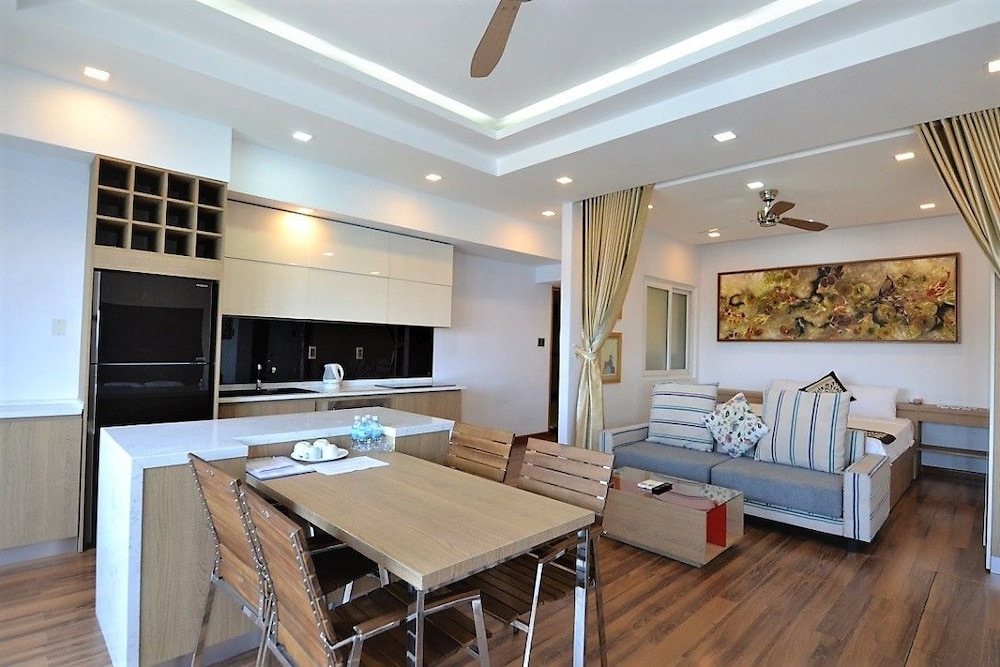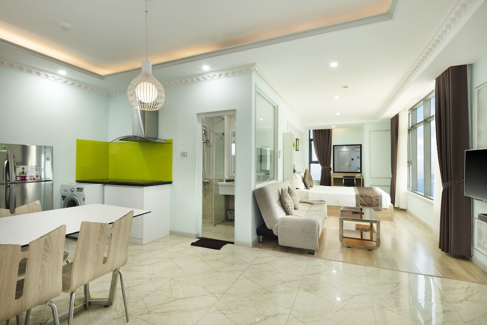The apartment is at great location; i.e. cross the road to beach, walking distance to Vincom shopping centre and night market. The staffs are quite friendly and helpful with check-in, check-out process. The apartment and its furnitures are clean enough, and they do daily house keeping which is a + mark of this business. Only problem is parking, If you ride a bike/car the parking staffs try not to sell you daily parking ticket, but the one-time hop in and out parking ticket.