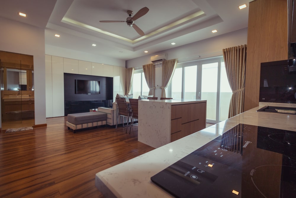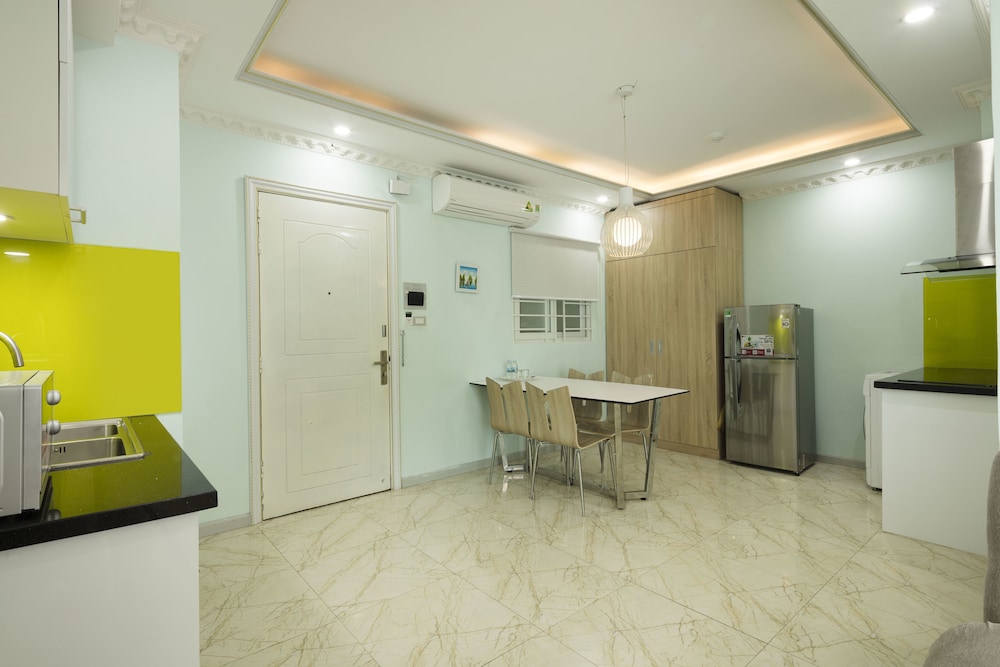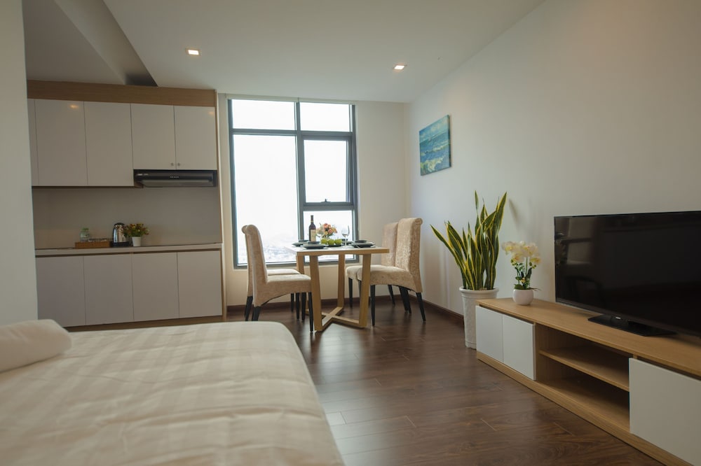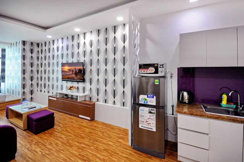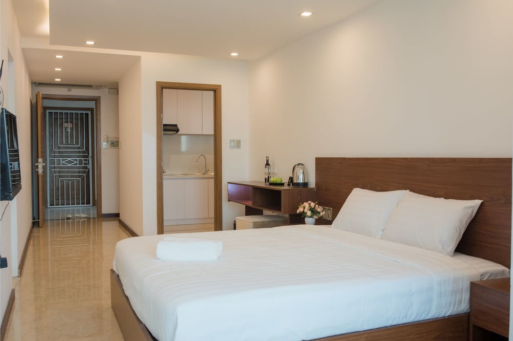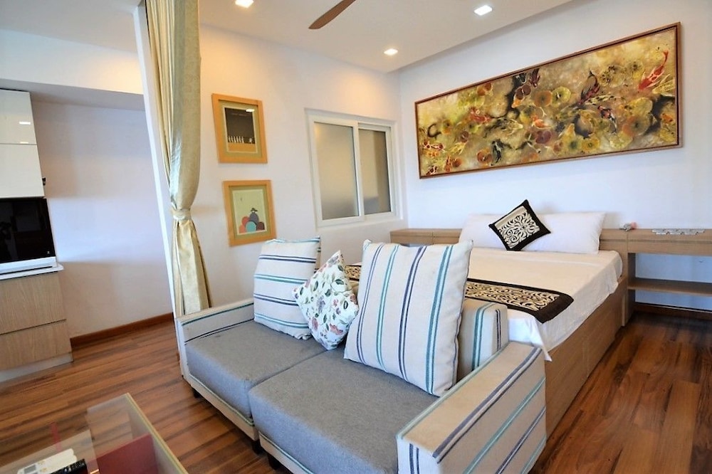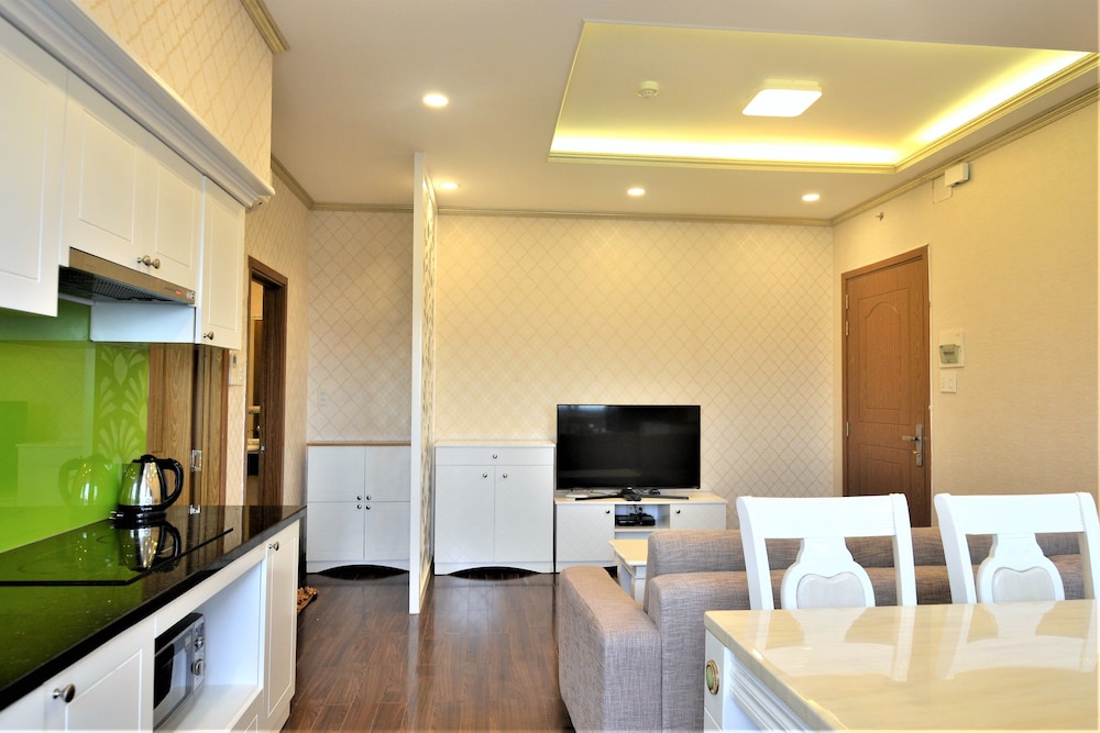The apartment is at great location; i.e. cross the road to beach, walking distance to Vincom shopping centre and night market. The staffs are quite friendly and helpful with check-in, check-out process. The apartment and its furnitures are clean enough, and they do daily house keeping which is a + mark of this business. Only problem is parking, If you ride a bike/car the parking staffs try not to sell you daily parking ticket, but the one-time hop in and out parking ticket.