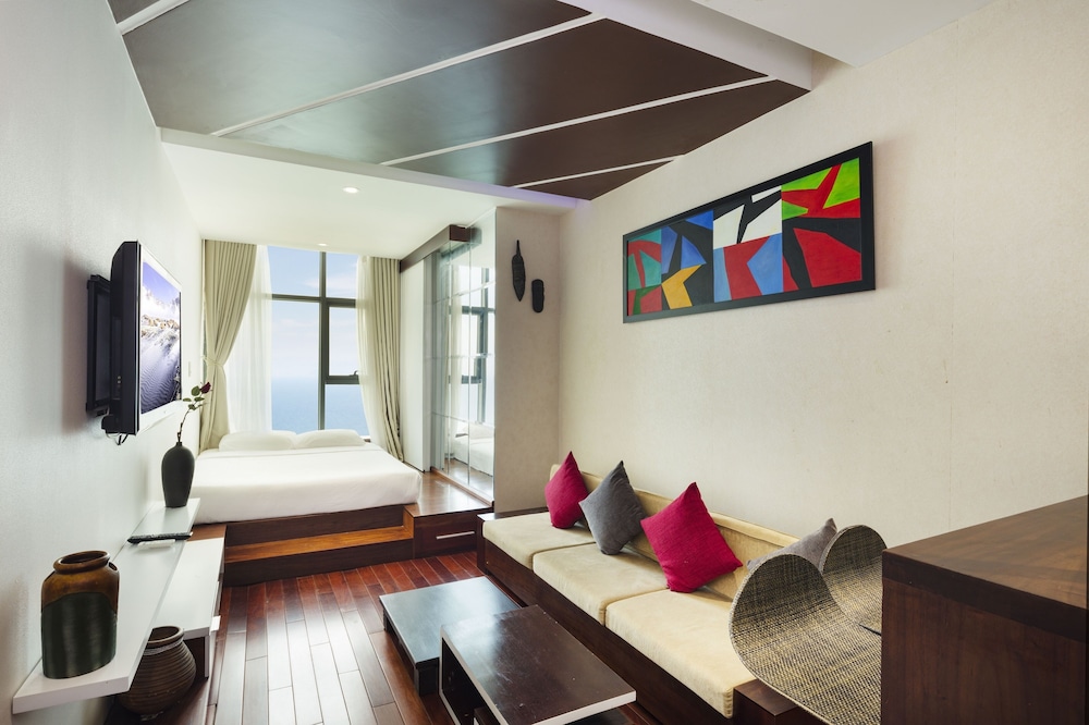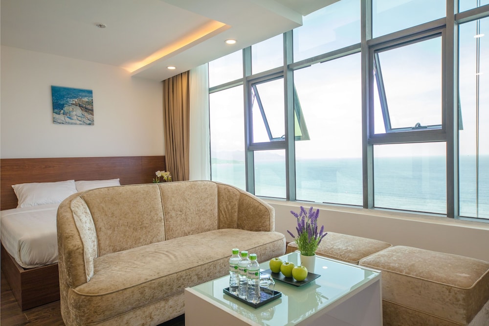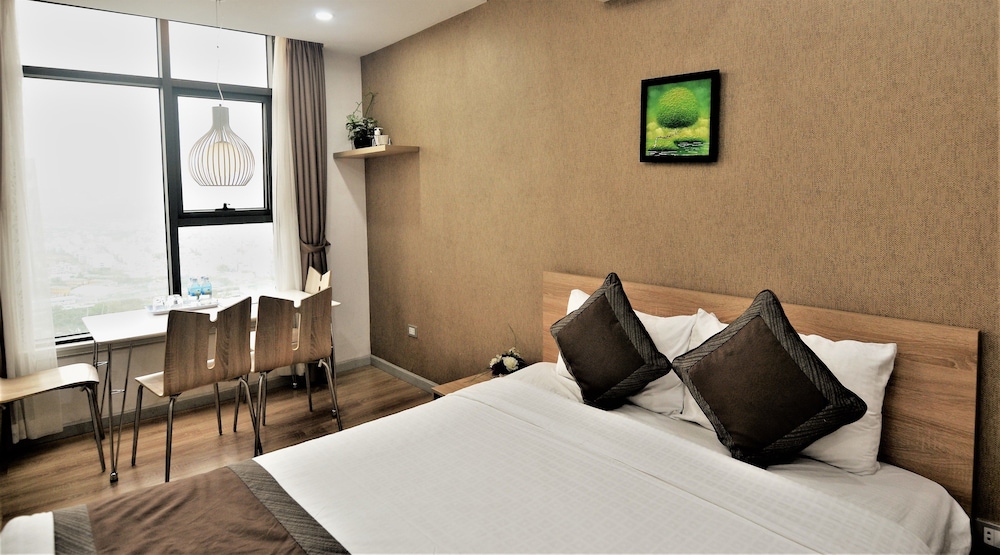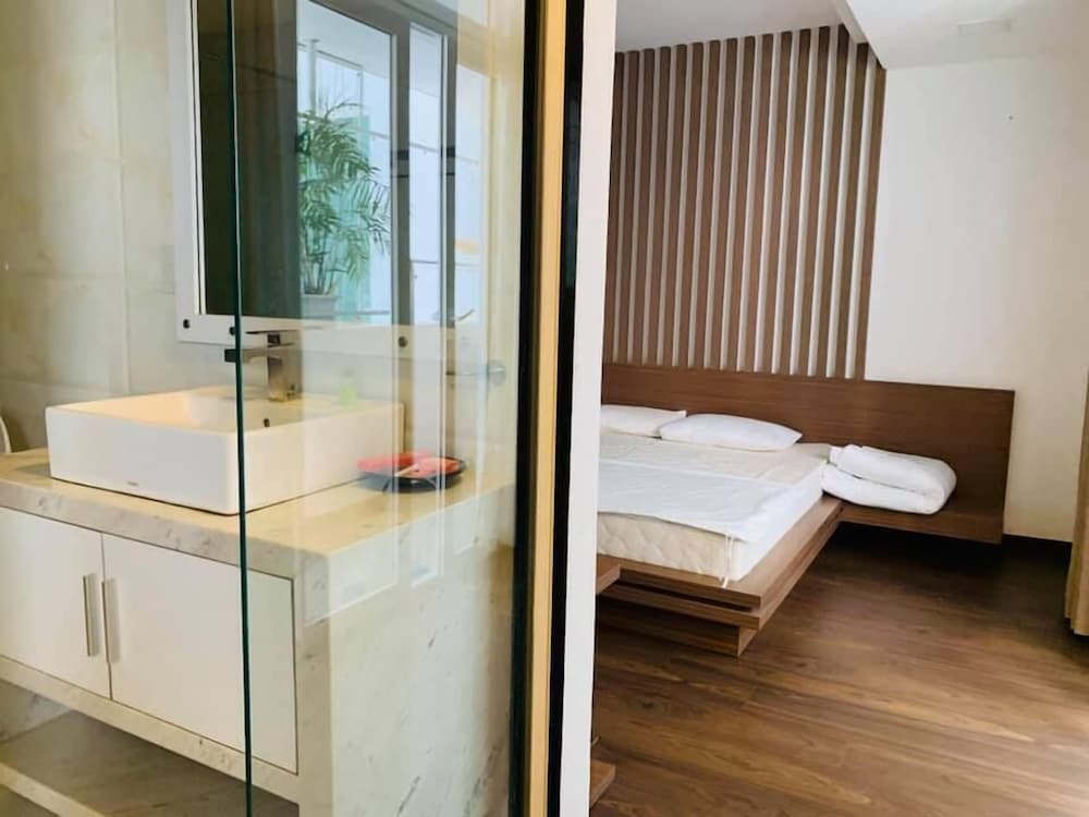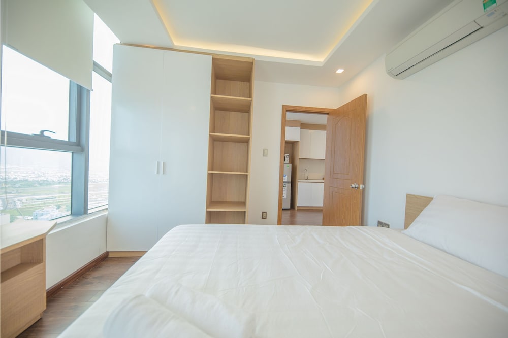 I didn't realise the rooms were so new and modern - a very nice surprise. The view from the 2-bedroom apartment was just breathtaking. It was a bit odd that the bathroom door didn't go right up to the ceiling and one of the bedrooms had no door on it - just a curtain. I found the bed to be quite firm as seemed to be the general rule-of-thumb in Vietnam. Also odd that there were no tea cups in the room and no tea or coffee. There was a kettle, but BYO tea/coffee.