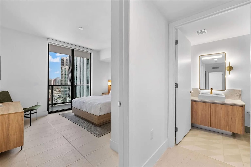 Clean room with nice bathroom.