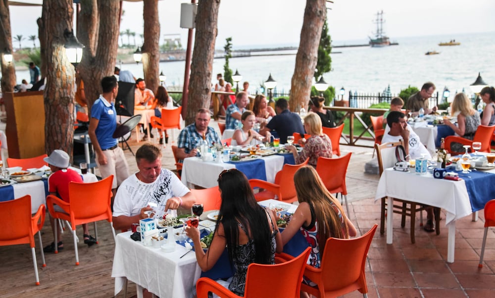 Alt får mange mennesker. Absolut ingen service i restauranten. Selv babystol og drikkevare skal man selv hente. Personale smiler stort set aldrig og er ikke hjælpsomme. Ingen elevator og vi boede på 3 etage og havde bedsteforældre med på over 70 år. Vi fik at vide at det ikke var muligt at flytte. Selv klapvognen skulle bæres op. Vandrutche baner gamle og limet med silikone som bed i Baller og lår når man kørte ned. På legepladsen var flere rutschebaner knækkede med store revner. Tredie gang vi prøver all inclusiv i Tyrkiet. Første og sidste gang vi bor på lonicera.
