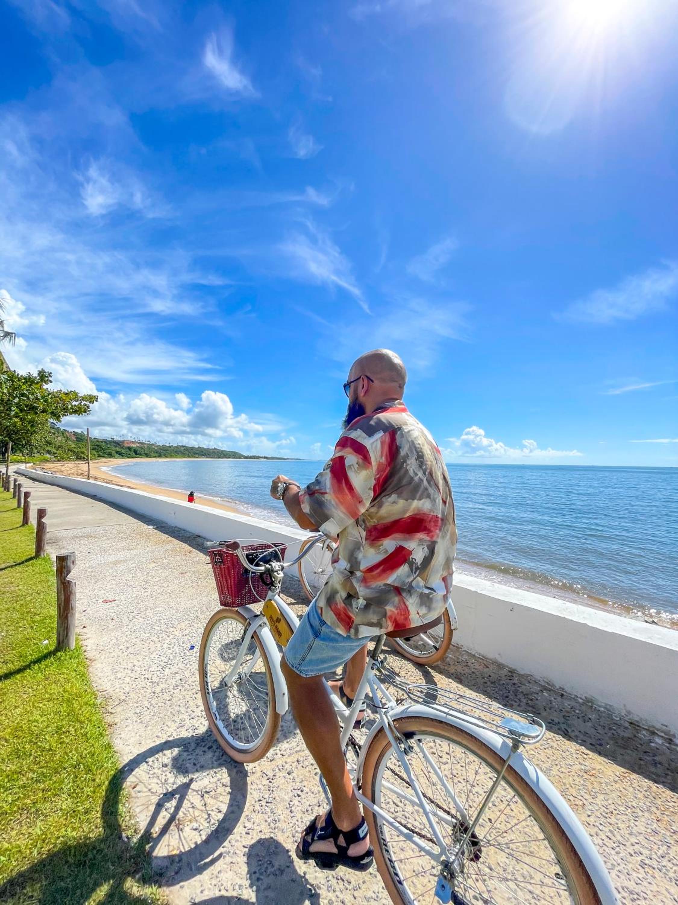 A praia em frente não eh para banho - somente caminhada ou bike fornecidas pelo hotel - se quiser ir para praia precisará seguir um pouco mais ao Norte onde terá boas praias e estrutura de areia