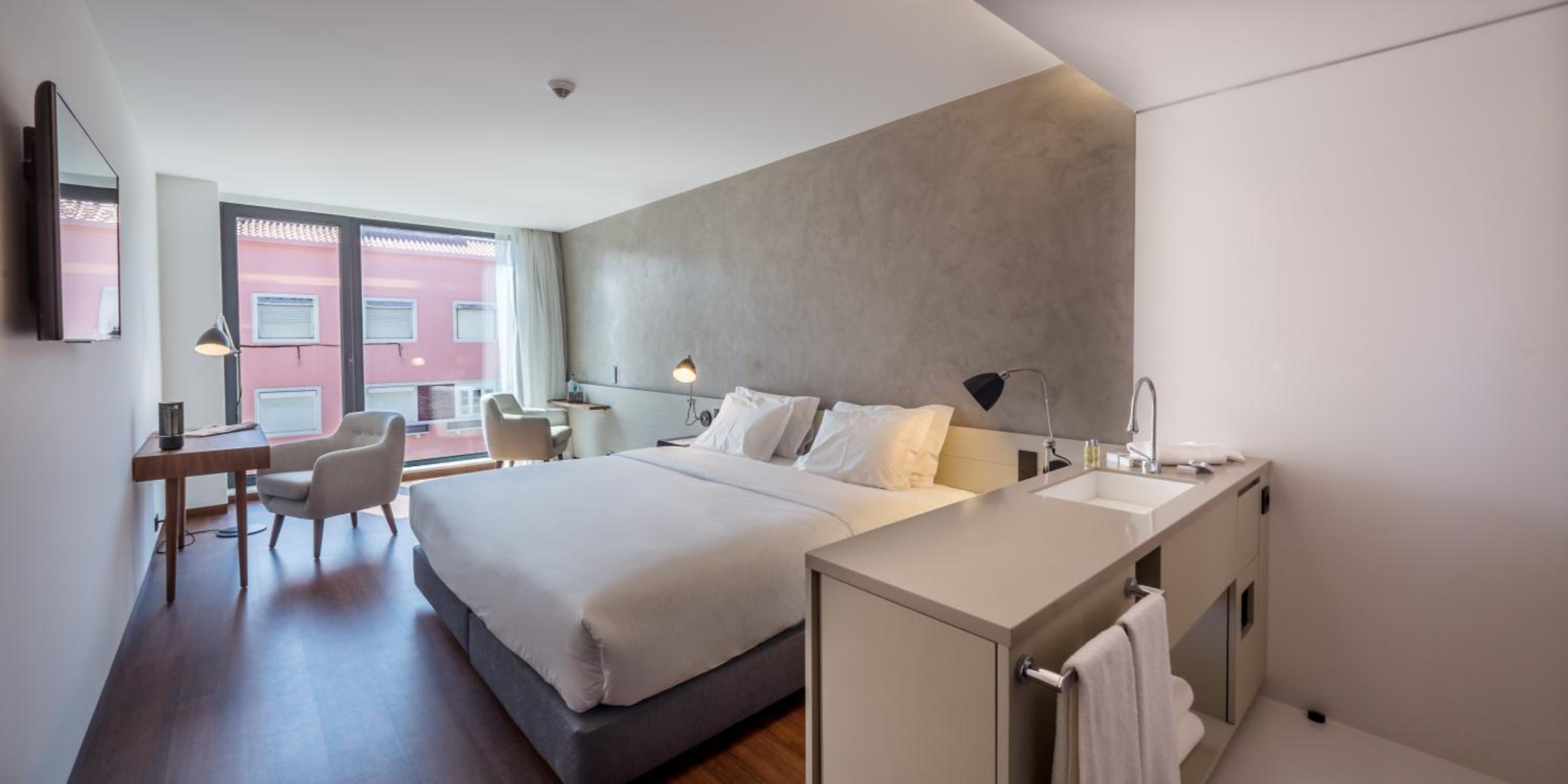 Indulge in the tranquility of the elegant soundproofed rooms at Lux Lisboa Park, featuring tasteful decor, plush amenities, and a cozy ambiance for a restful stay.