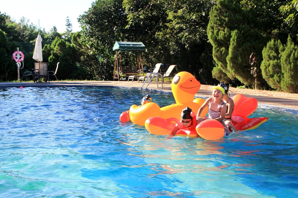 首先,他的停車場很大,車很好停。然後環境布置得相當好,因為他還有露營區,雖然露營區是屬於他們另外一個品牌,所以房客是無法進入的,但還是可以看到布置的一些燈具,感覺很好,然後旋轉木馬咖啡杯之類的小朋友玩一下也還是不錯的。比較特別是他有消夜,而且是 buffet,雖然菜色不多,但因為有鹽酥雞之類的還不錯,吃起來實在有點撐。客房的床是偏硬的,很好睡,缺點是冷氣有點太冷,我已經調到最小風量,且最高溫度還是偏冷,早餐的 buffet 其時跟前一晚的宵夜差不多,以消夜來看是很豐富,但以早餐來看就相當普通了。然後他們還有提供撞球檯和桌遊,這點很不錯。大致上算是不錯的住宿體驗