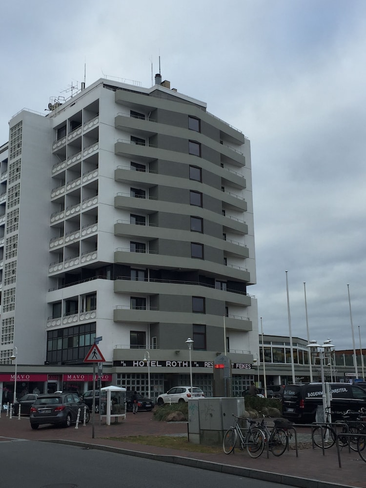 Hotel im nördlichsten Hochhaus am Strand von Westerland. Auf der Seeseite wunderschöner Ausblick auf das Meer. Aufmerksames Personal mit sehr guten Service. Da das Hotel wie das ganze Gebäude in die Jahre gekommen ist, wird im Winter schrittweise renoviert.