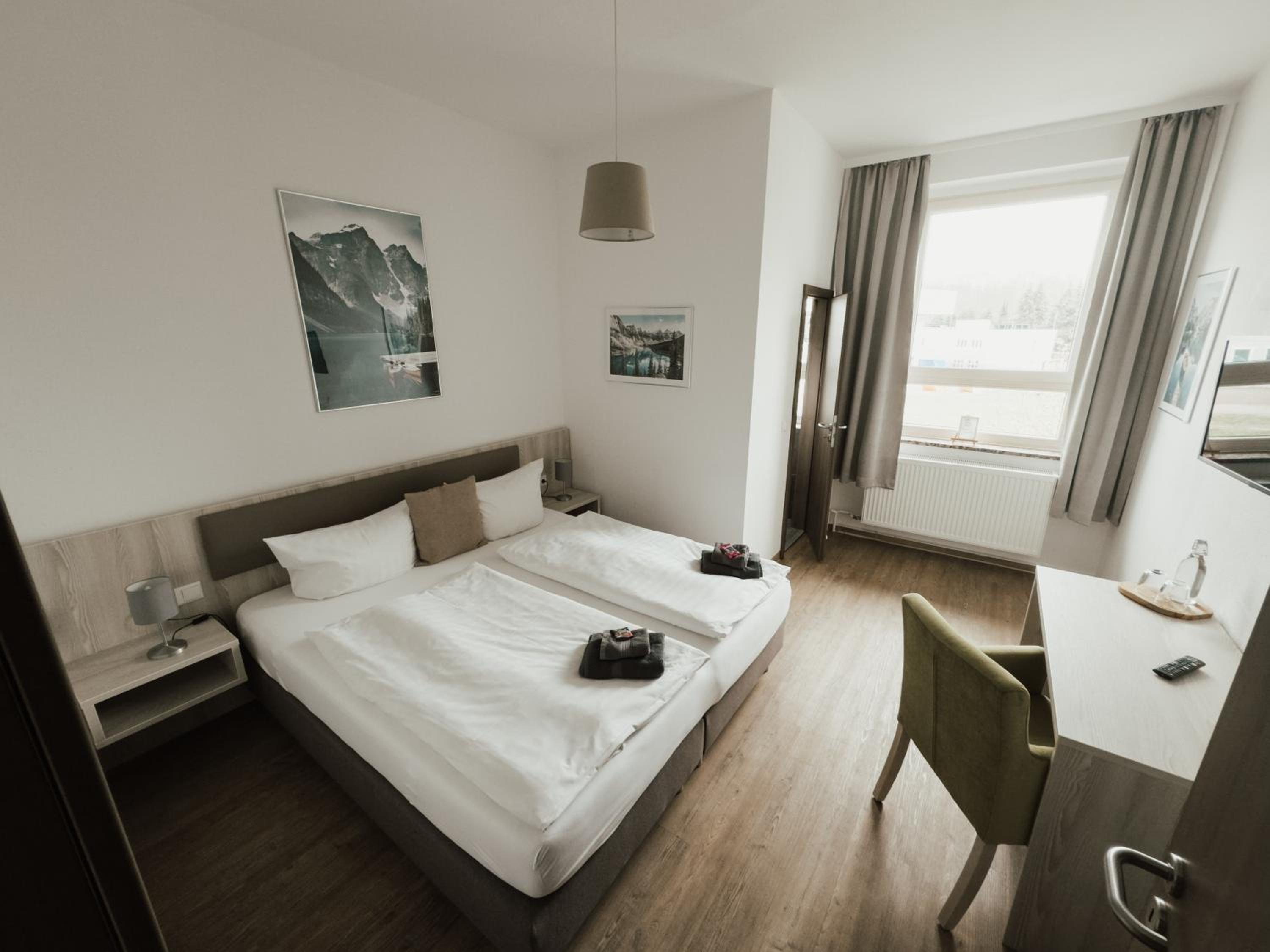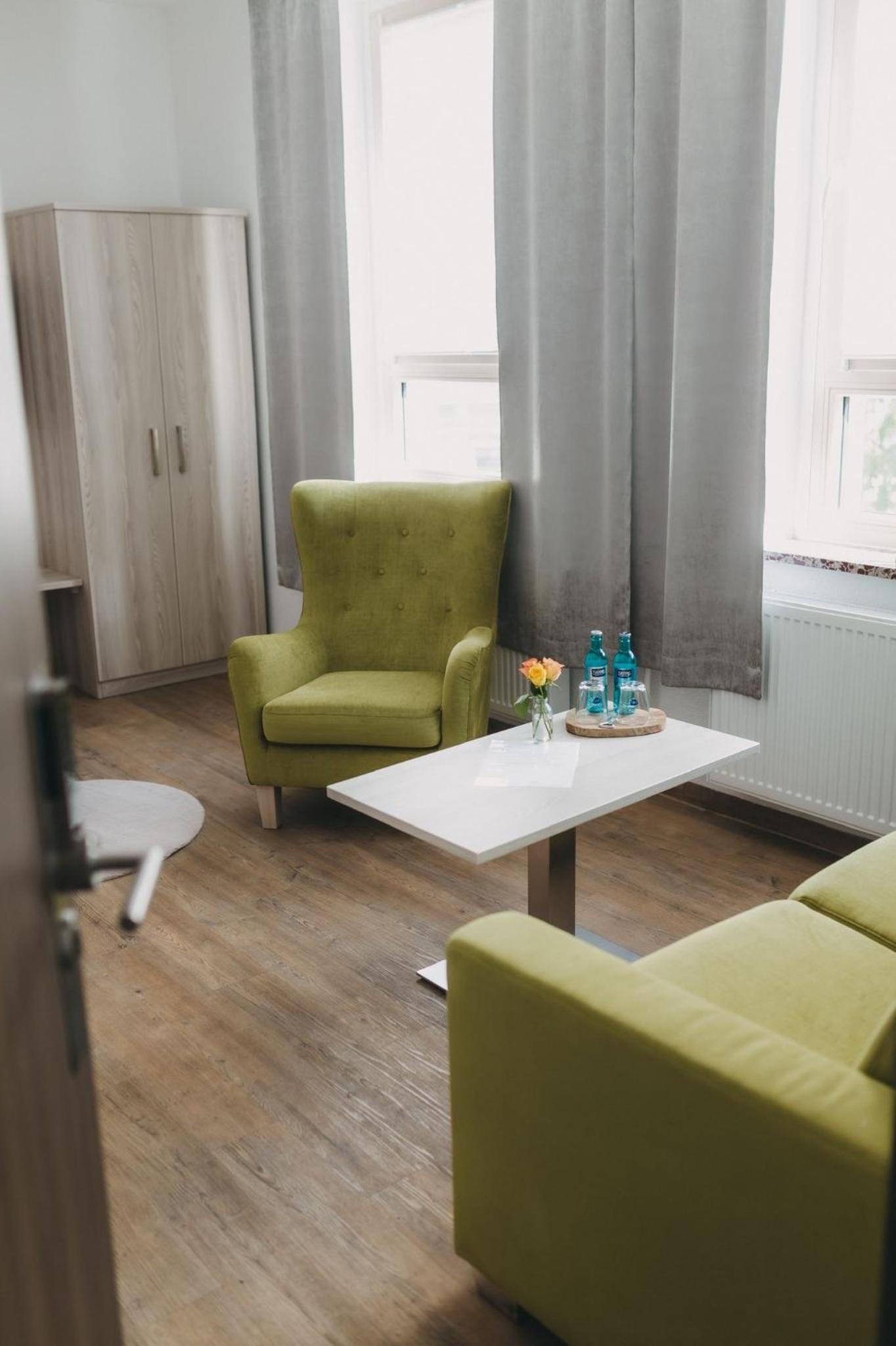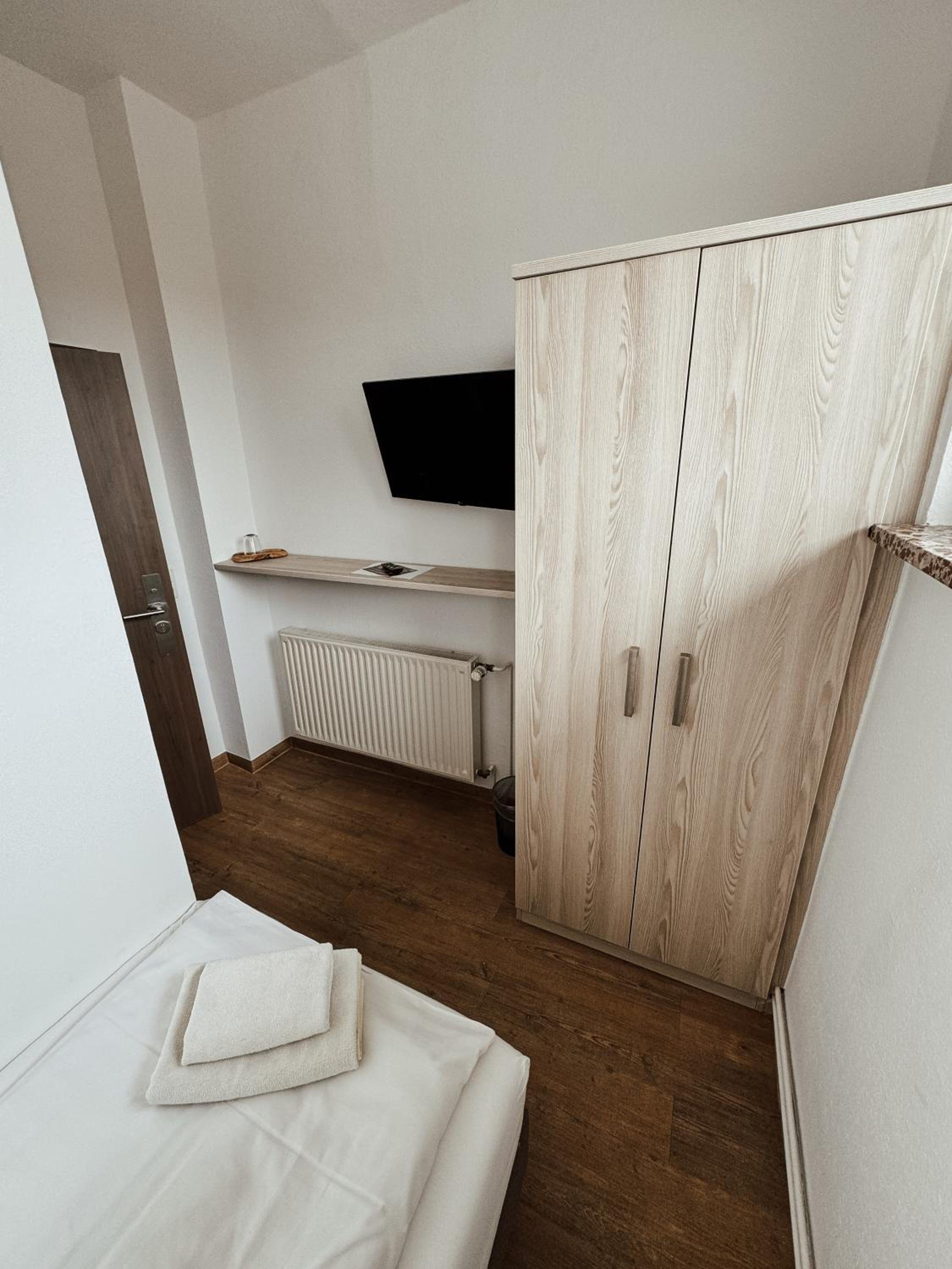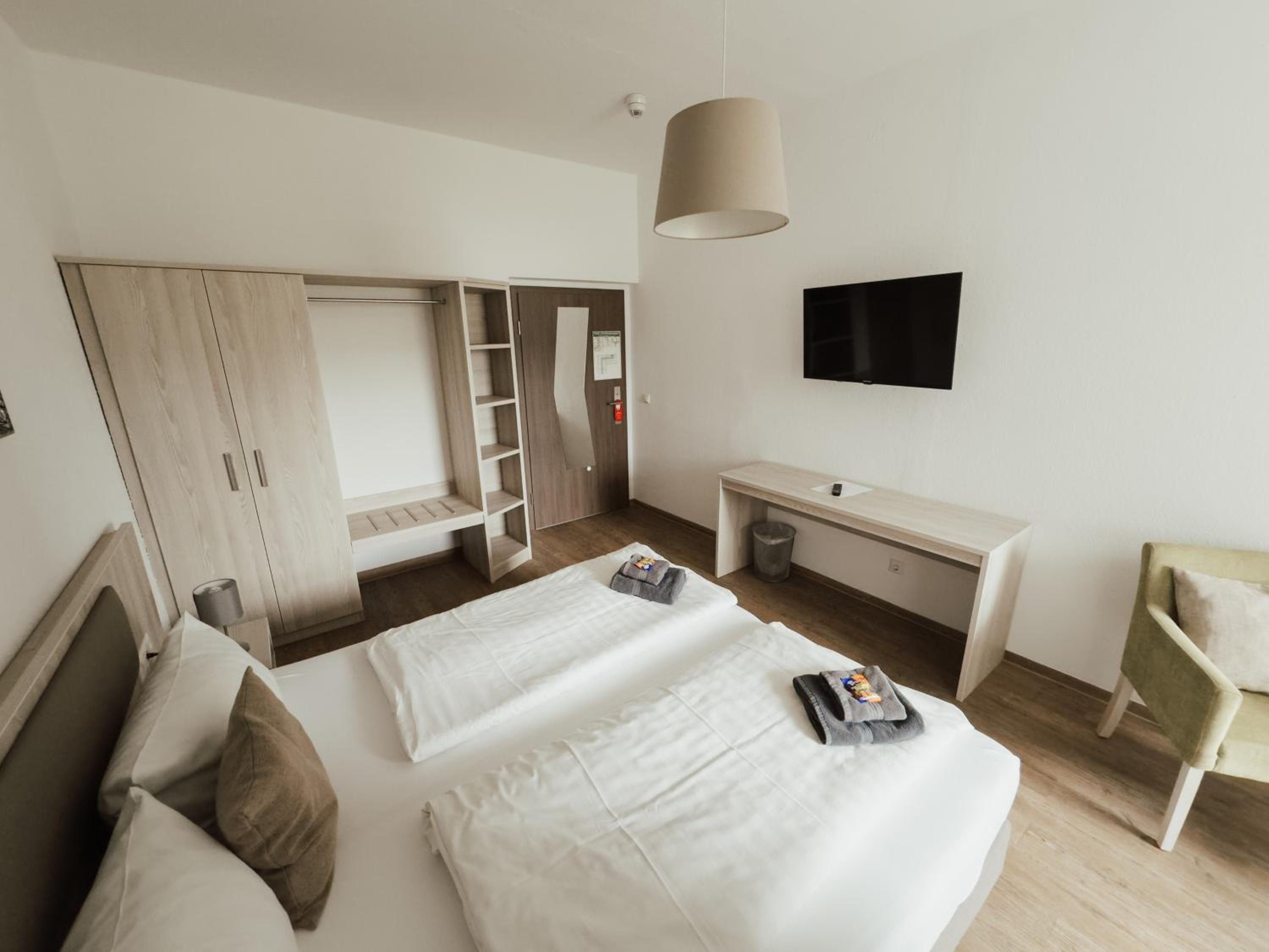 Spacious location with lots of nature and a big park, parking place for guests, friendly staff, luxurious room. Promising views on old center if Nordhausen.