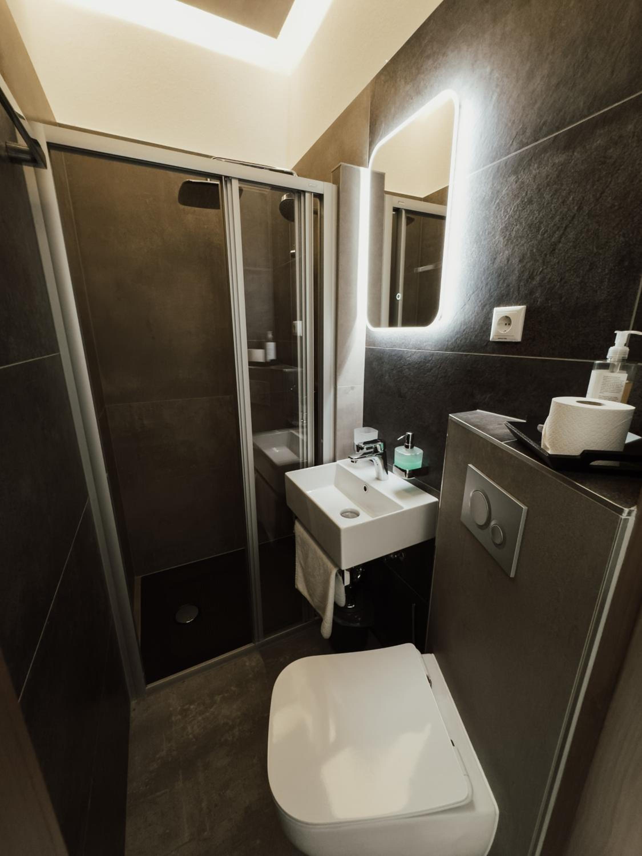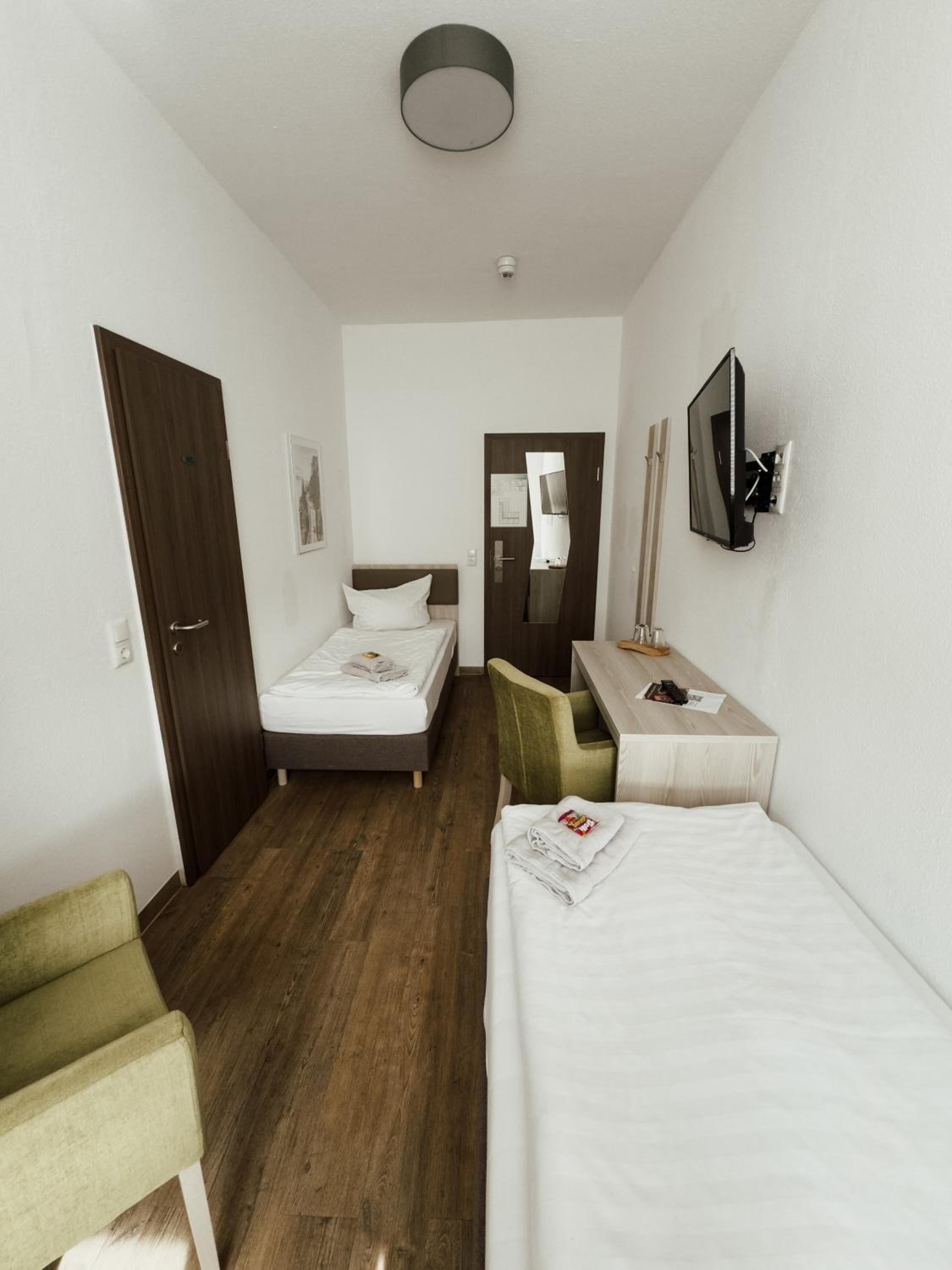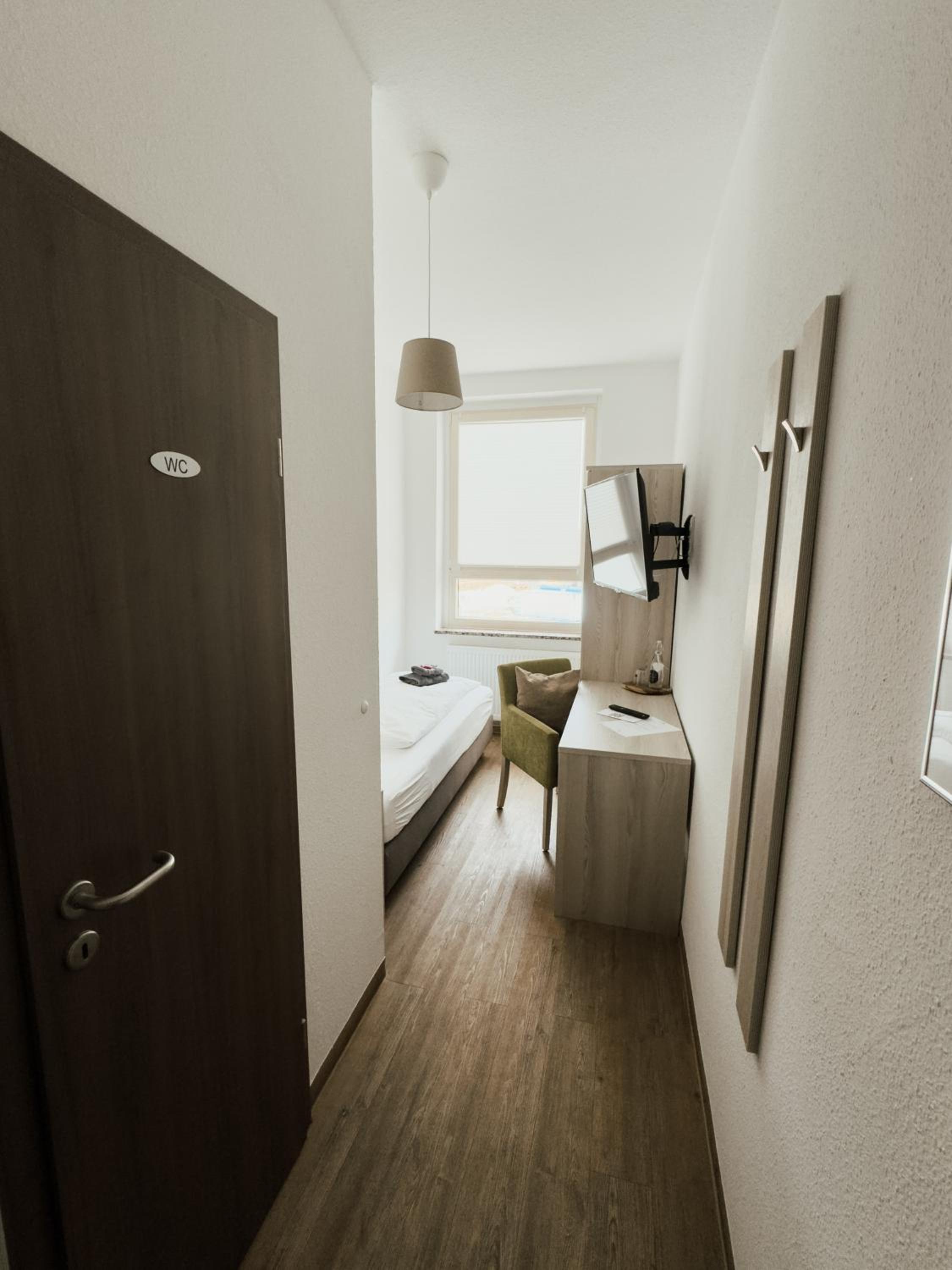 Schneller Check in bei der Ankunft, abends leichter Zugang per Code, gute Erreichbarkeit, genug Parkmöglichkeiten auf dem hauseigenen Parkplatz und auf der Straße vor dem Hotel, das Bett war sehr bequem, das Badezimmer war etwas eng, das Zimmer war sehr sauber.