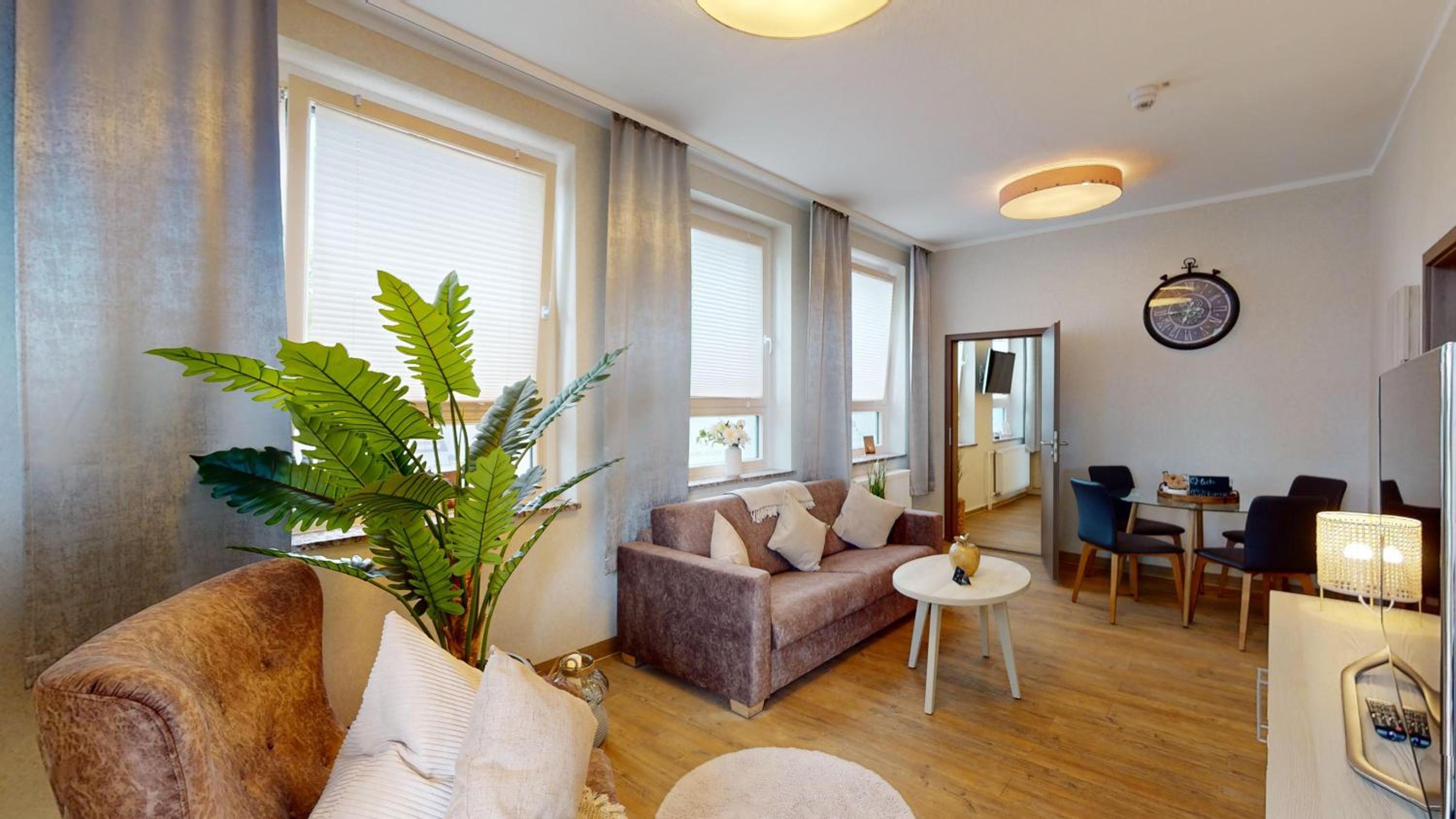 An sich gut, geräumig. Hatten ein Wohnzimmer und ein Schlafzimmer. Im Schlafzimmer der Fernseher ging nicht. Das Bad war direkt neben dem Schlafzimmer dort drinnen war sehr schlechte Luft. Jenes war aber wohl bekannt es wurde dennoch nichts gemacht. Es roch als ob jemand den ganzen Tag Kohl kocht. Sehr unangenehm..!