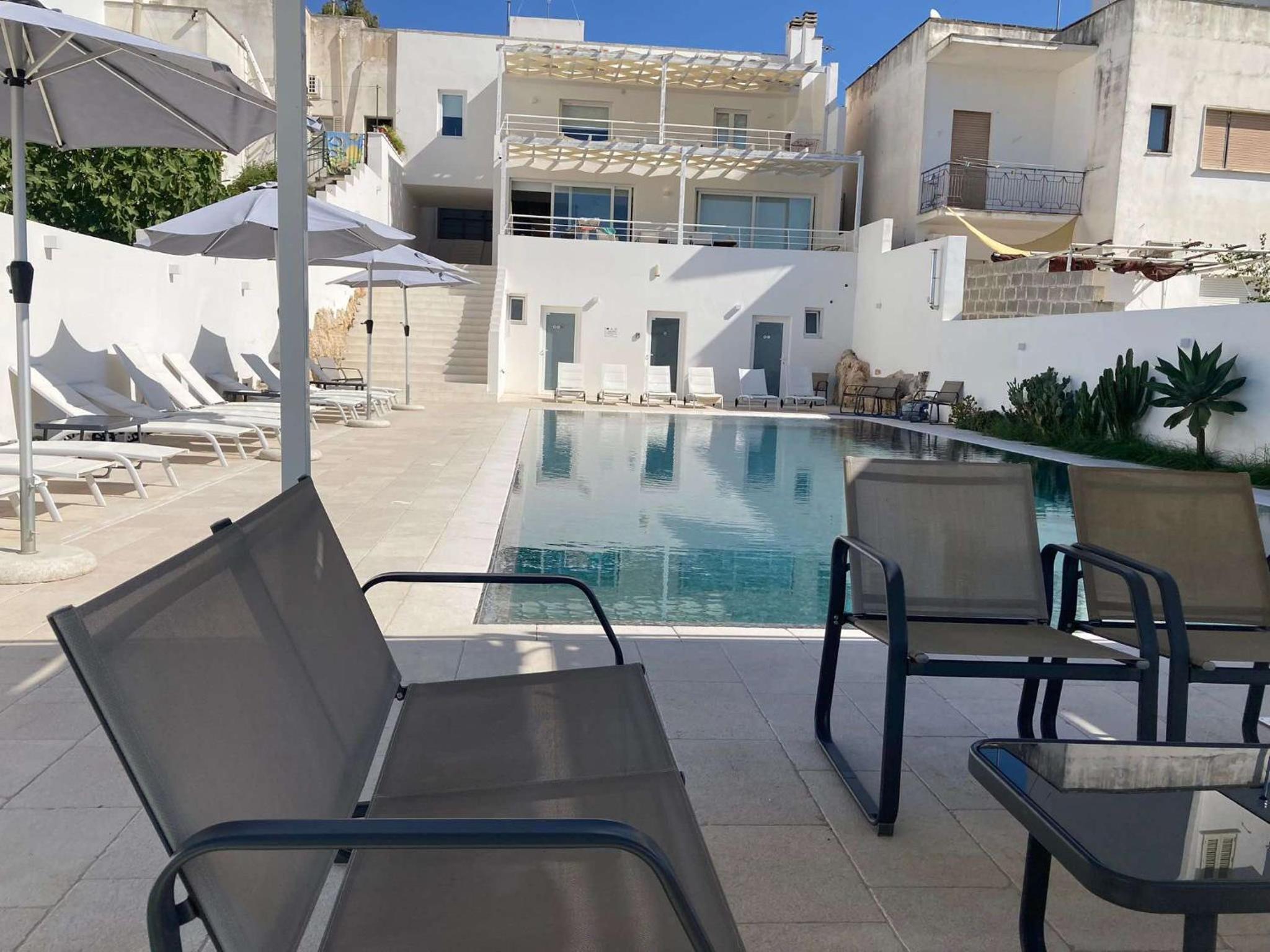 Nous avons été accueilli par Chiara. Merci à elle pour l'agréable surprise : nous avons été surclassé dans un grand appartement. L'appartement était très silencieux, très spacieux et très bien équipé. Il y a tout ce dont on a besoin. Chaque chambre comporte sa propre salle de bain. Cet appartement ancien très bien rénové a du caractère avec ses belles voûtes anciennes. Il y a une terrasse sur le toit avec une douche extérieure. La piscine est très belle et très agréable avec de l'hydromassage. On est pas loin des plages de Gallipoli . Chiara nous a donné plein de bons conseils pour les restaurants, plages... Elle est très disponible et très sympa, merci à elle !