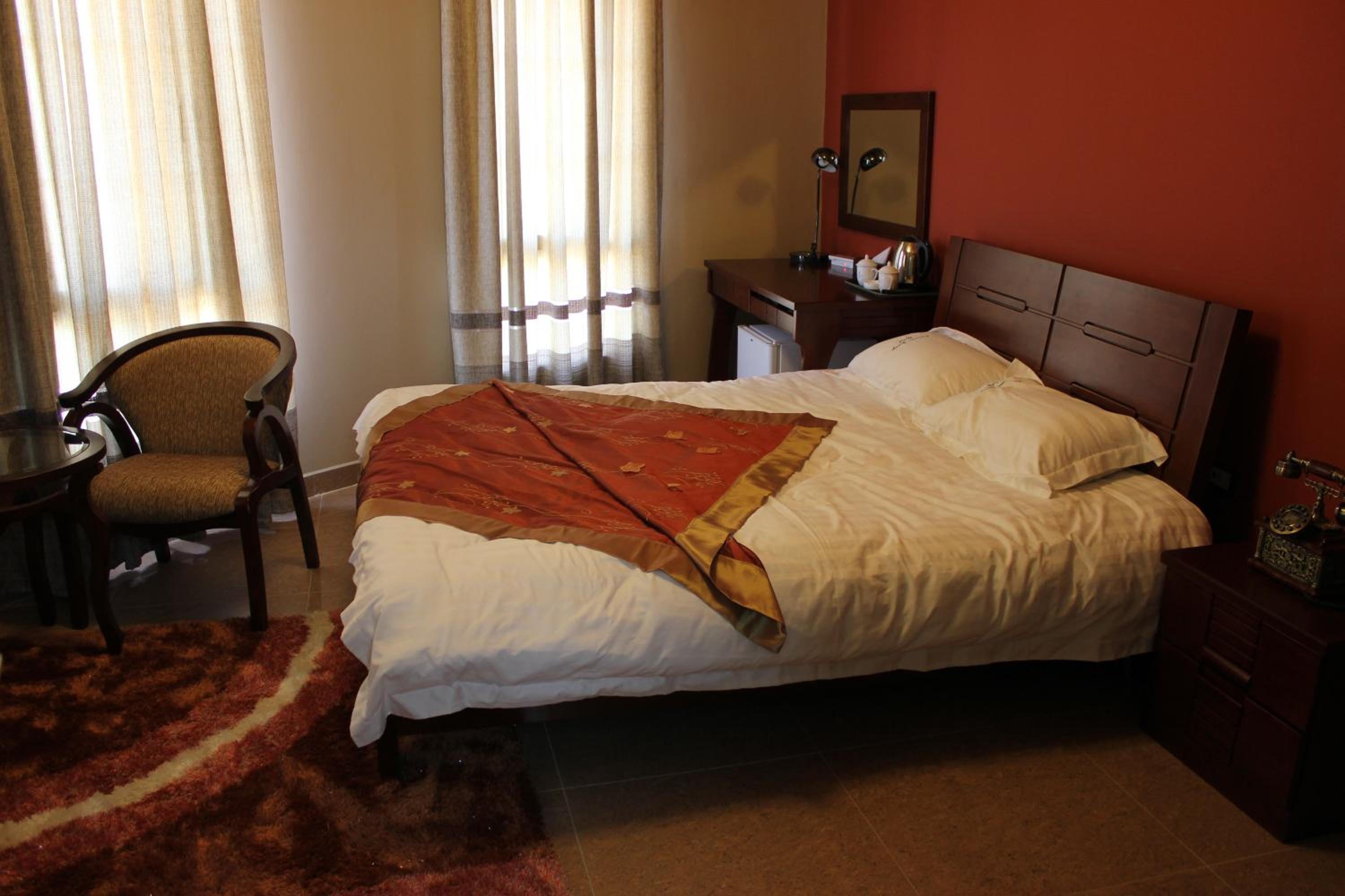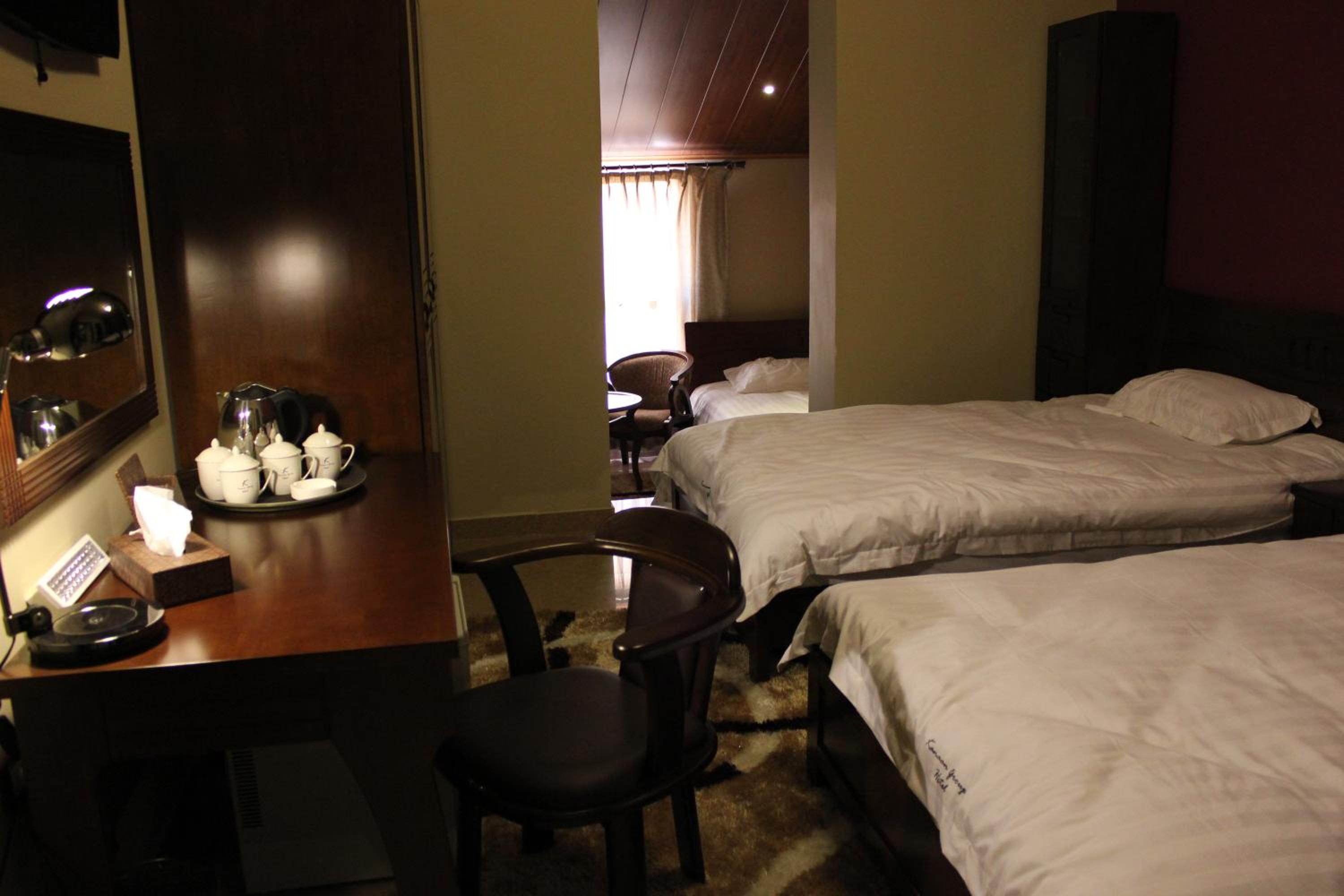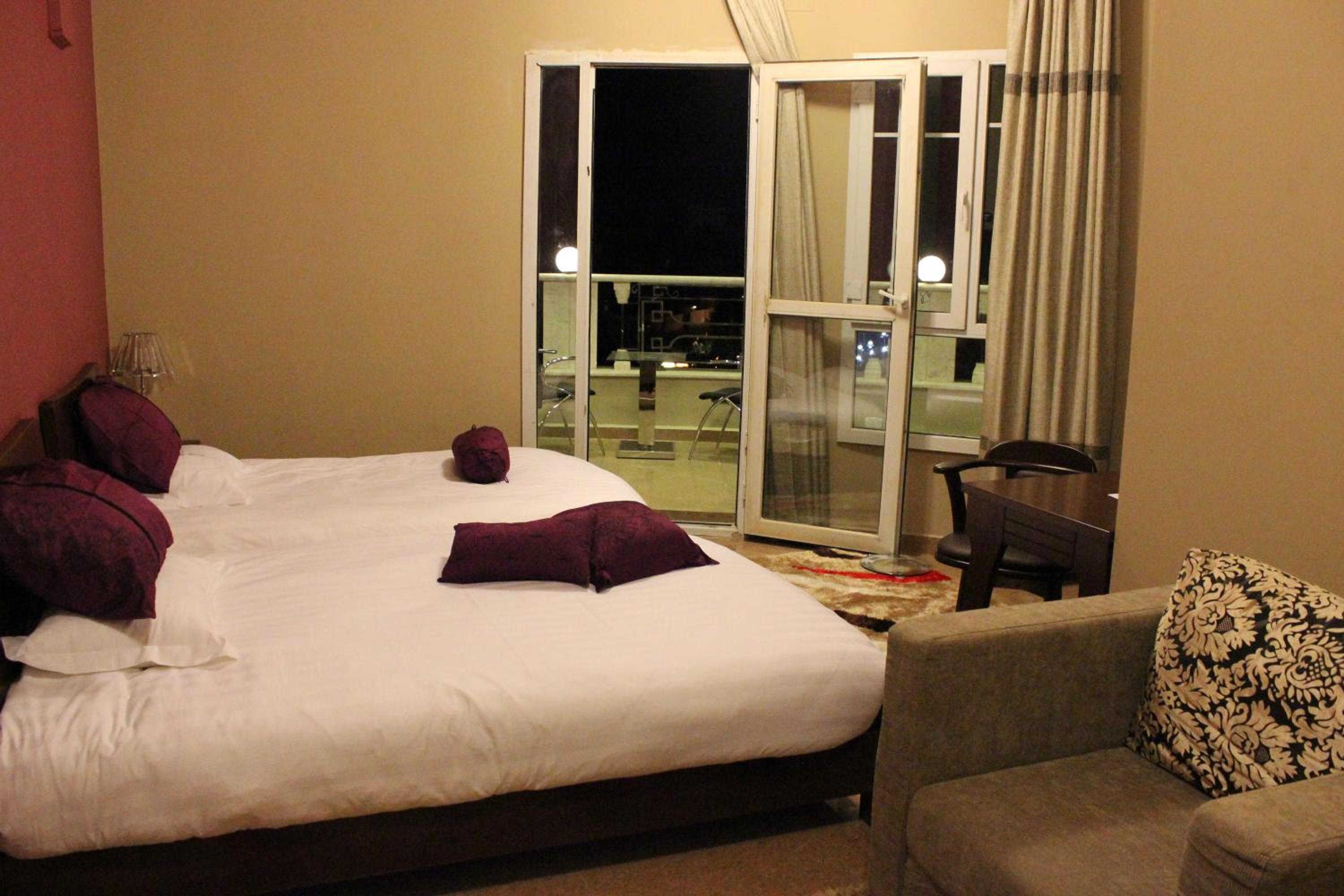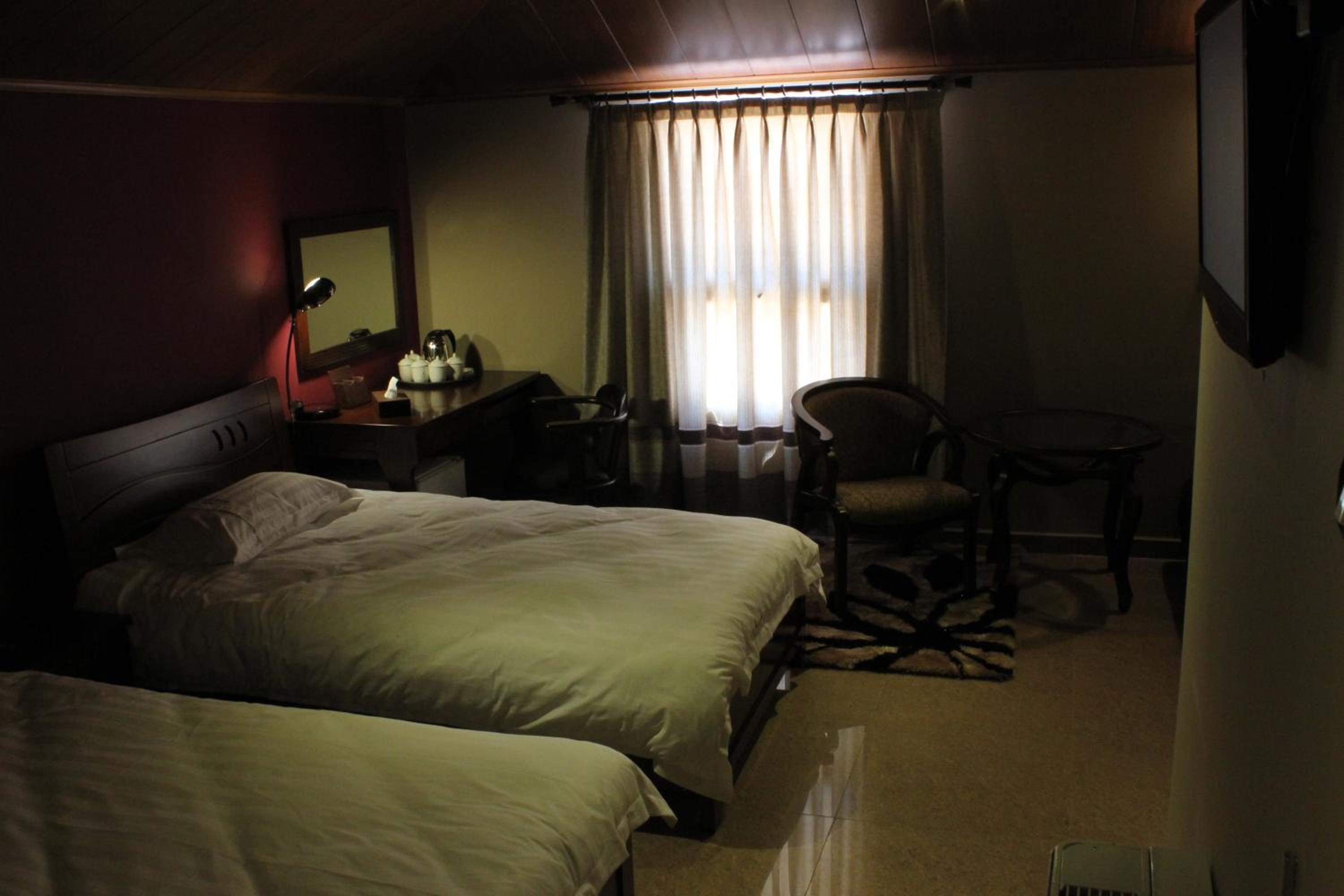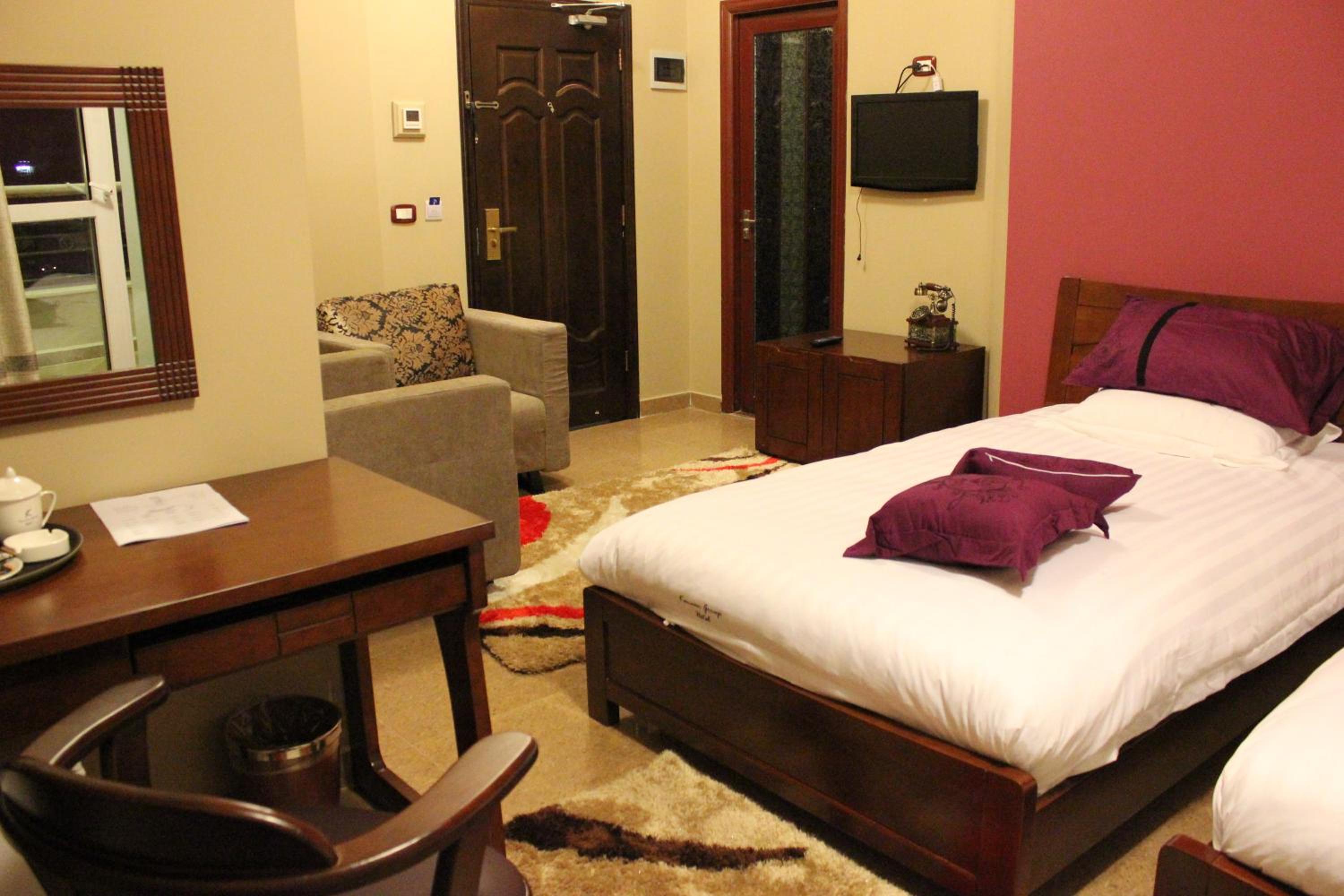 The hotel features air-conditioned rooms with free Wi-Fi, satellite TV, and elegant décor. Guests can enjoy the comfort of wooden furniture, warm colors, and tiled floors, with some rooms offering balconies with stunning mountain or city views.