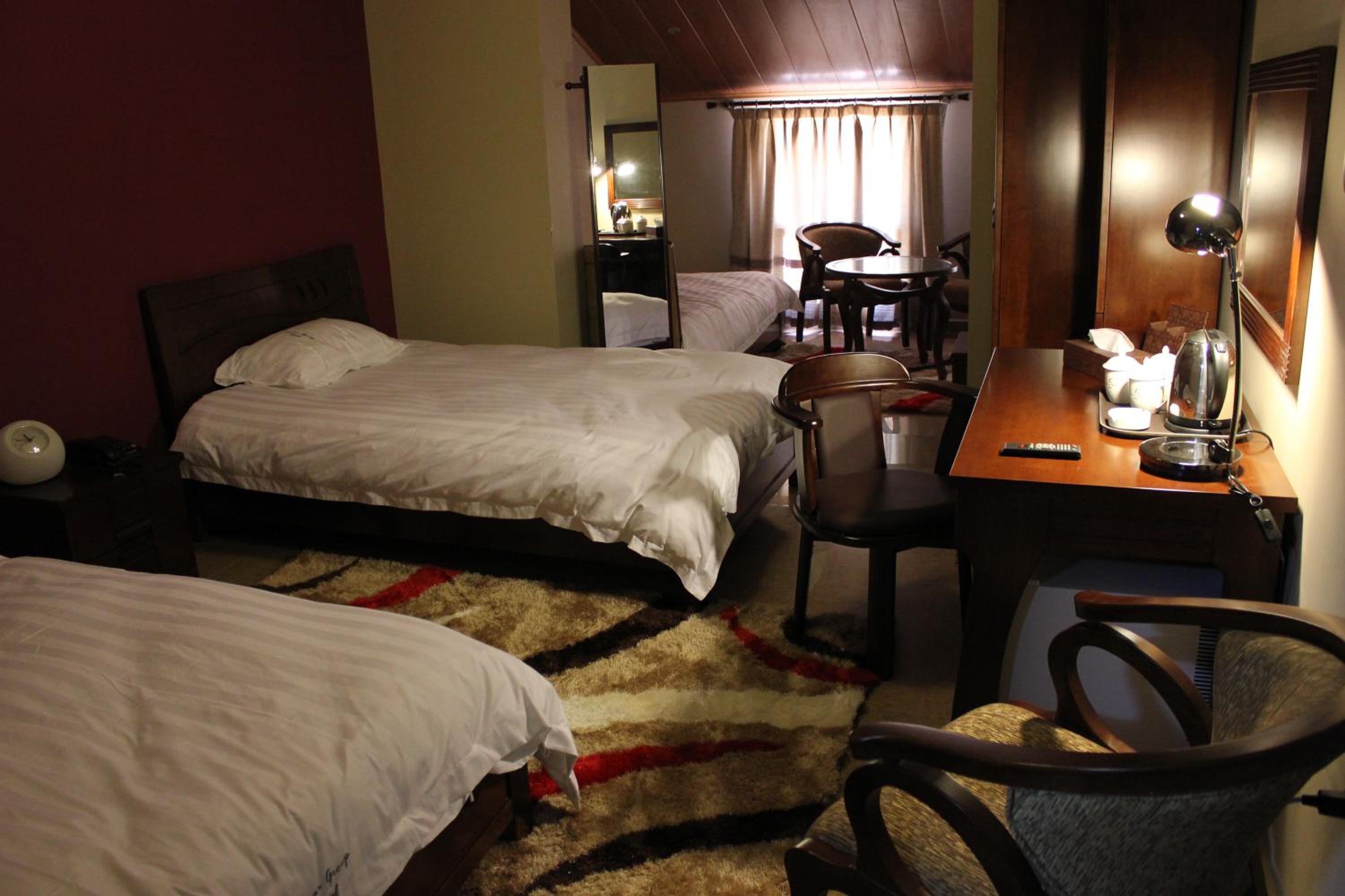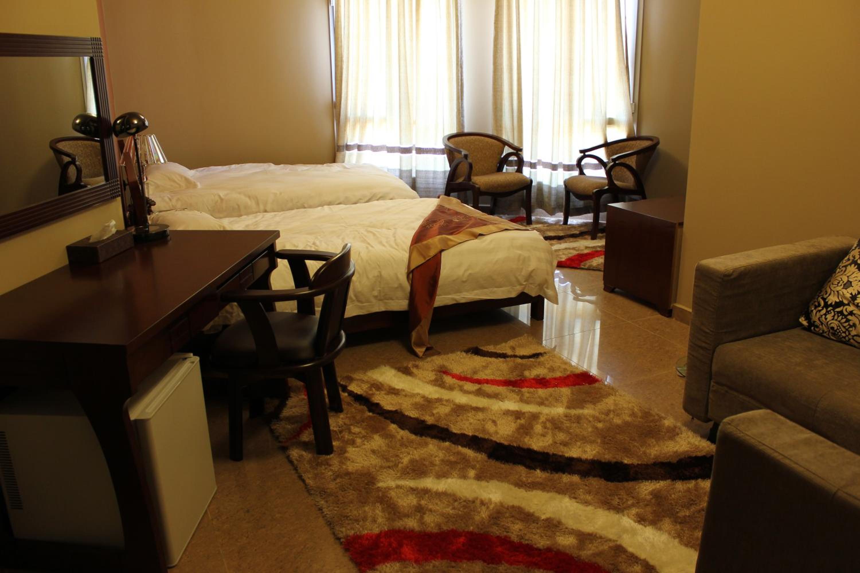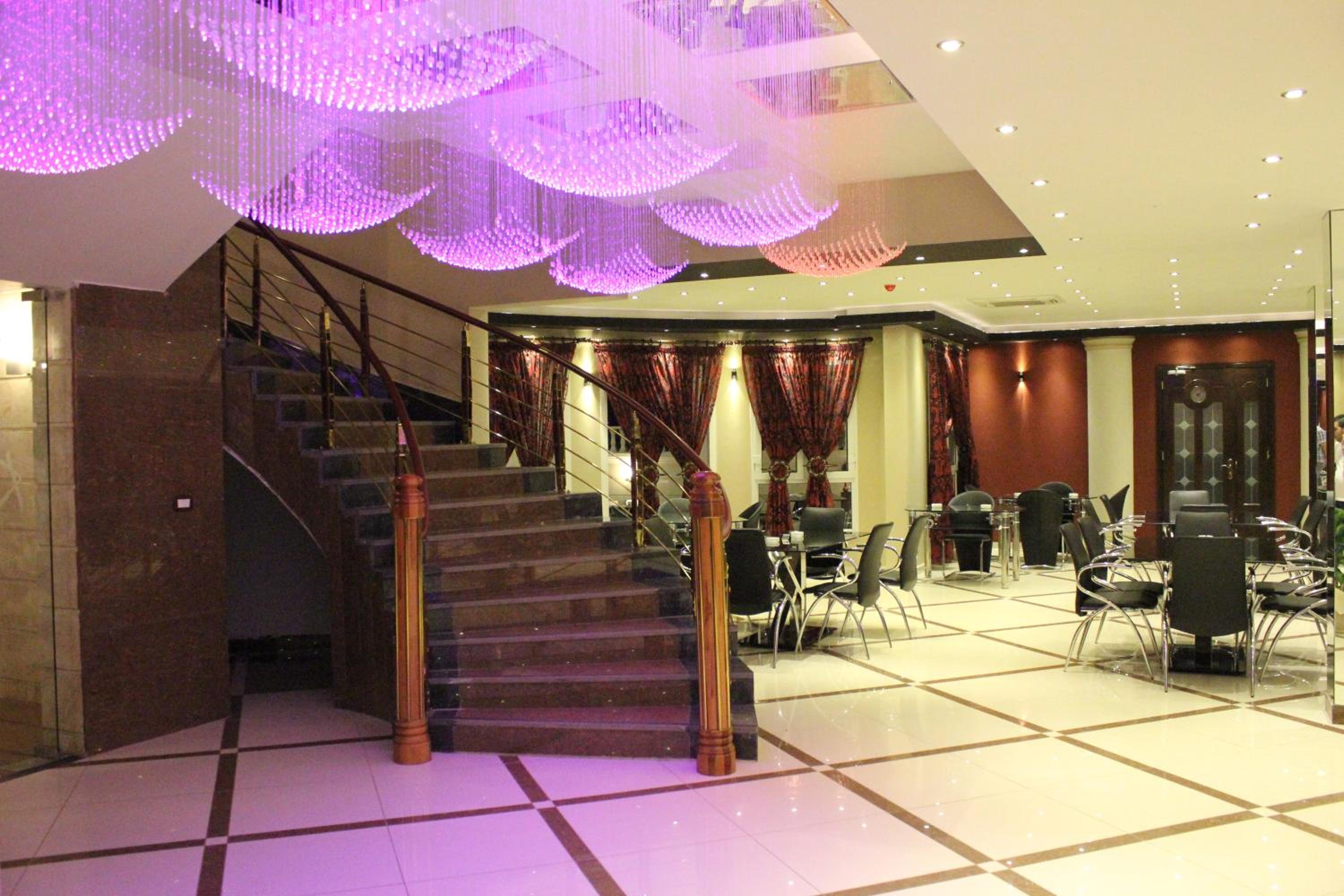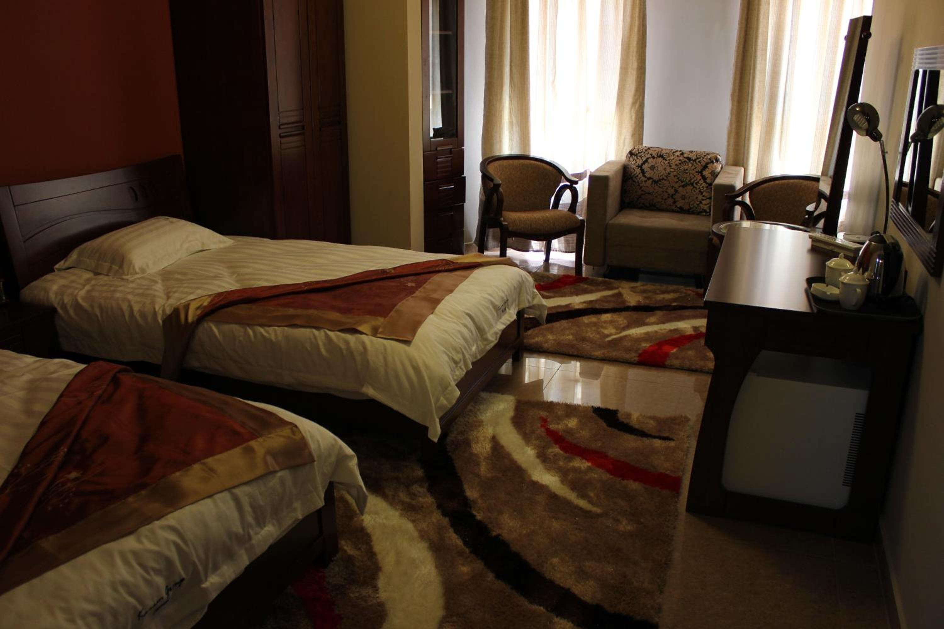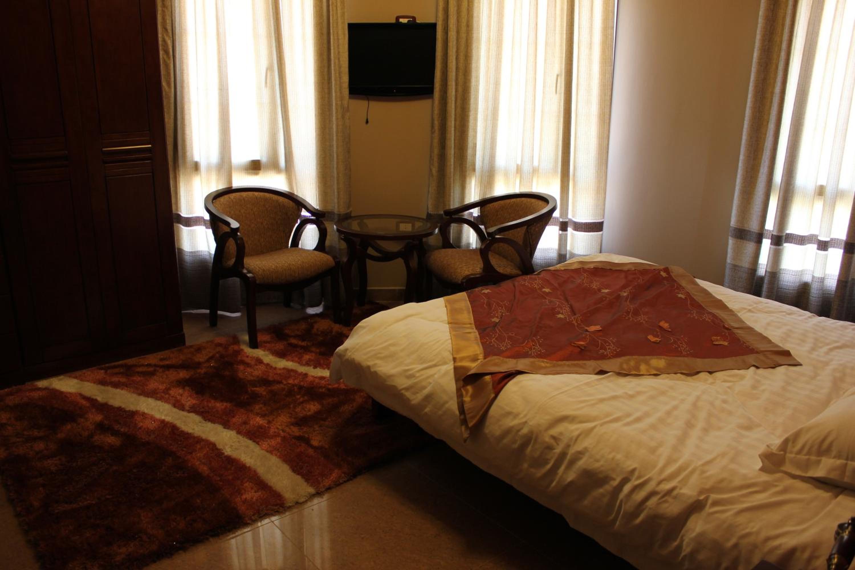 The hotel features air-conditioned rooms with free Wi-Fi, satellite TV, and elegant décor. Guests can enjoy the comfort of wooden furniture, warm colors, and tiled floors, with some rooms offering balconies with stunning mountain or city views.