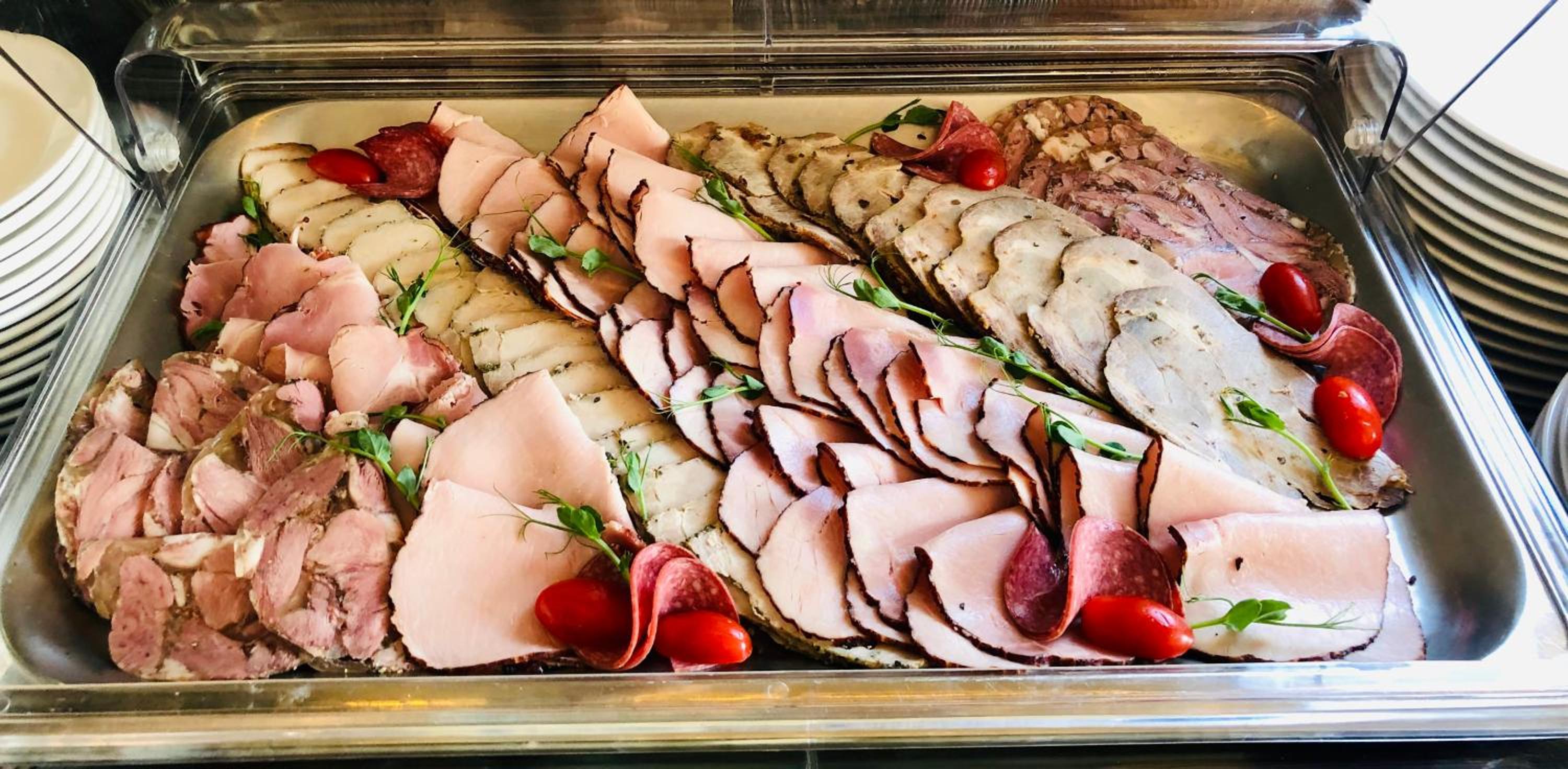 Das Frühstücksbuffet war sehr reichhaltig, abwechslungsreich und stets ausreichend. Es gab eine große Auswahl an warmen und kalten Speisen, darunter Rührei, Würstchen, Salate, Aufschnitt, Joghurt, Müsli, Säfte und verschiedene heiße Getränke. Auch Gebäck wie Schokocroissants wurde regelmäßig angeboten und das Buffet immer wieder variiert.