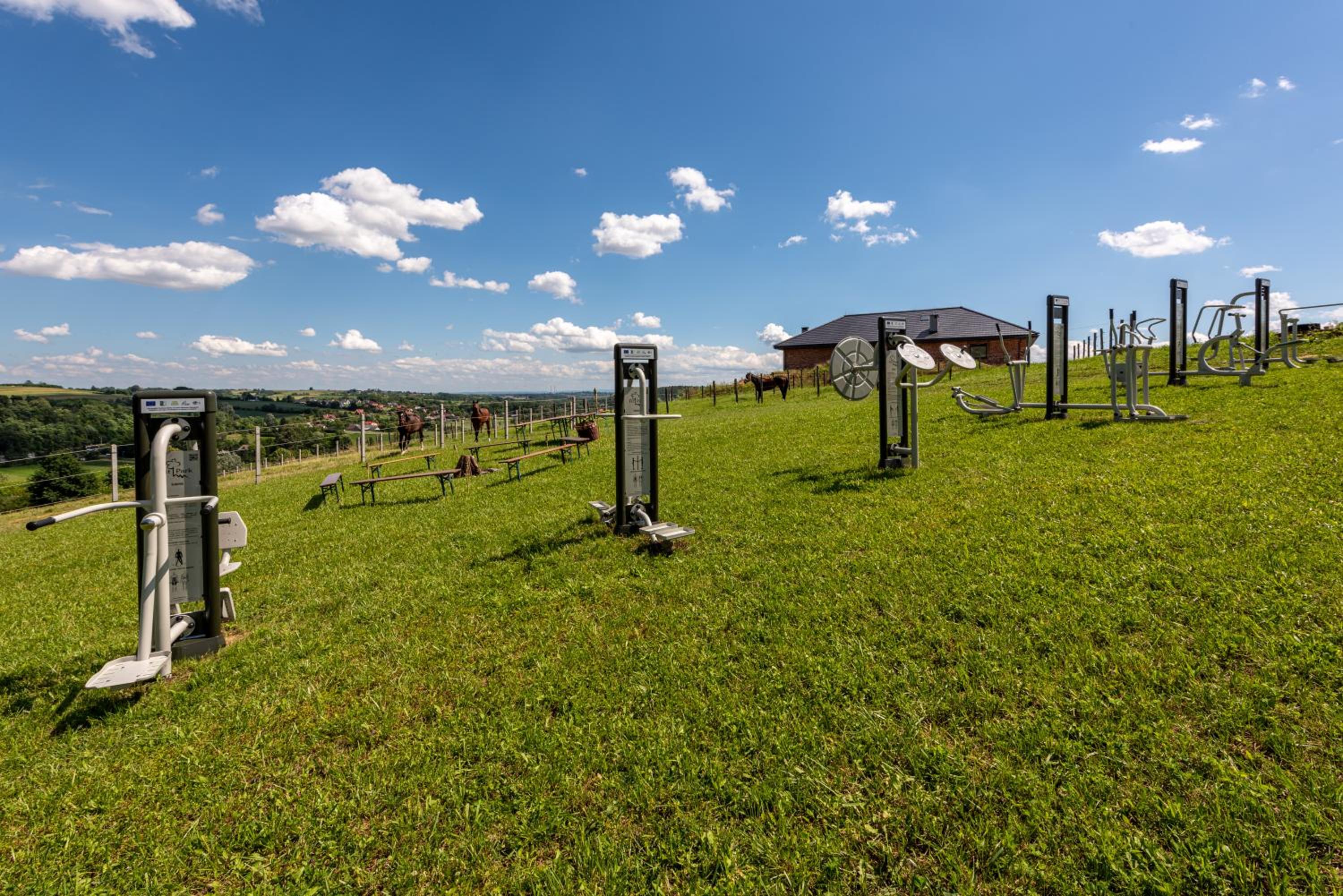 Auch ohne selbst mit Kindern angereist zu sein, haben wir viele Angebote für Familien gesehen. Es gibt einen geschützten Indoor-Spielbereich mit Matten sowie einen großen Outdoor-Spielplatz hinter dem Hotel mit Schaukeln und weiteren Spielgeräten. Zudem gehören Pferdeställe zum Hotel, was besonders für pferdebegeisterte Kinder ein echtes Highlight ist.