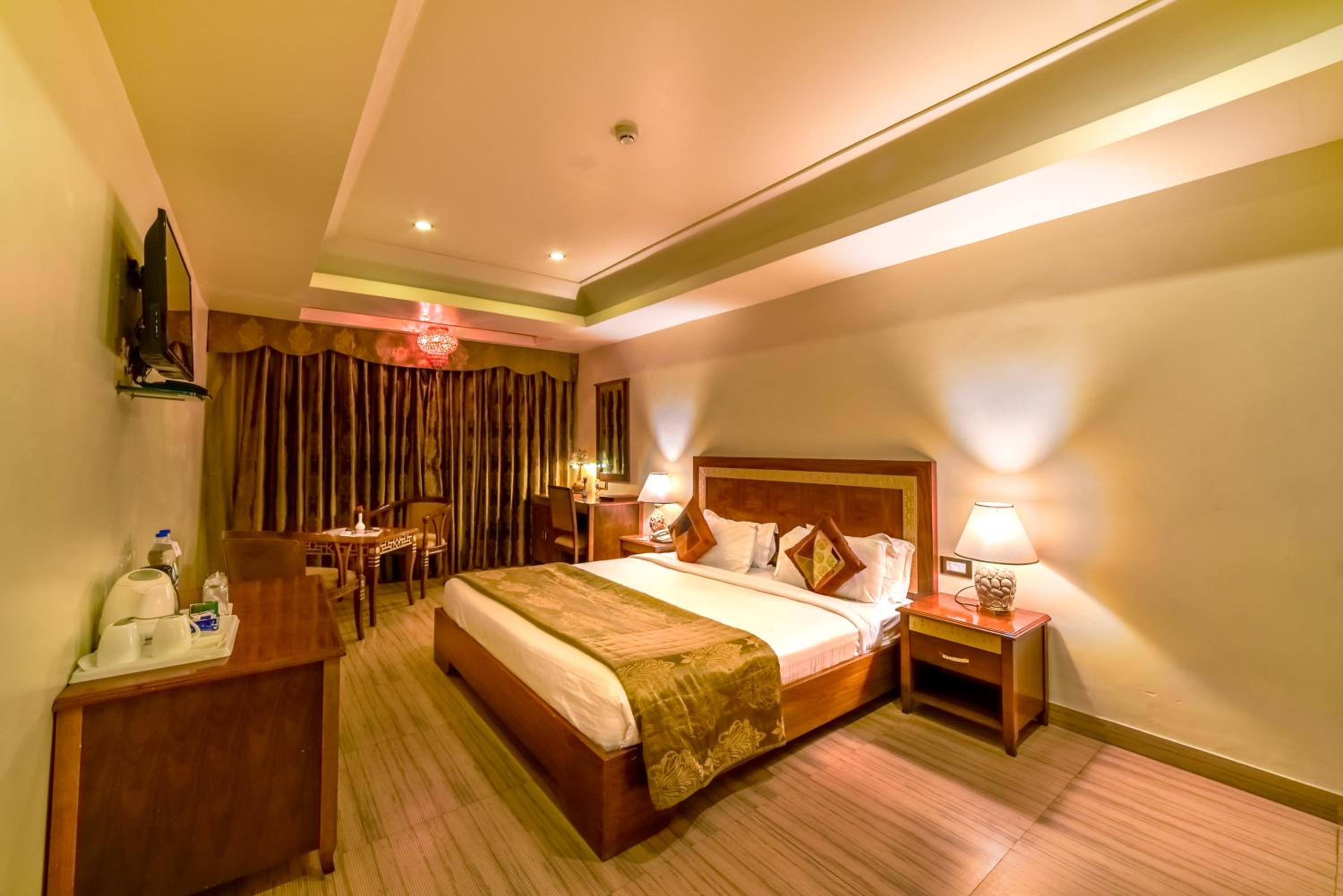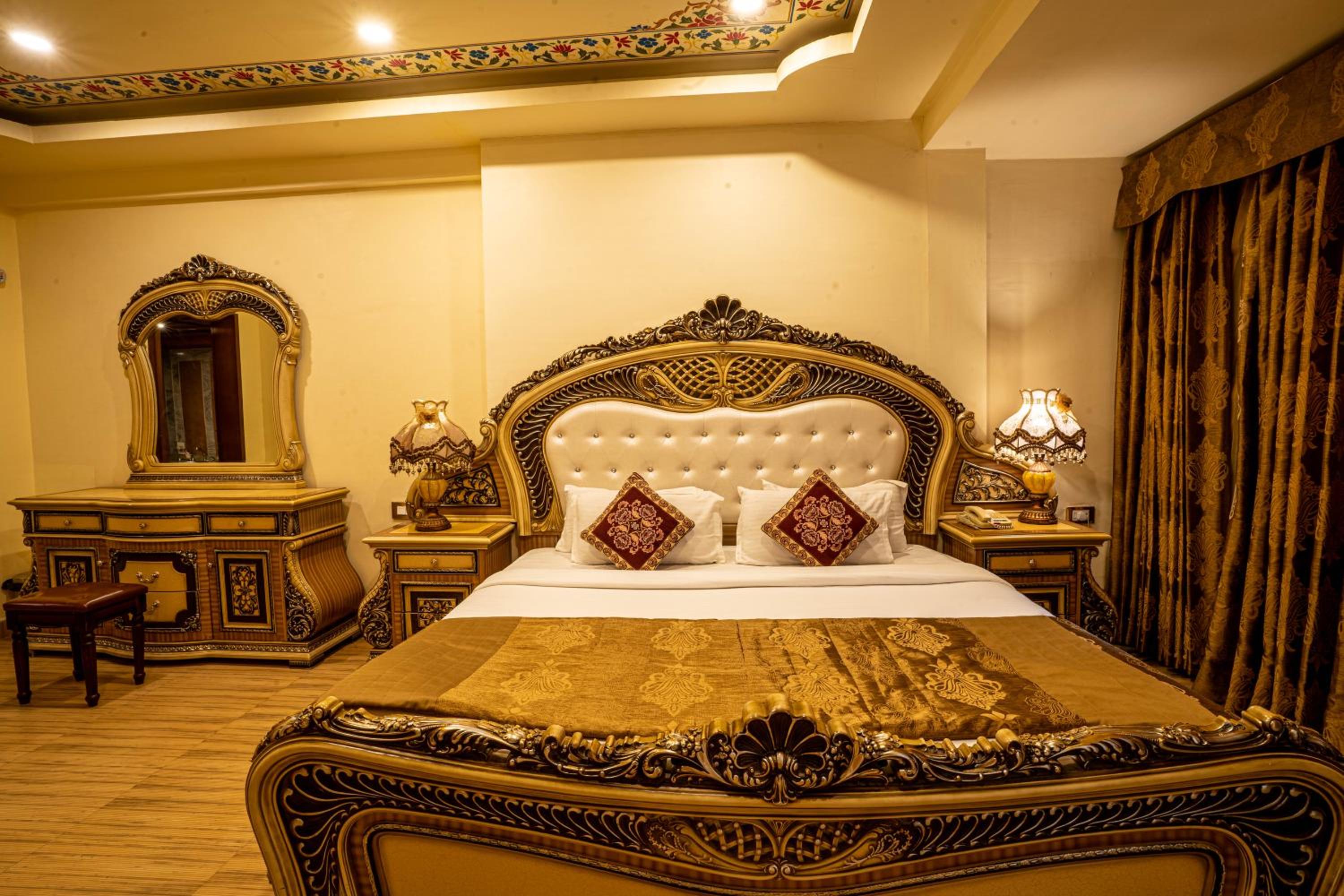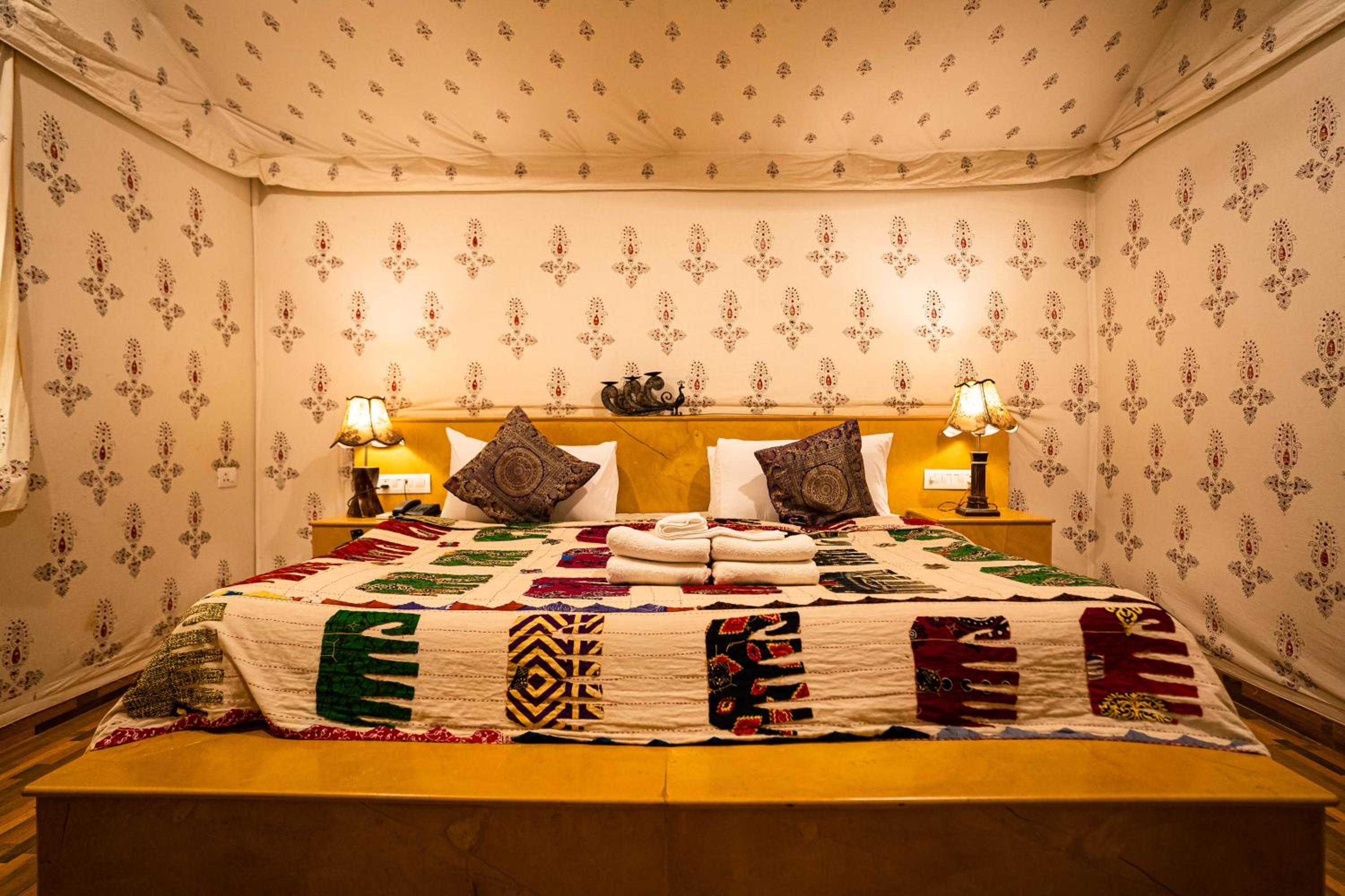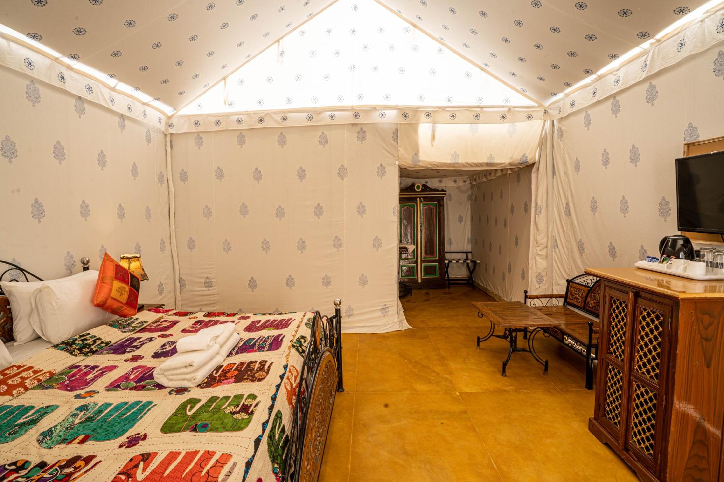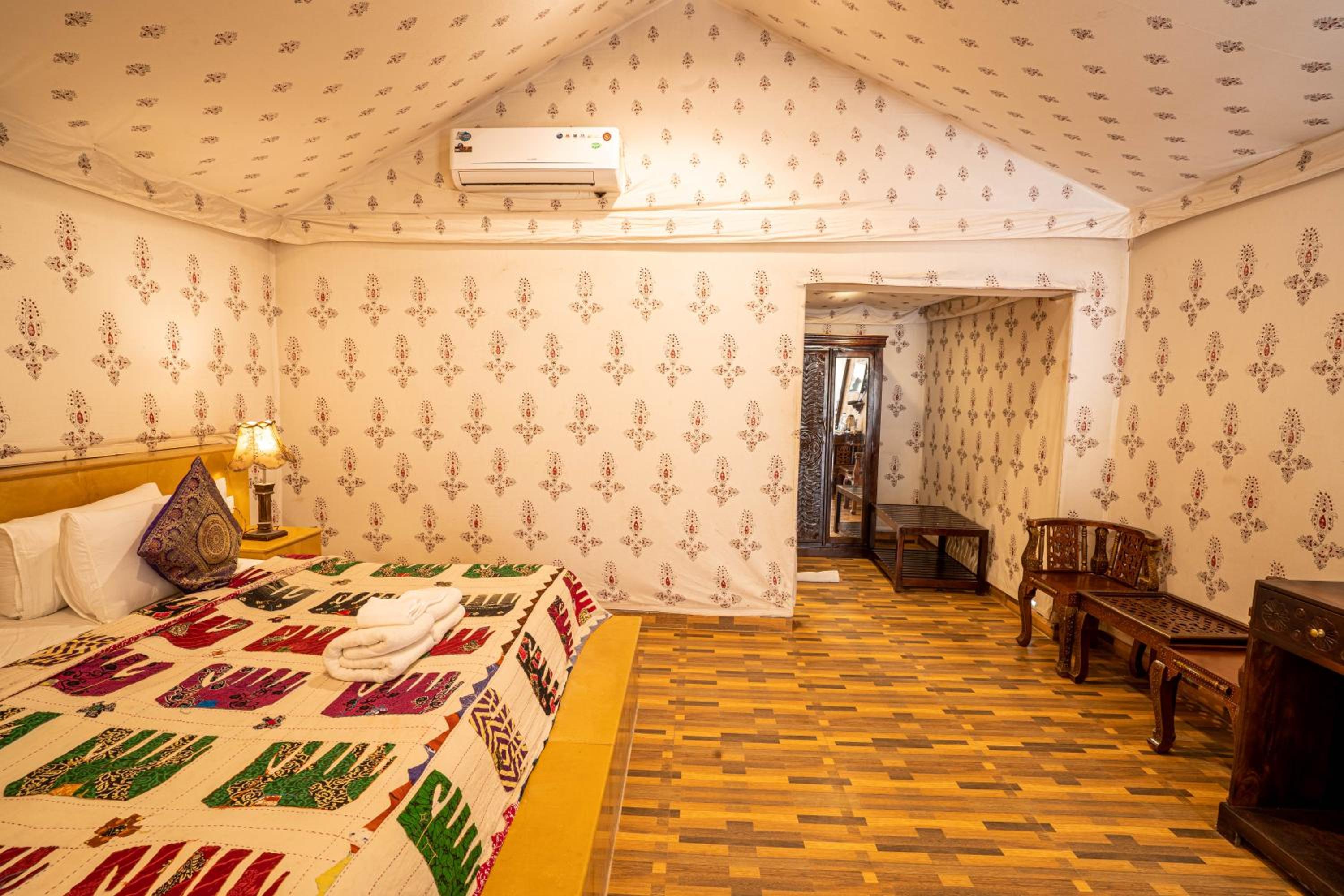 Experience the charm of spacious traditional rooms at Chokhi Dhani Palace Hotel, equipped with modern conveniences like free wired internet, cable TV, and 24-hour room service.