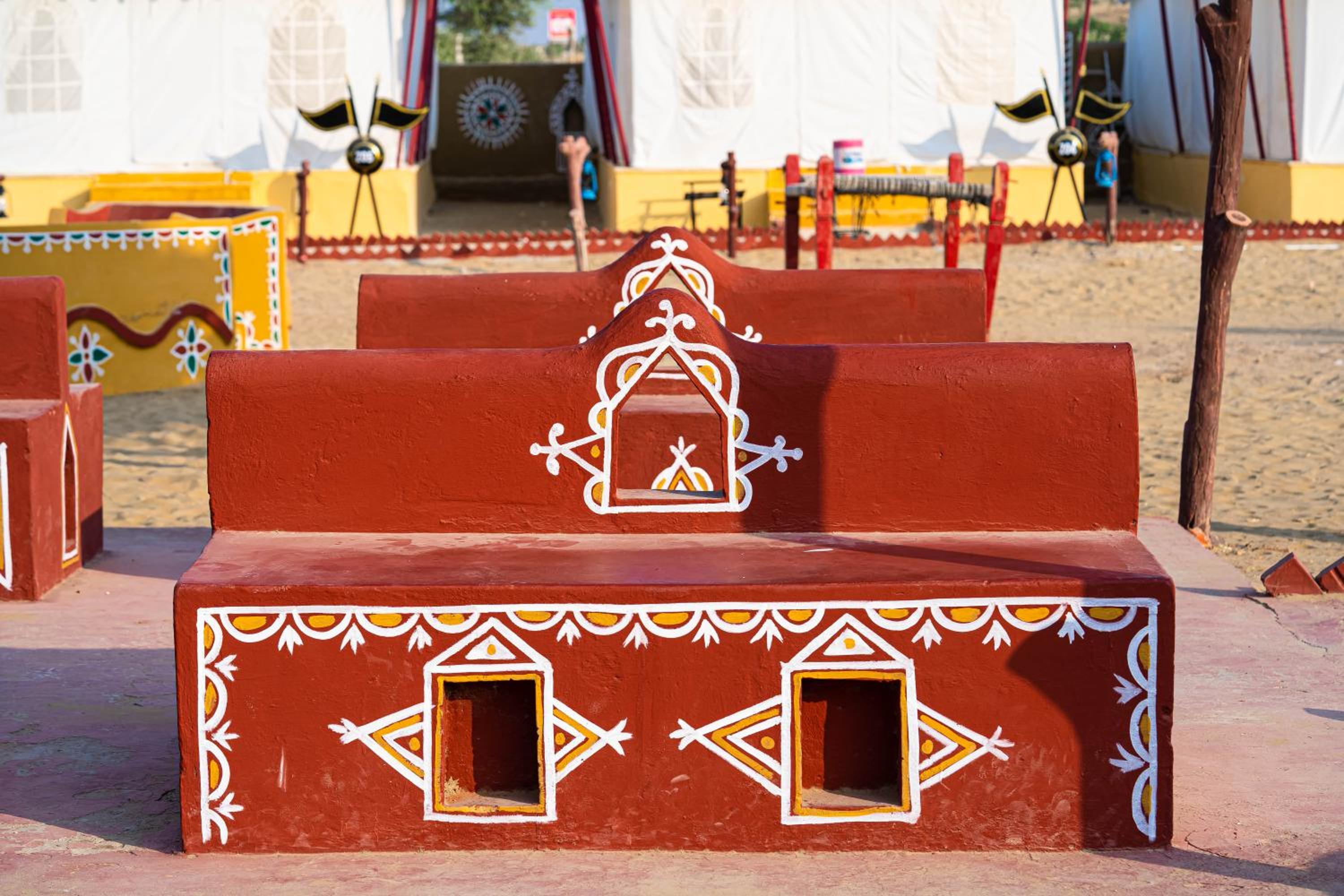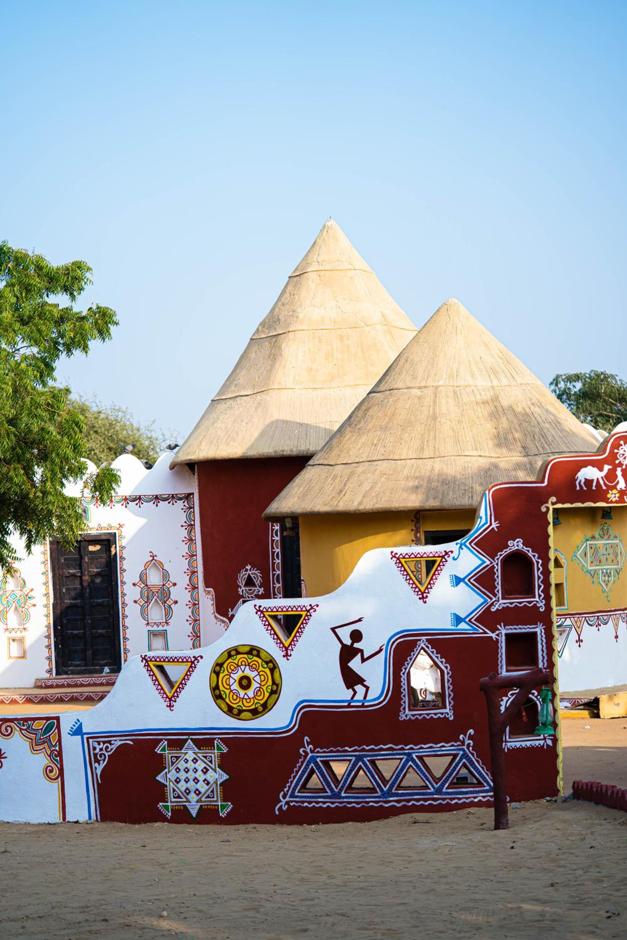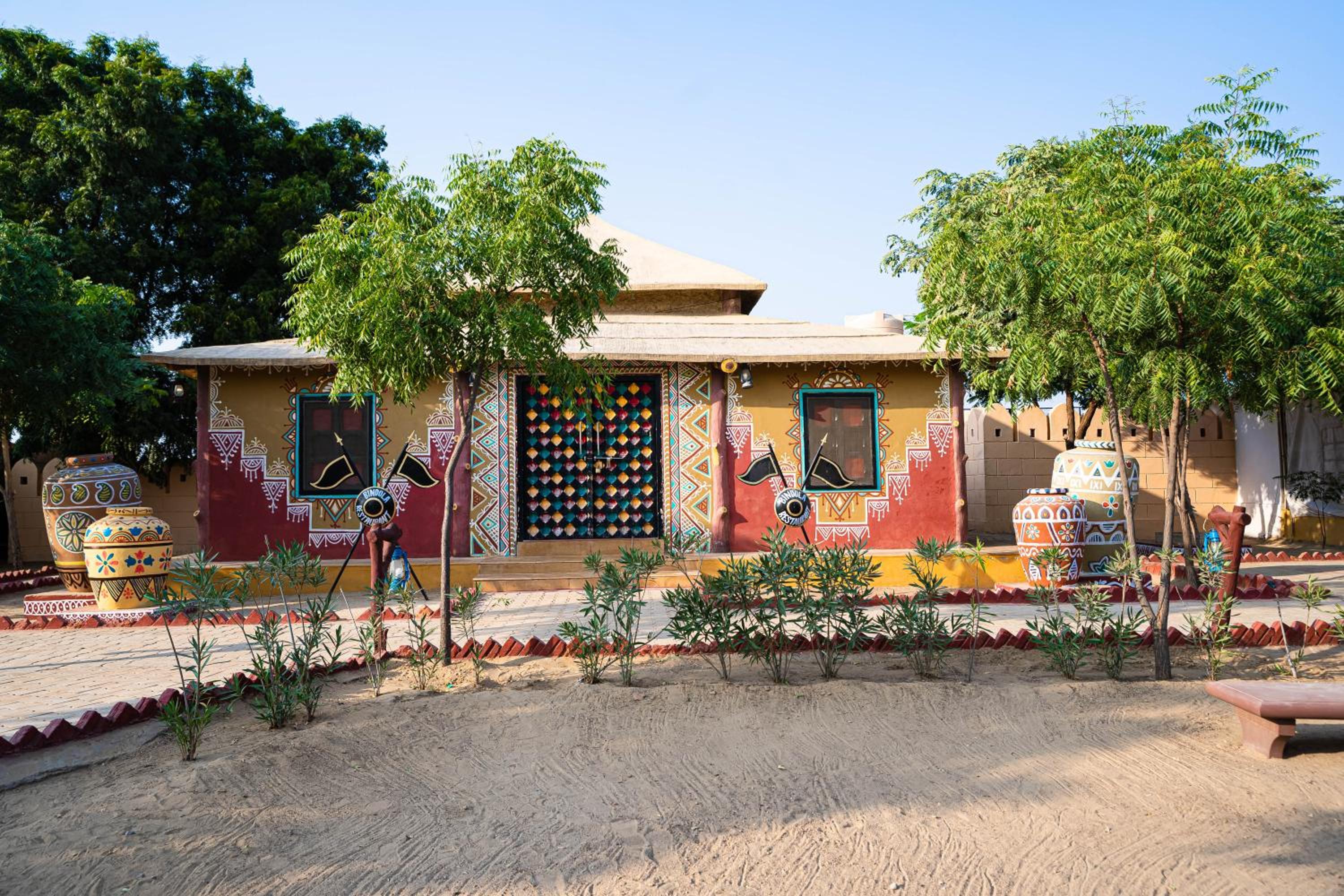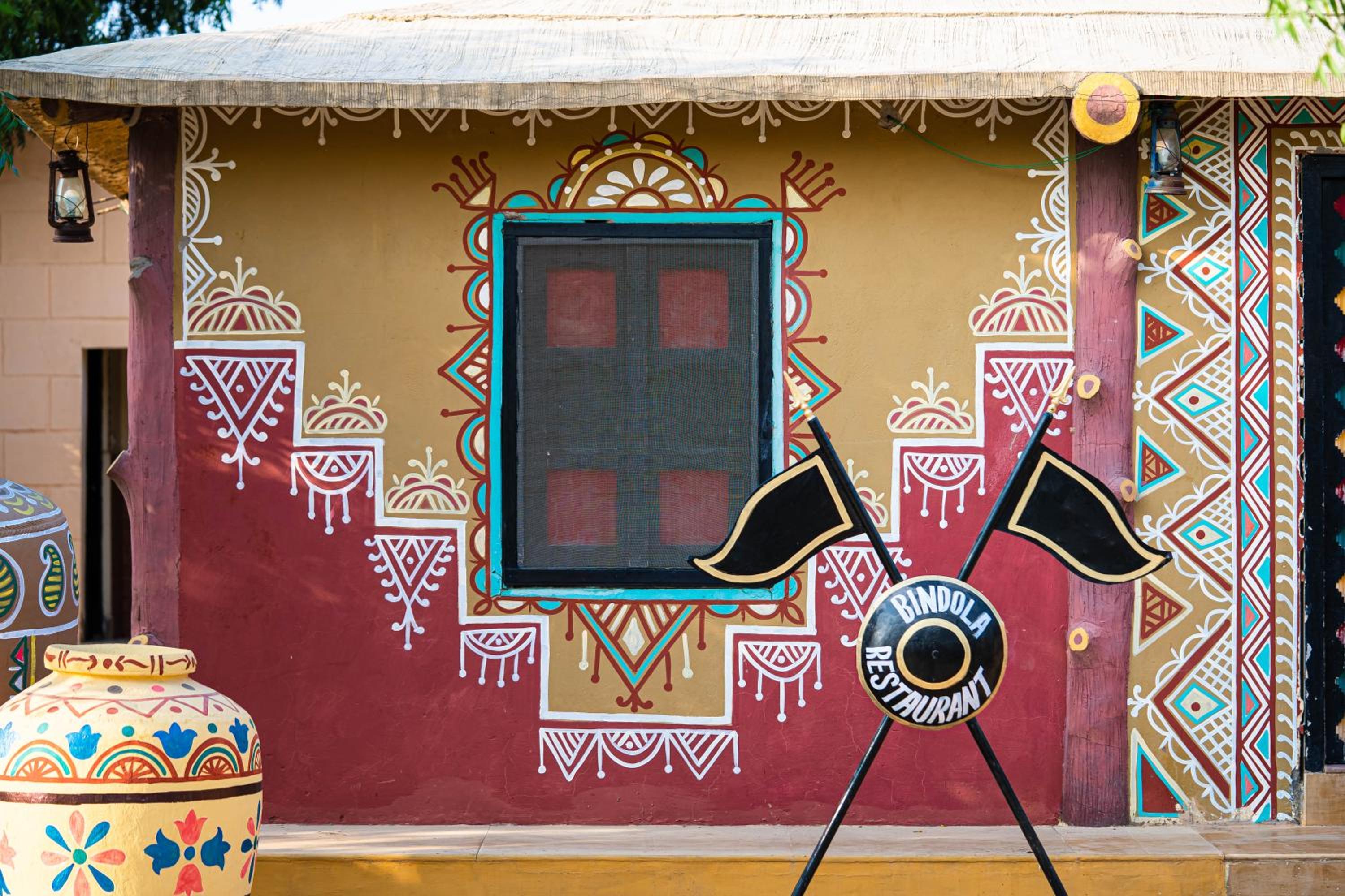 Indulge in a culinary journey at the Bindola dining hall offering Indian, Continental, and Chinese delicacies, or savor authentic Rajasthani cuisine at the Sangri dining hall. A treat for your taste buds awaits at Chokhi Dhani Palace Hotel.