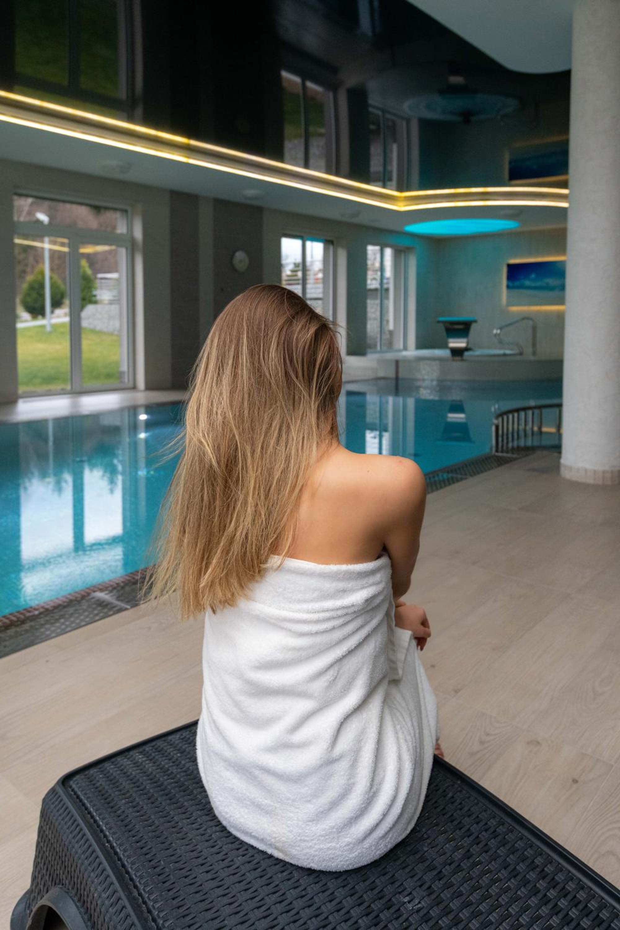 Strefa basenowa, grota solno- solankowa oraz strefa spa przyjemne.