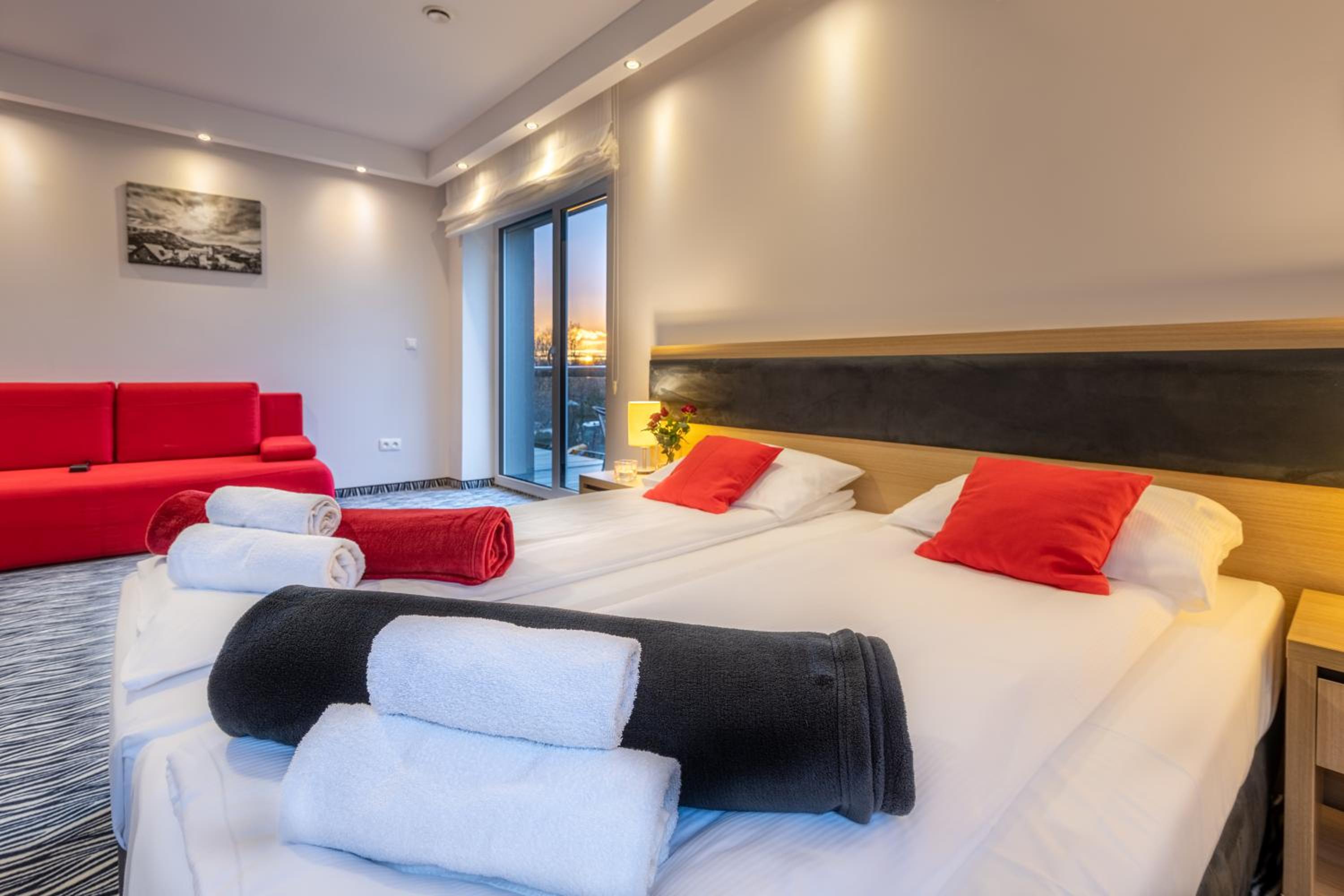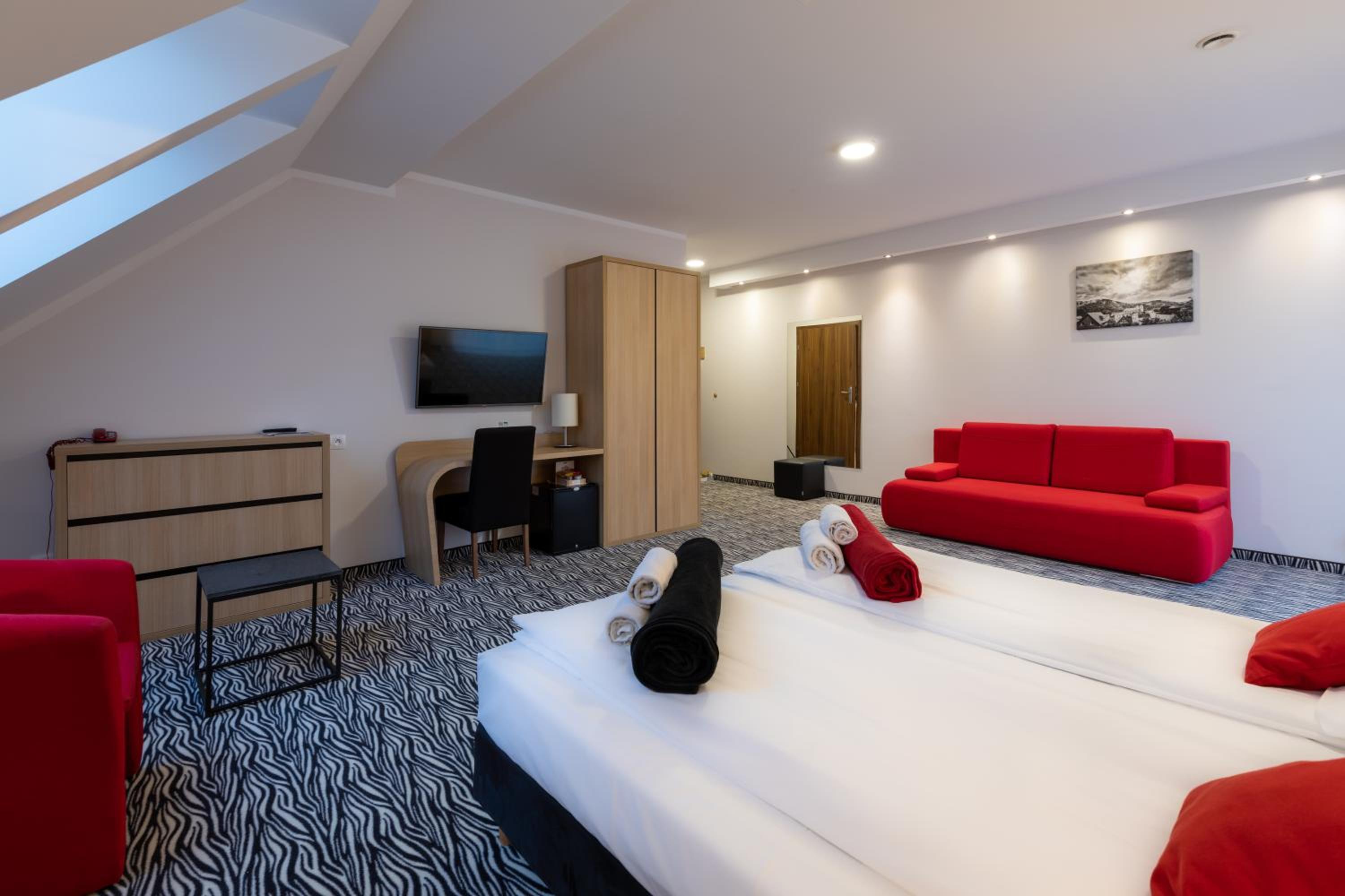 Chyba największym plusem hotelu jest jego personel. Zawsze chętny do pomocy, nic nie było problemem, również w późniejszych godzinach. Szczególne podziękowania dla pani Werki. Doskonałe rozeznanie z lokalnych atrakcji, z kilku podpowiedzi skorzystaliśmy. Śniadania urozmaicone, smaczne. Przychodziliśmy dość późno, zawsze było wszystko dostępne, estetycznie podane. Restauracja z dużym wyborem dań. Basen, strefa spa, możliwość realizacji dodatkowych zabiegów (skorzystaliśmy, polecam), uprzyjemniały pobyt mimo nie najlepszej pogody. W pokojach ciepło, mieliśmy widok na góry. Darmowy parking. Z pewnością przyjedziemy znów. Pewnie zabierzemy naszego psa.