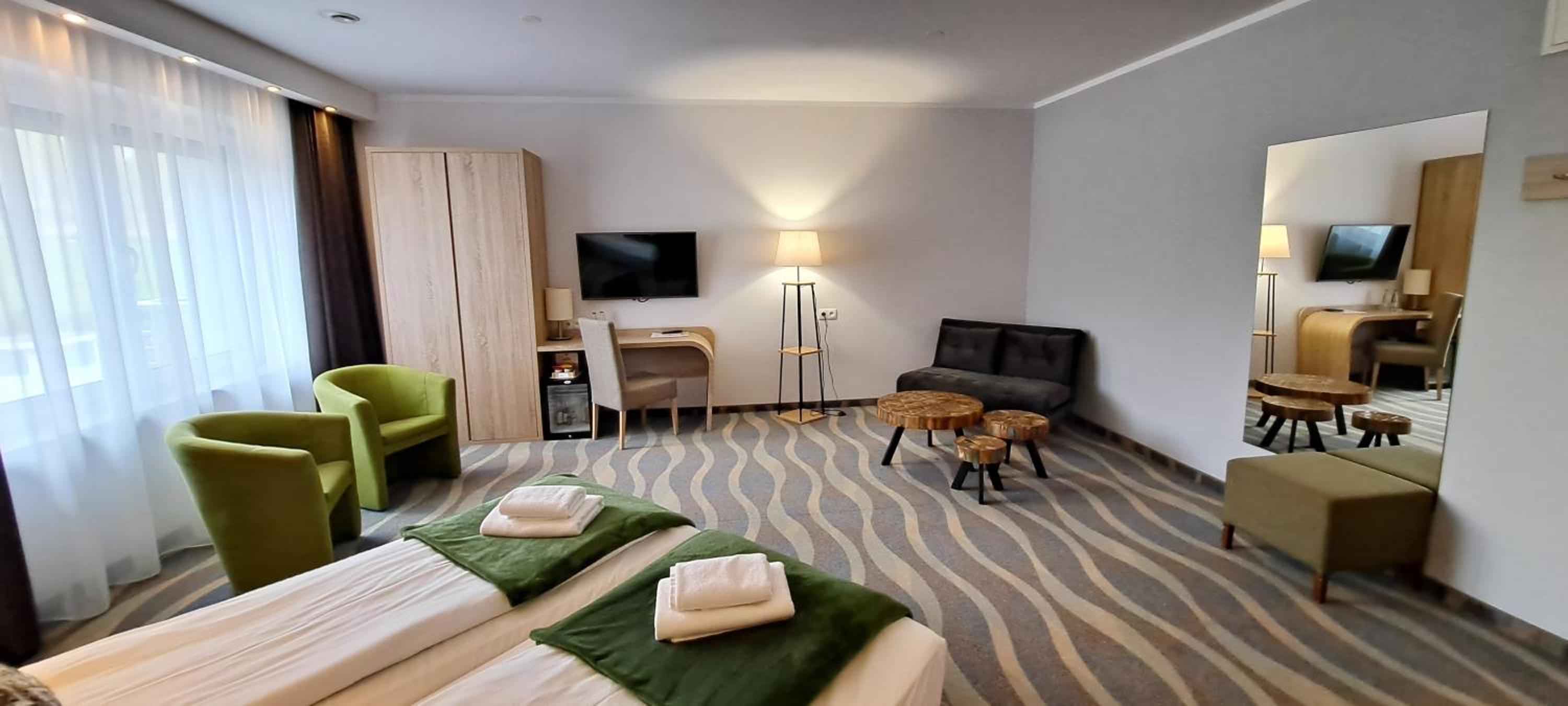 Wszędzie czysto, pokój przestronny, dobrze urządzony. Bogate menu restauracji, ceny naprawdę przystępne. Dania bardzo smaczne, serwowane w elegancki sposób. Śniadanie obfite, duży wybór. Wszystko smaczne i świeże. Obsługa kelnerska, zarówno Pani jak i Pan, uśmiechnięta, pełna profeska :) Strefa spaceru również bez zarzutu. Bardzo przyjemny hotel, szczerze polecam!