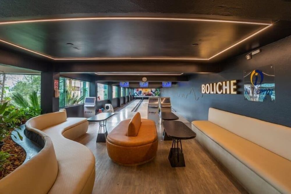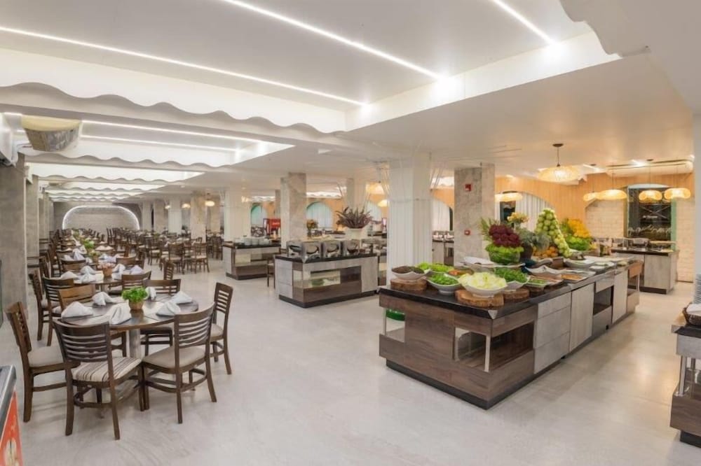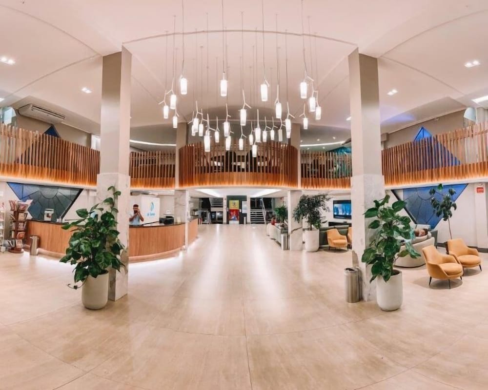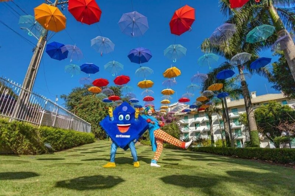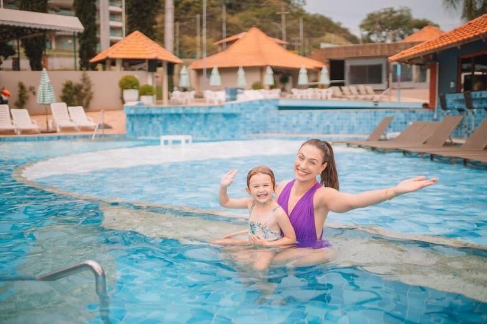 O conceito do hotel é bom mas a gente nota que "fazer economia" muitas vezes foi maior do que qualquer outra coisa. O hotel fornece UMA toalha por hospede que precisa ser trocada toda vez que precisamos de uma nova. As áreas da piscina NÃO tem sequer uma cadeira espreguiçadeira. A ducha da piscina interna só tem agua fria (foto). Não tem serviço nenhum em nenhuma das piscinas. Pasmem, NÃO tem sequer um guarda sol. O quarto é medíocre de tão pequeno (para um passar, o outro tem que sentar na cama) -vide foto e o guarda roupa (vide foto) daqueles hotéis de rodoviária que nem porta tem, só algumas divisórias. Percebe-se claramente a mentalidade de economia, inclusive pela TV no quarto que provavelmente seja menor do que 30 polegadas: uma piada. As piscinas externas são todas grudadas umas nas outras, não tendo nenhum clima de resort. ALIAS, ESTE HOTEL NÃO É UM RESORT. É um amontoado de piscinas, sem nenhum serviço ou estrutura de atendimento.