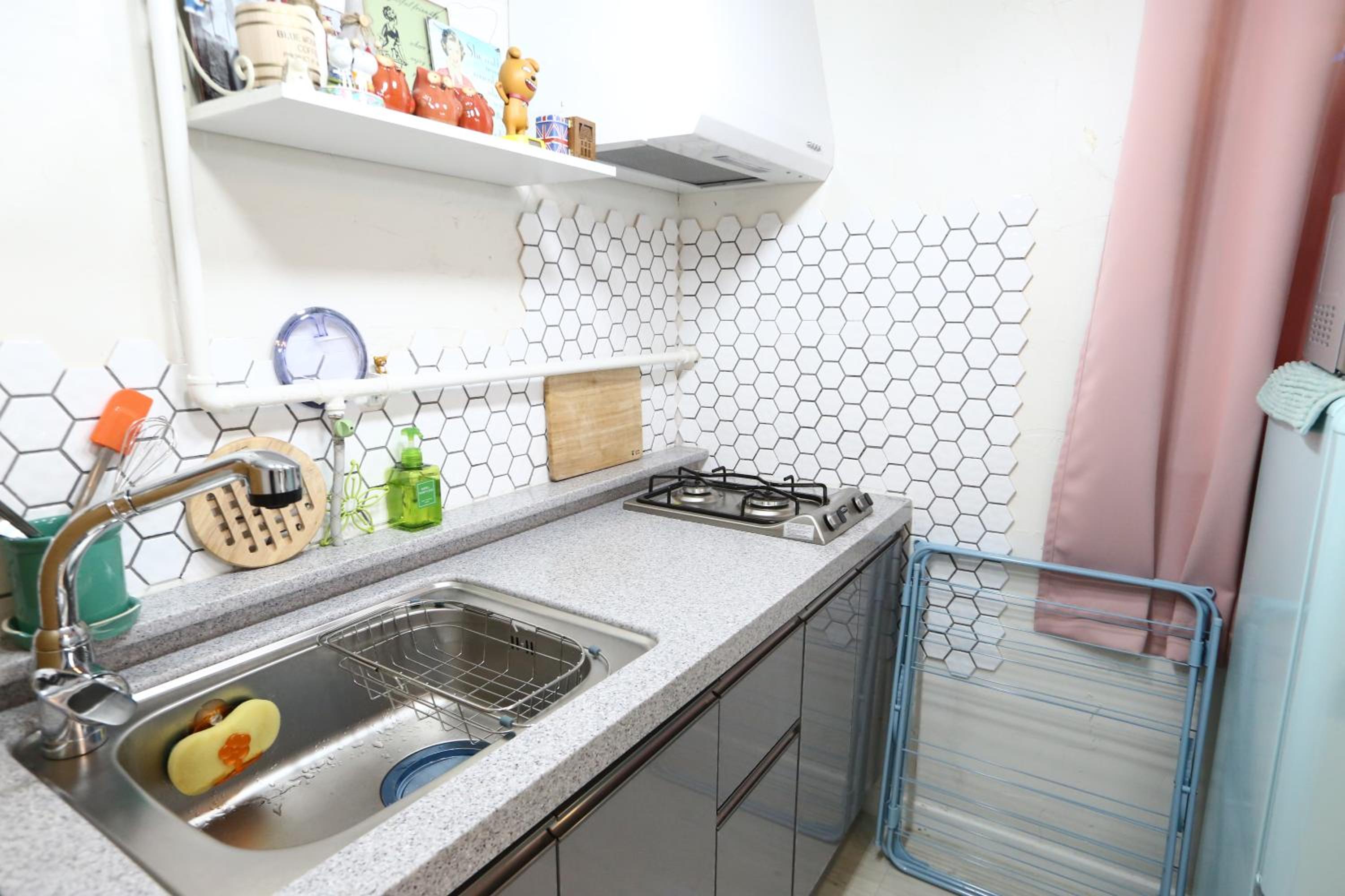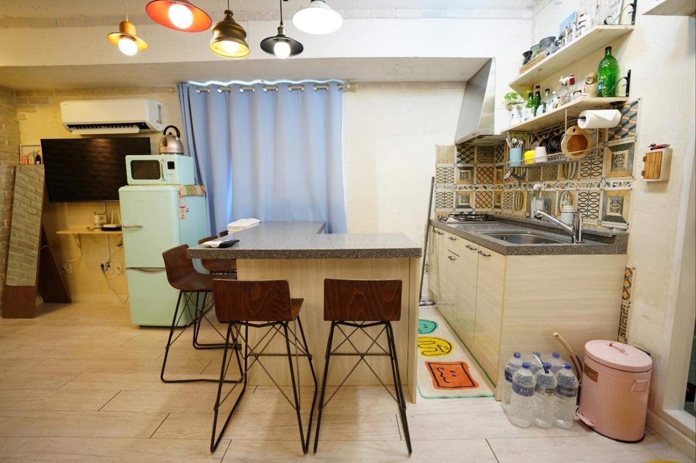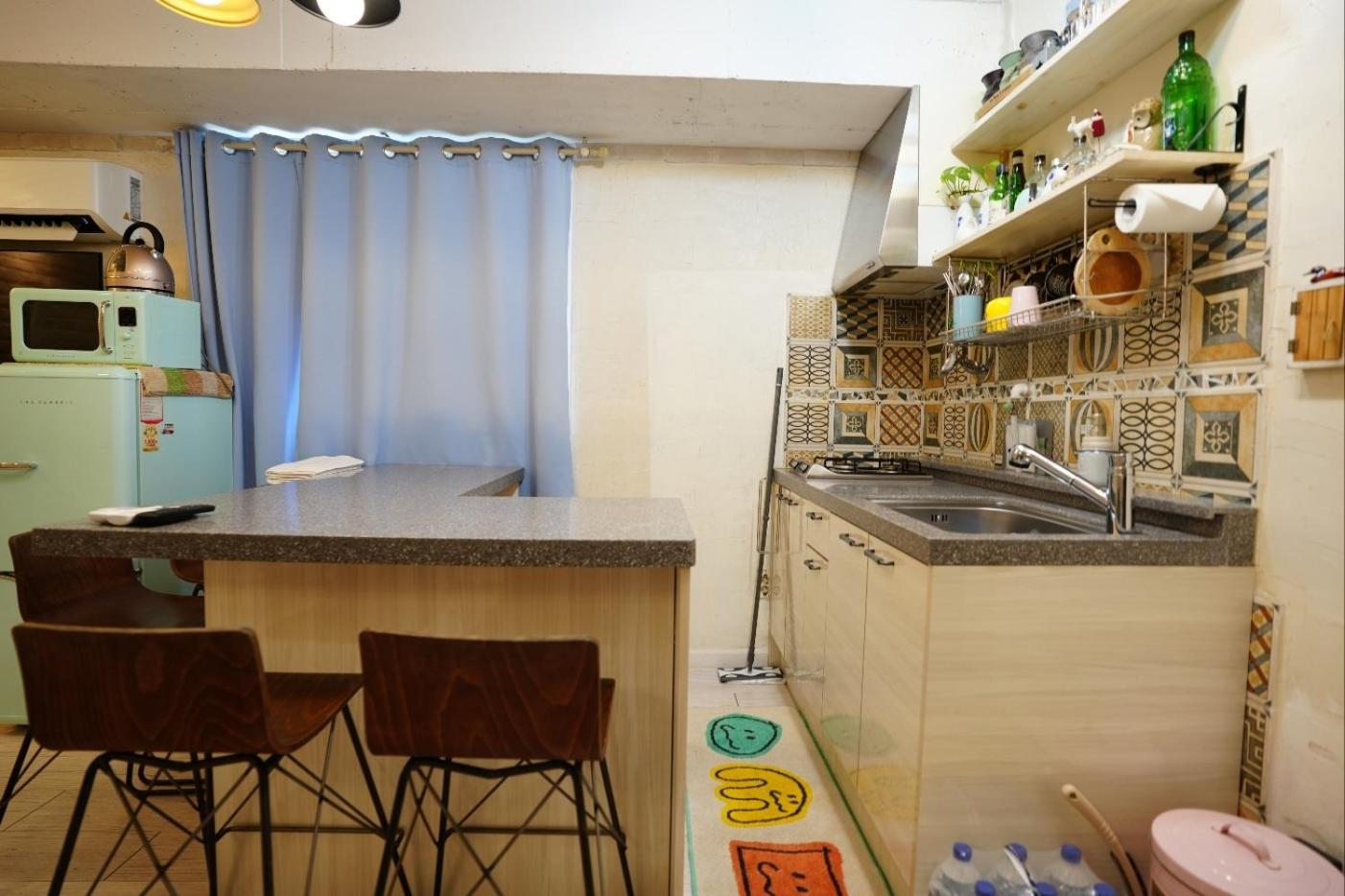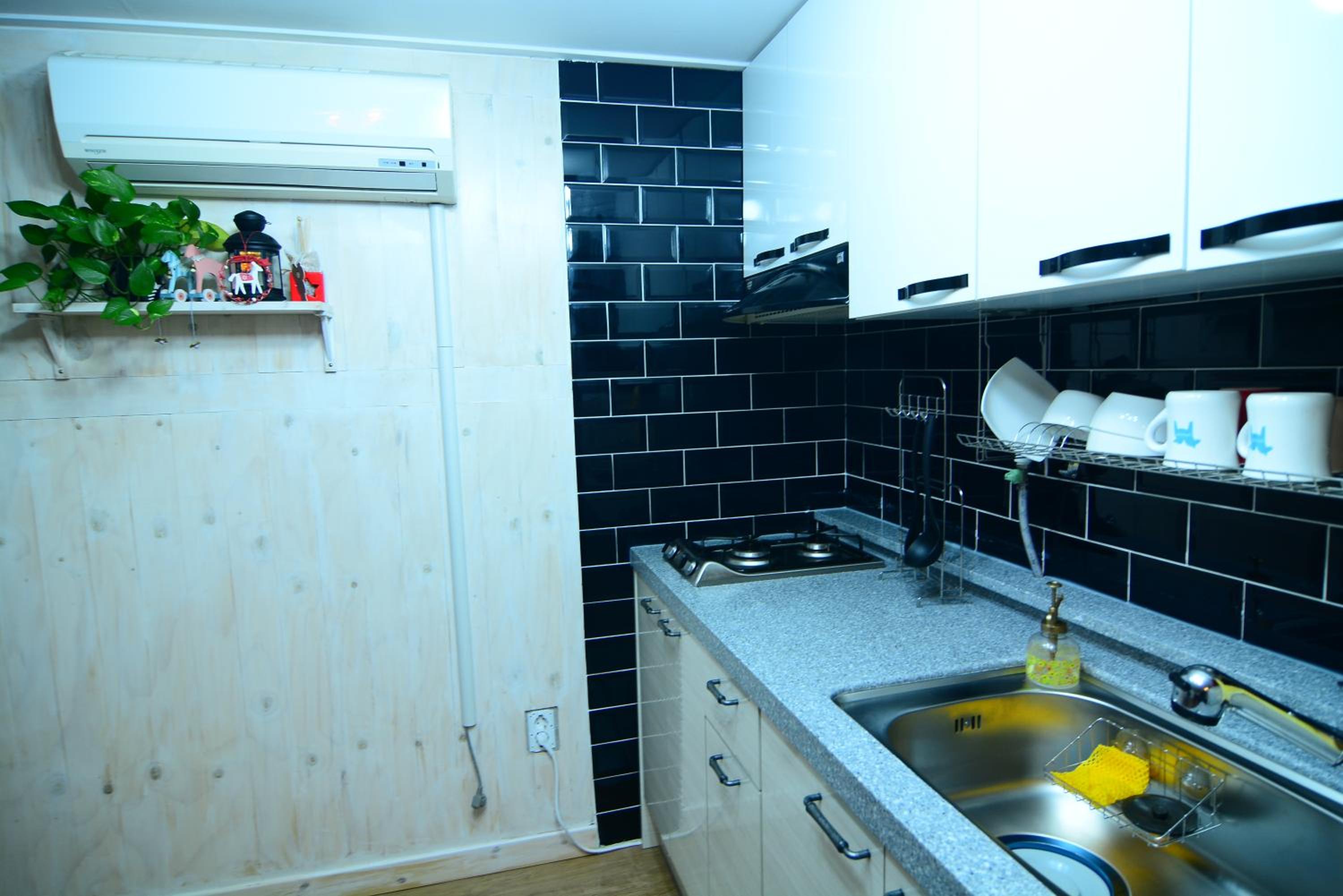 Very clean and fresh! This cute studio has everything you need (a/c, heating floors, stove, microwave, washing machine, etc). Large space enough for a couple. You can walk to the Super EMart in 2 mins, and there are plenty of cafes and restaurants around.