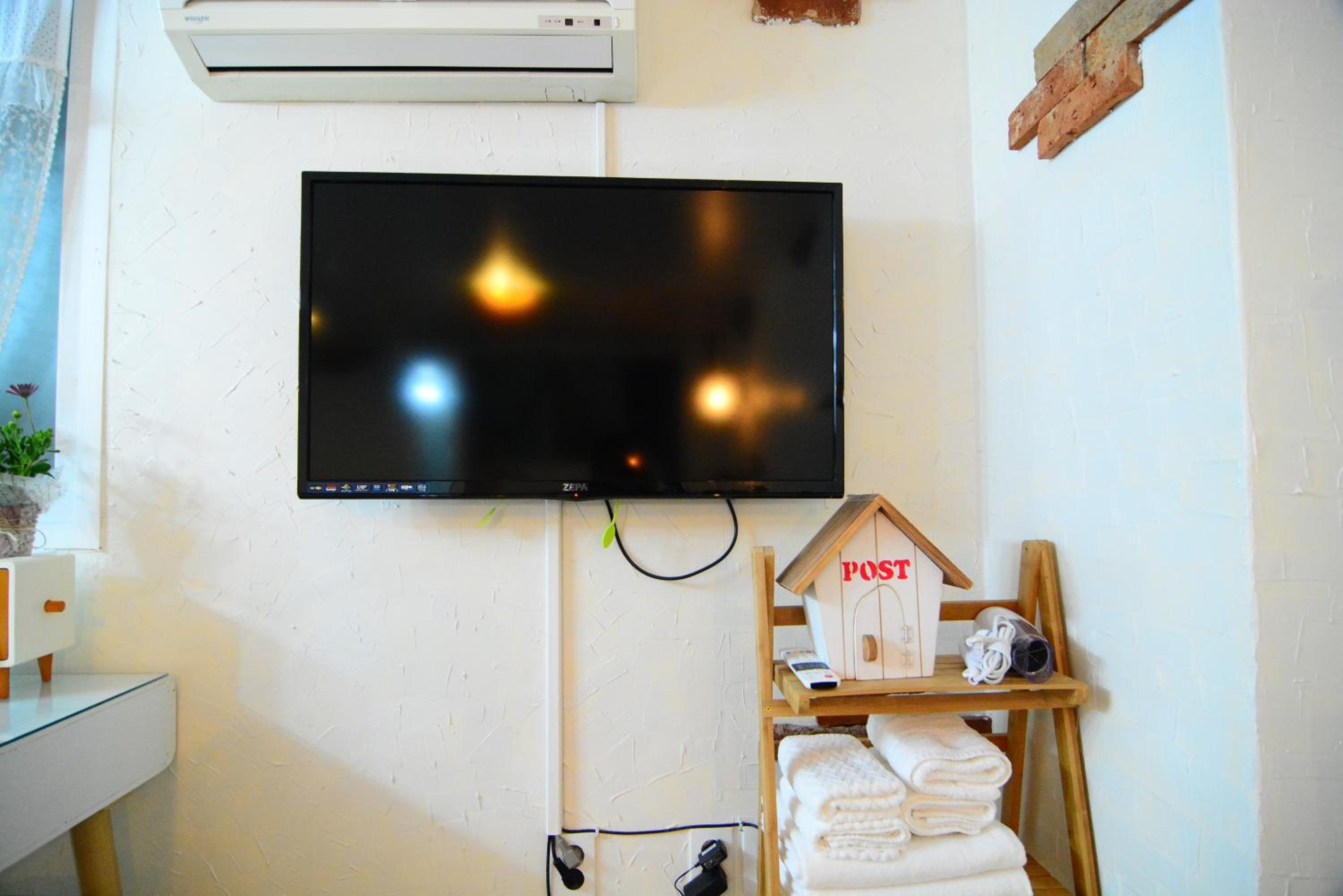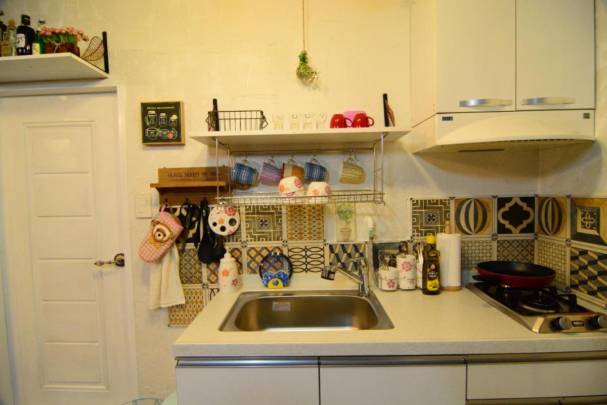 The studio-type rooms at Unicorn Residence offer a comfortable stay with a private kitchen, flat-screen TV, and convenient amenities like a washing machine and international adapter.