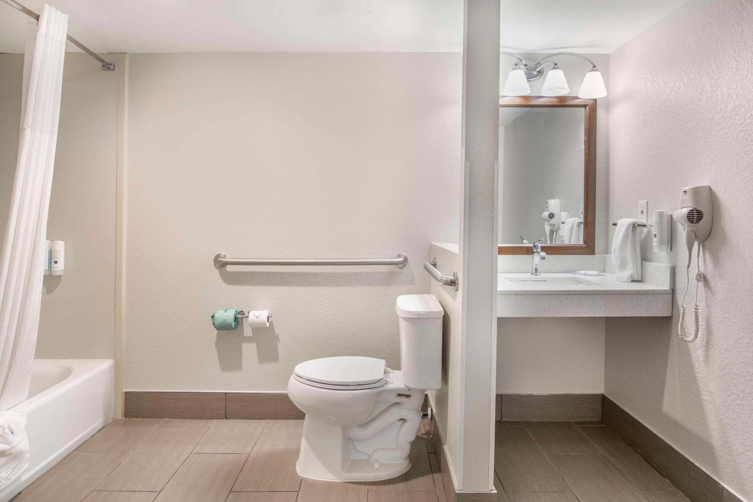 This is a compact motel stuck on the side of a hill (to us Floridians it is on the side of a mountain). Office lady was friendly and talkative. Busy parking lot with many workers staying at the motel while away from home. Our room was very nice, quiet, and comfy. We were on the bottom floor so we were able to park close to our room. Super wifi connection. My bride loved the indirect lighting in the bath area. Motel is close to cafes and gas stations.