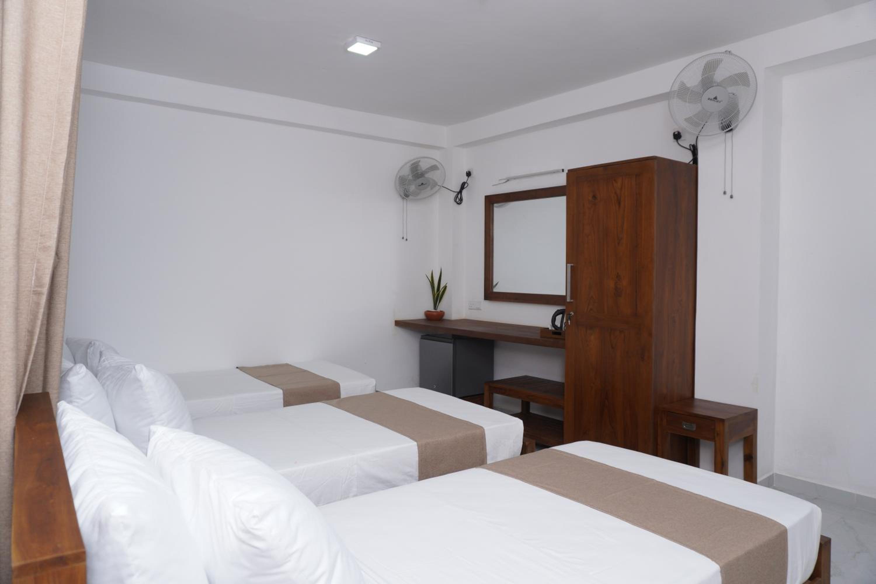 Nous avions réservé une chambre triple avec balcon, sauf que la chambre est située au rez-de-chaussée au fond de la réception et ne possède ni balcon ni fenêtre ni aération. Nous avons protester ils nous ont proposé une chambre double à la place avec une fenêtre qui donne sur la toiture nous sommes restés une nuit et le lendemain nous avons fuit carrément la ville d’unawatuna