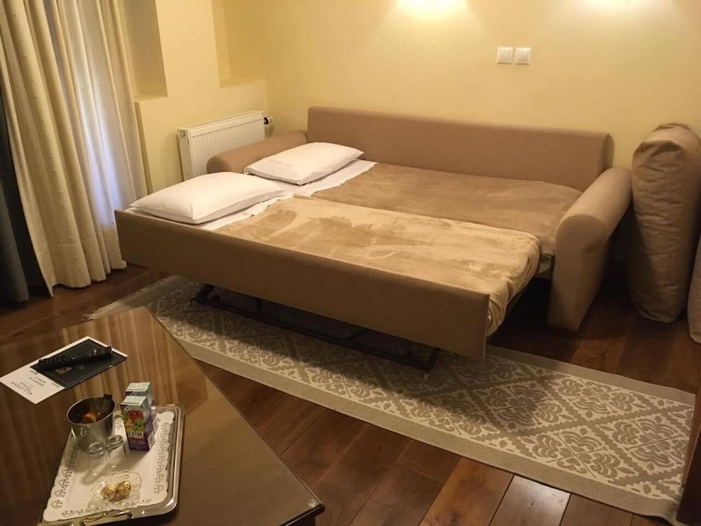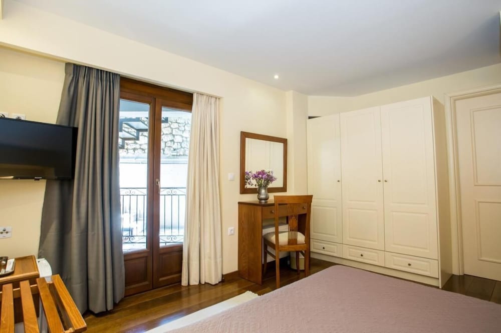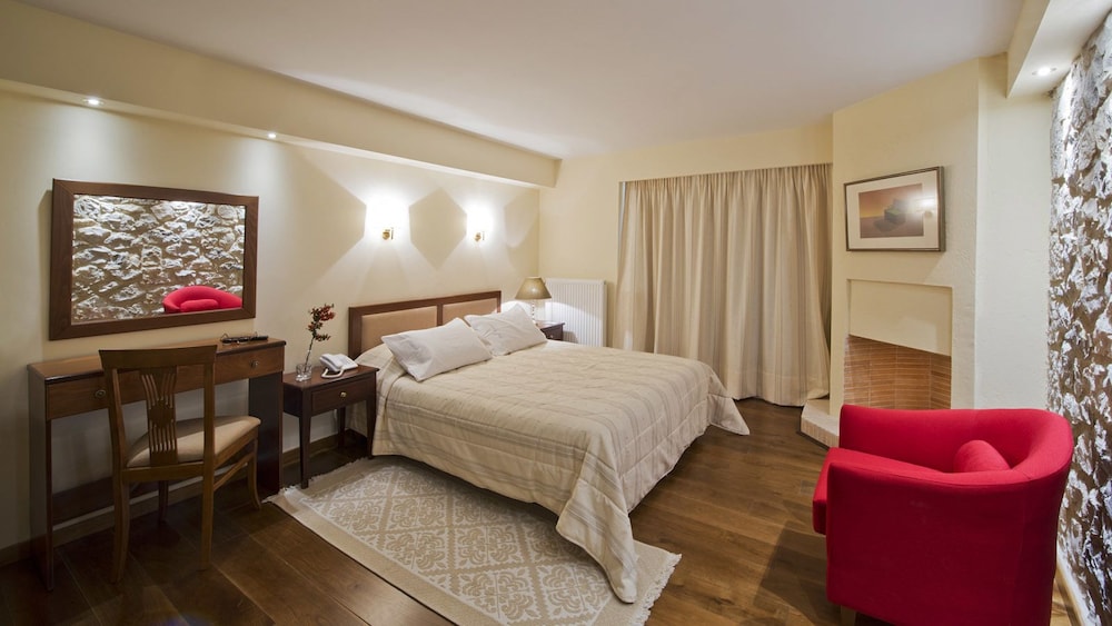 Rymliga rum med vacker balkong mot dalen med vacker solnedgång. Riklig och god frukost. Vänligt och diskret bemötande. Bodde där i samband med en skidresa till Parnasso.