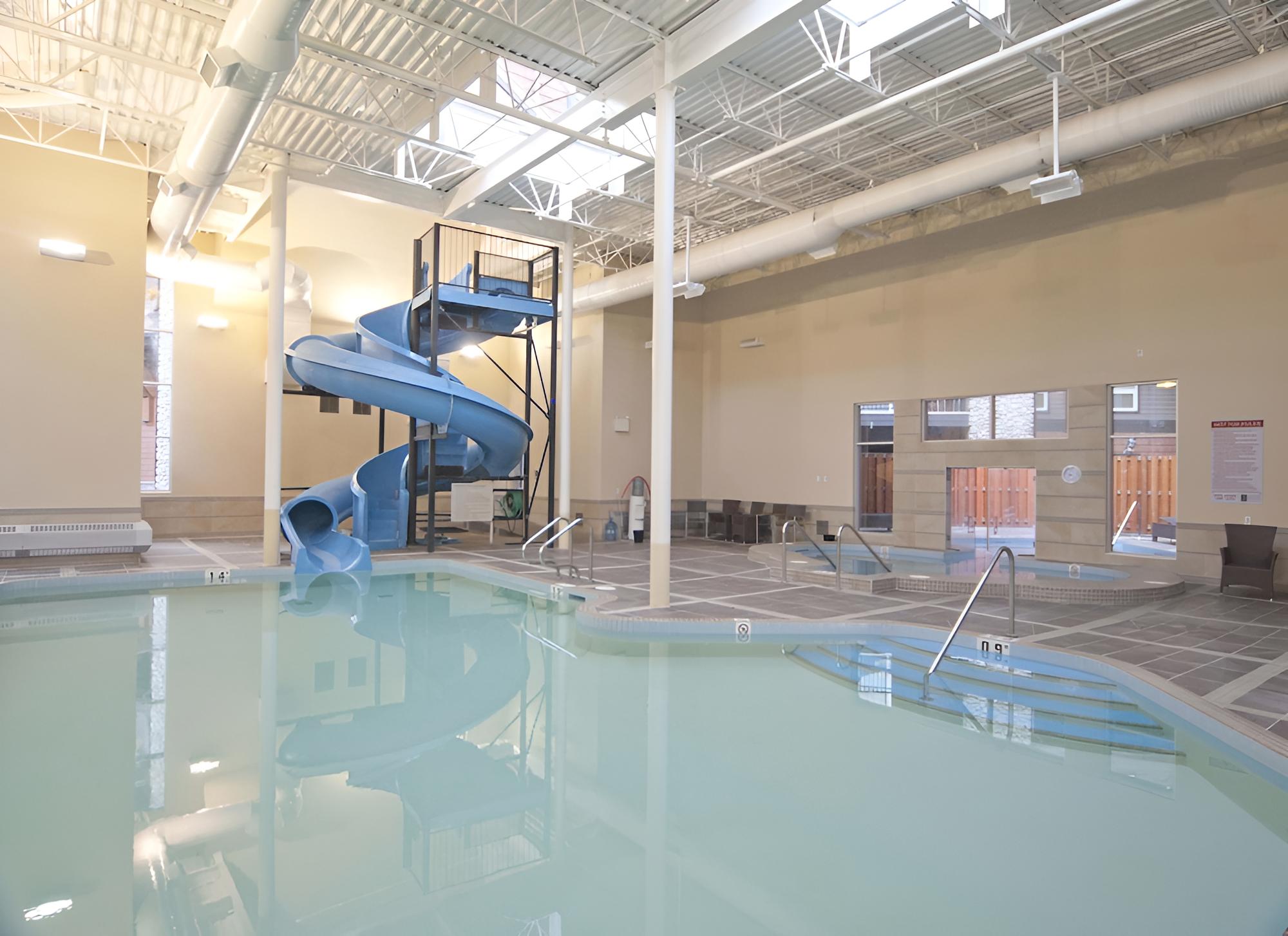 Indulge in Relaxation: Unwind in the indoor pool and spa tub at The Summit at Grande Rockies after a day of exploring the mountains.
